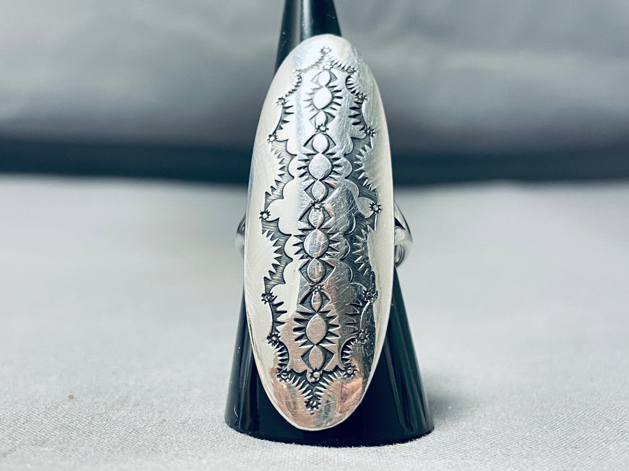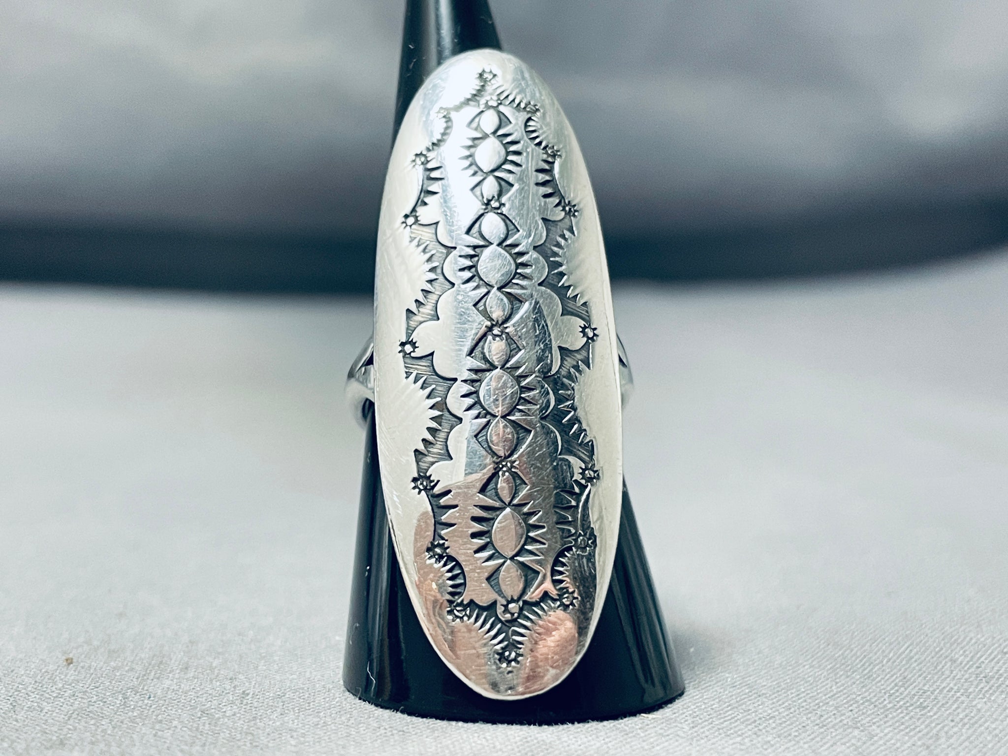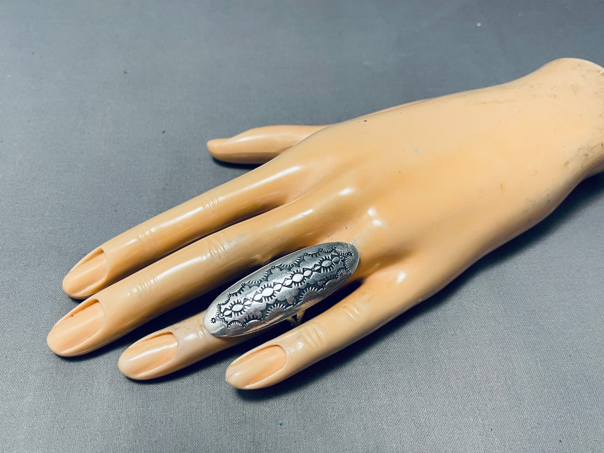 One Of The Most Heavily Detailed Vintage Native American Navajo Domed Sterling Silver Ring