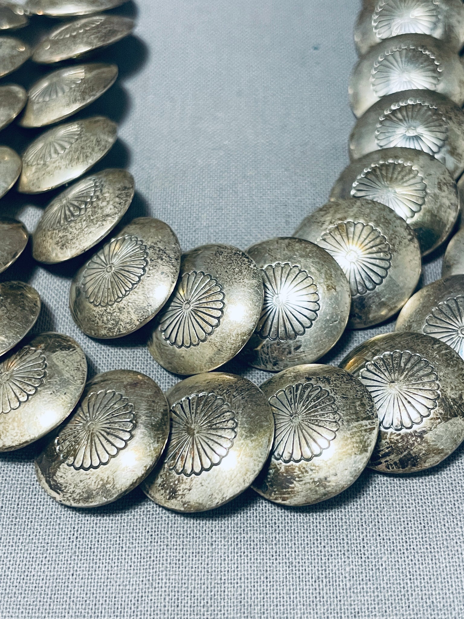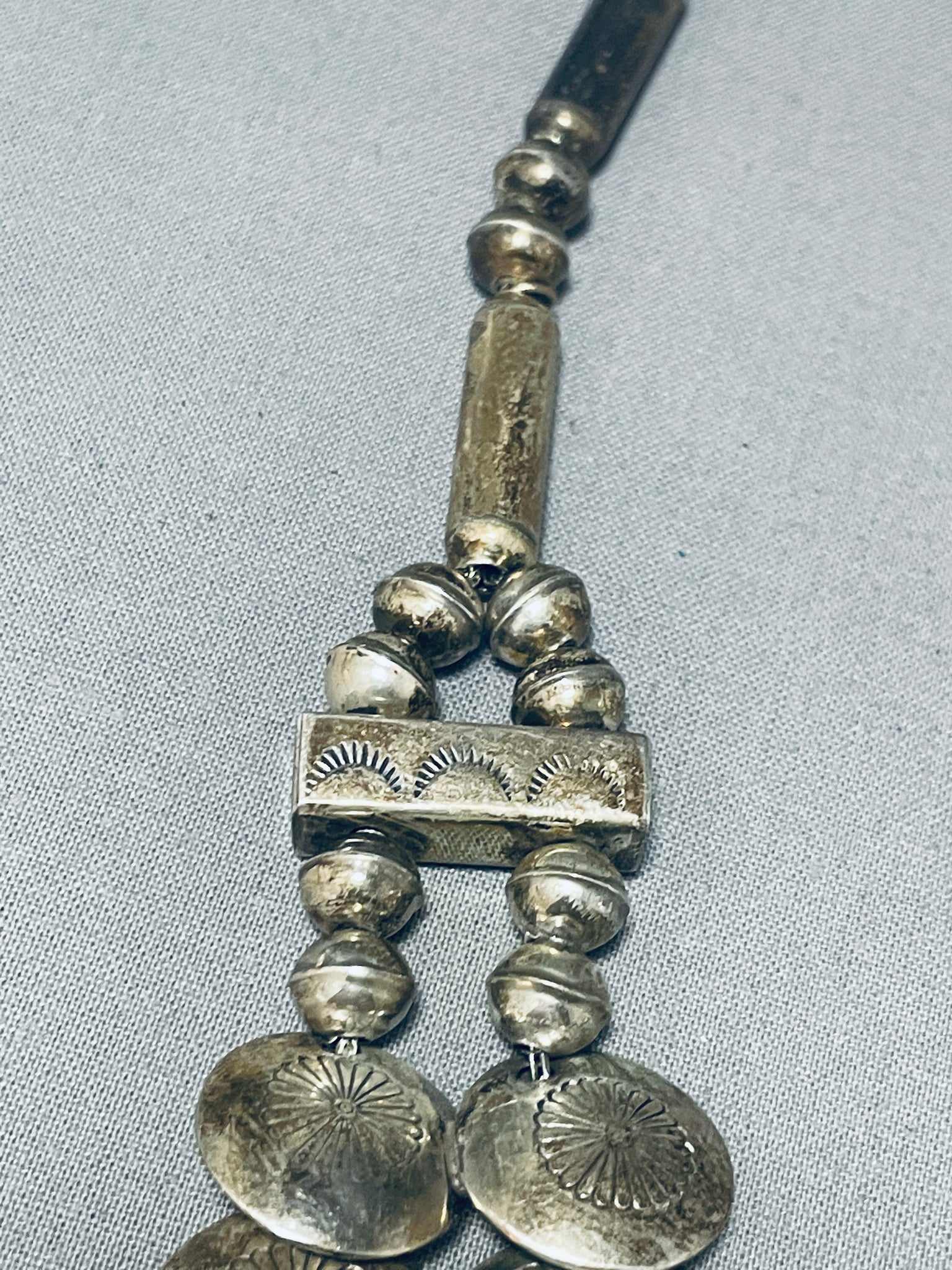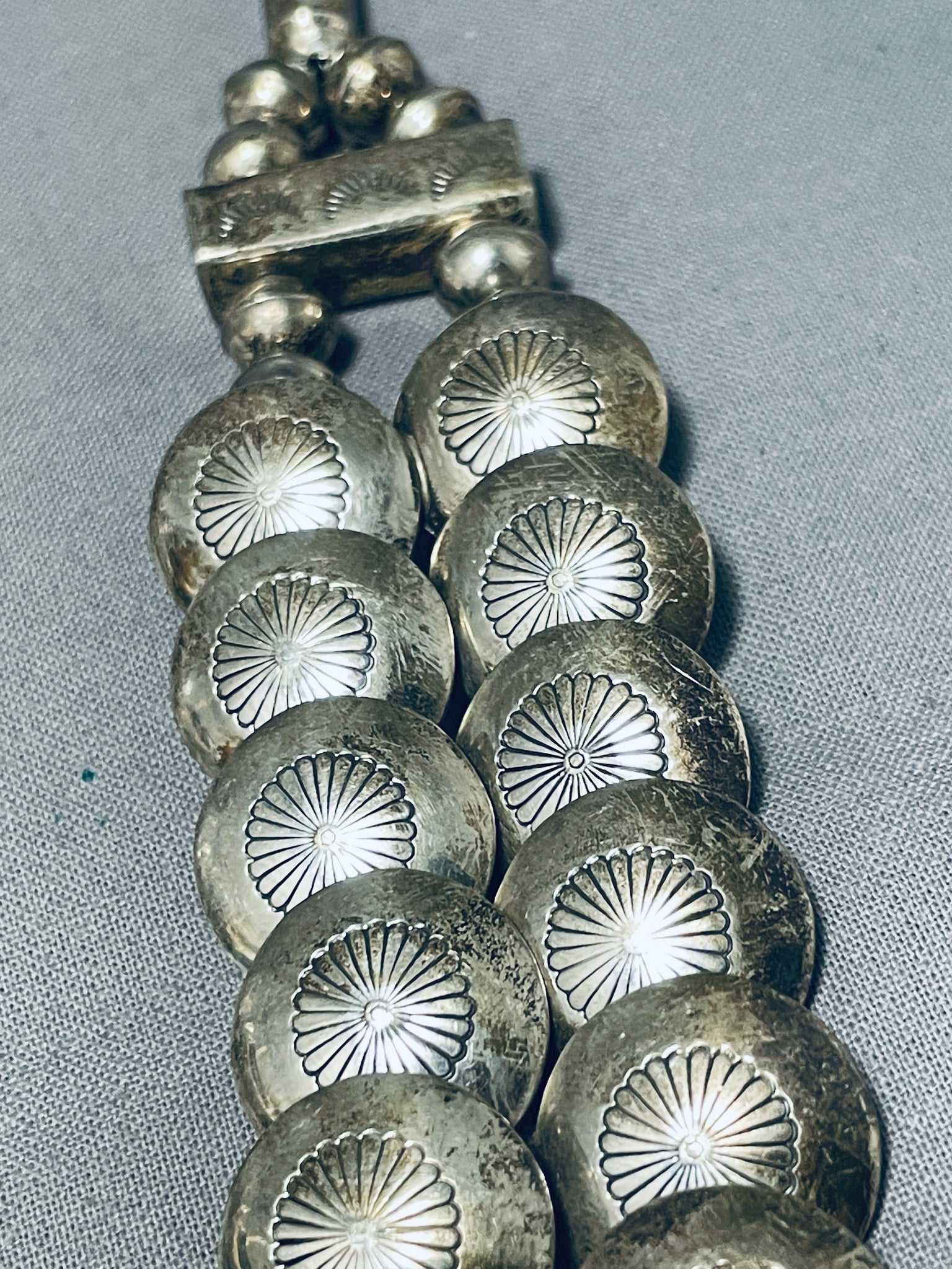 One Of The Most Incredible Vintage Native American Navajo Sterling Silver Flay Bead Necklace