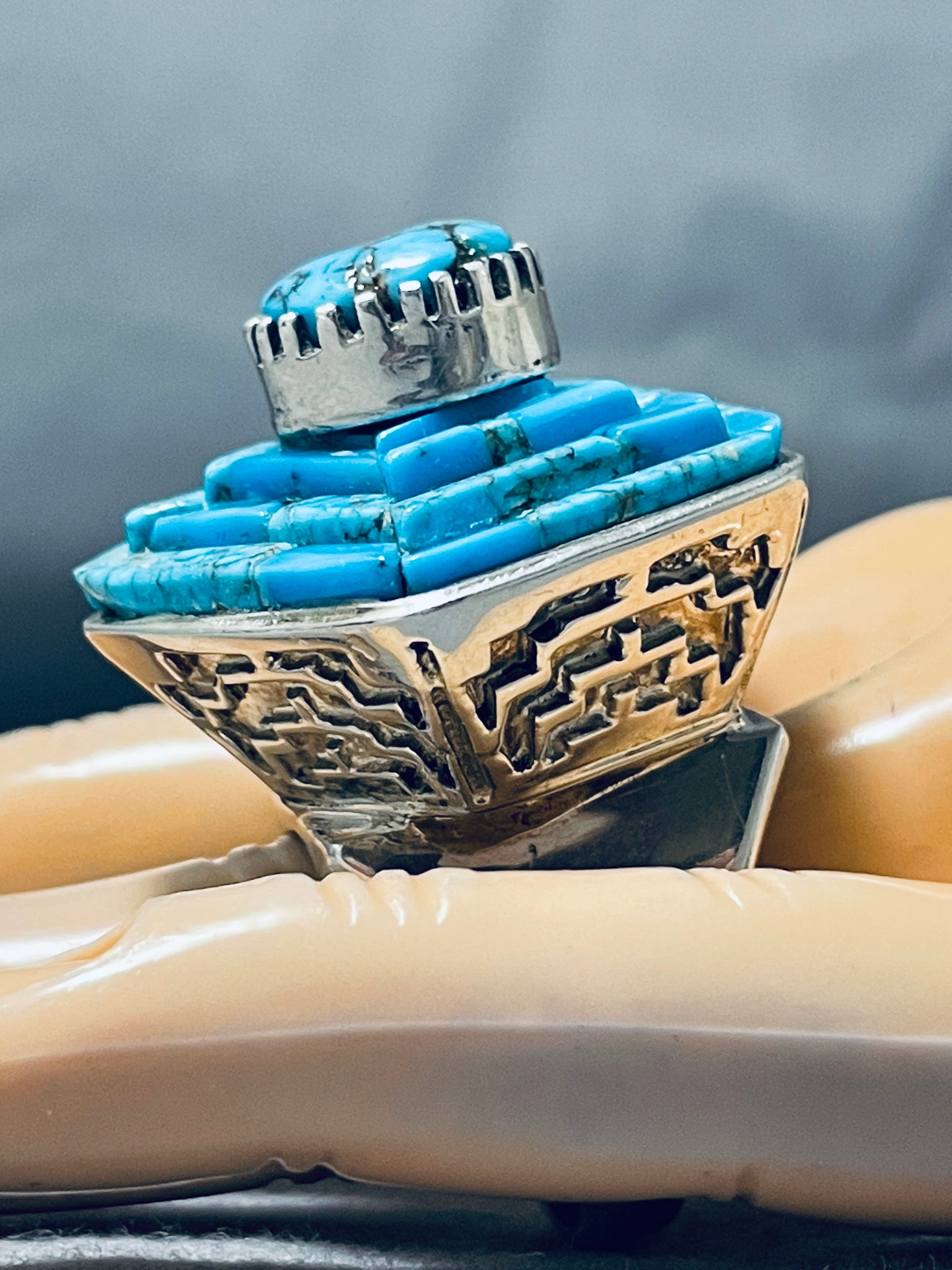 One Of The Most Intricate Ever Native American Navajo Turquoise Sterling Silver Ring