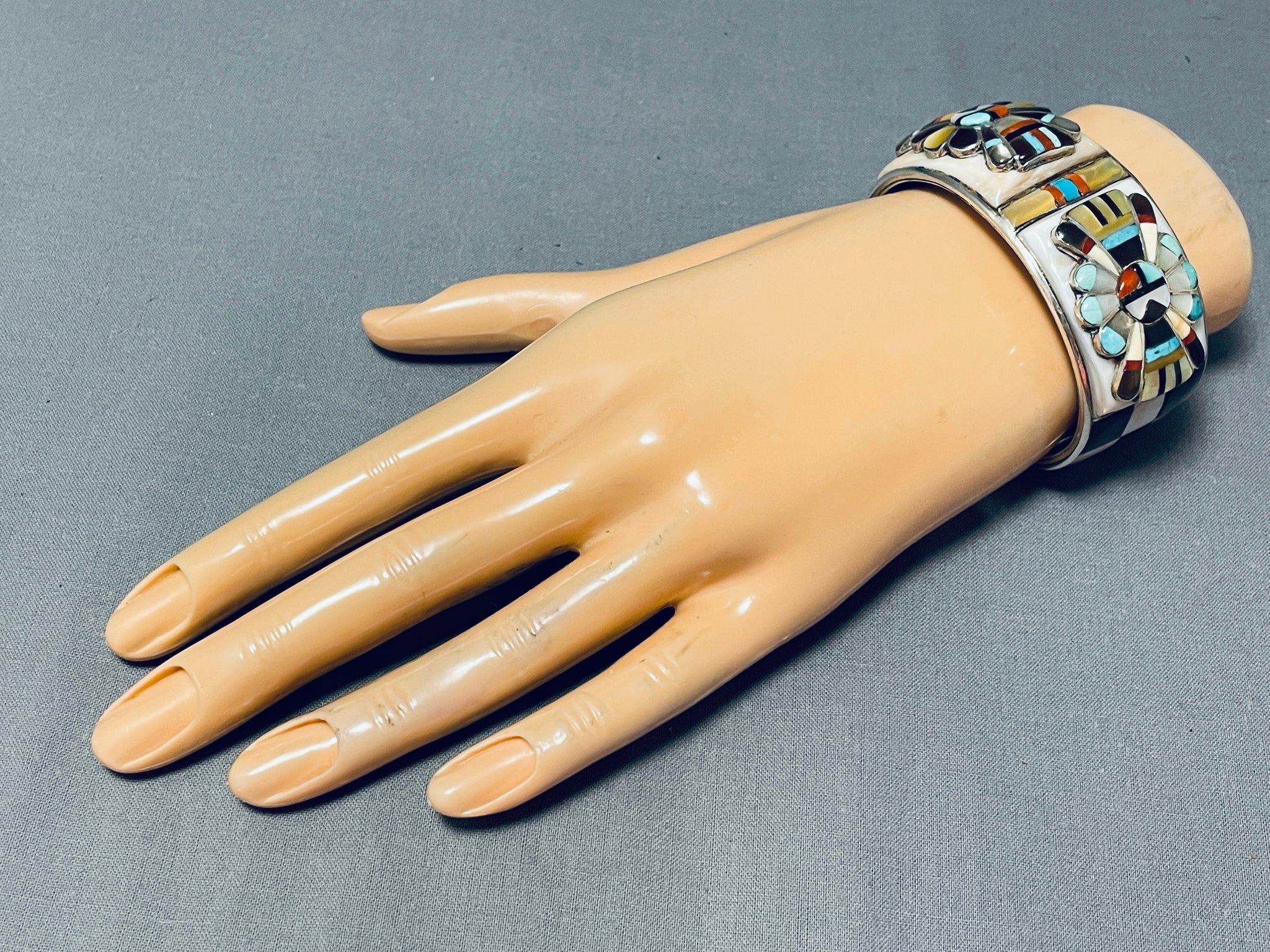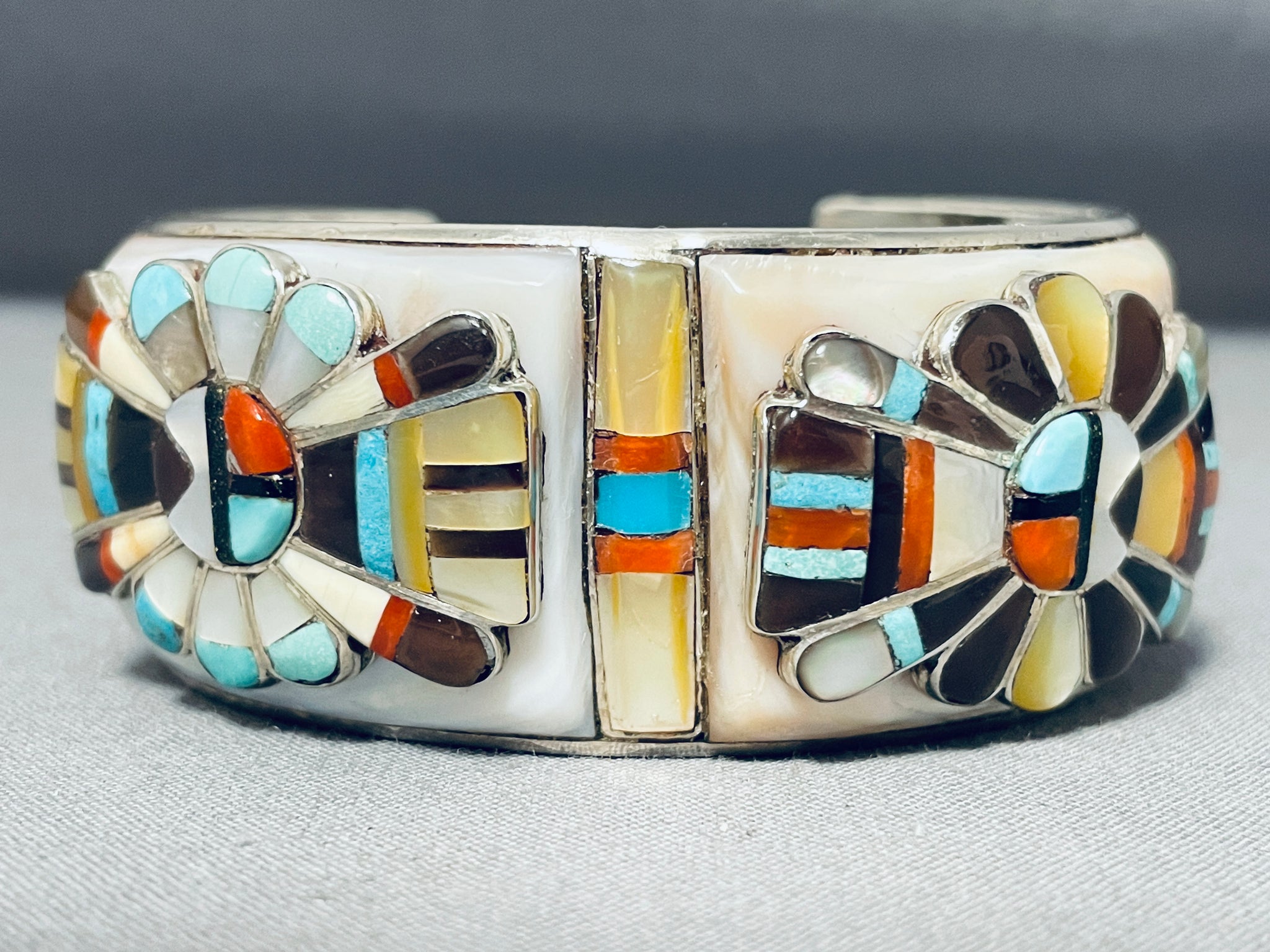 One Of The Most Intricate Ever Vintage Native American Zuni Turquoise Sterling Silver Bracelet