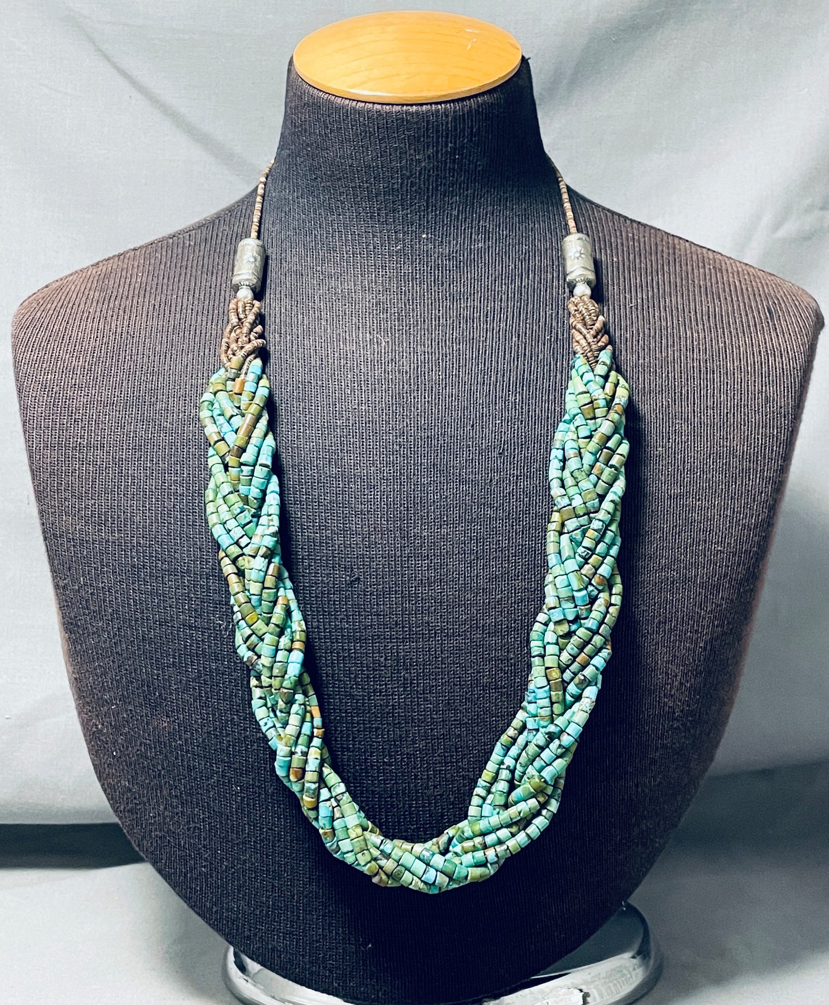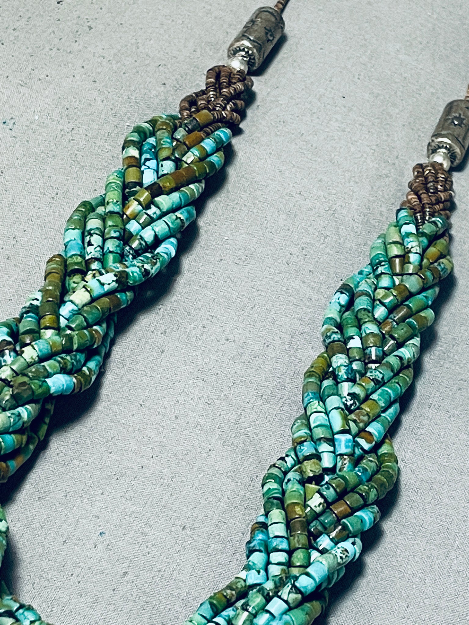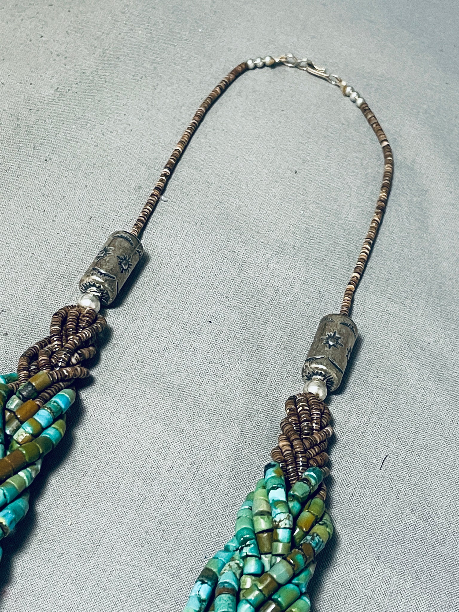 One Of The Most Intricate Native American Navajo Green Turquoise Sterling Silver Necklace