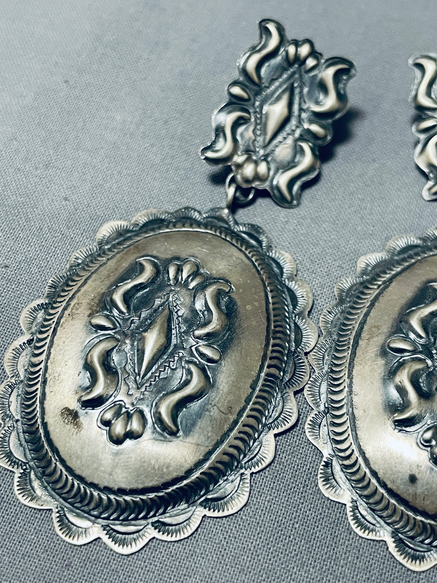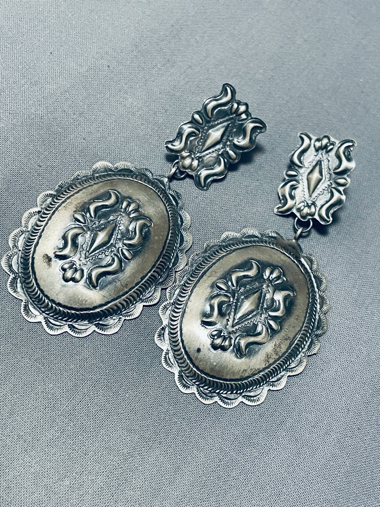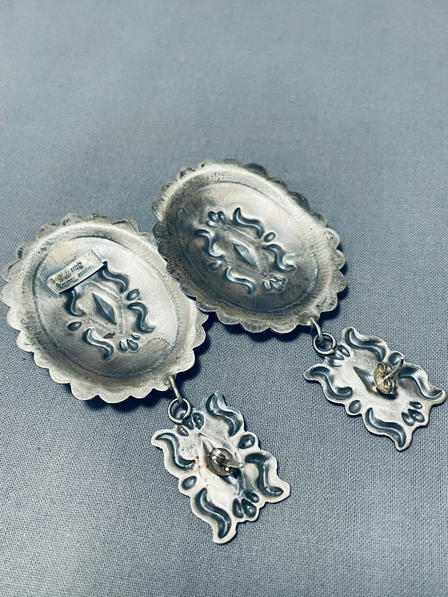 One Of The Most Intricate Native American Navajo Sterling Silver Concho Earrings
