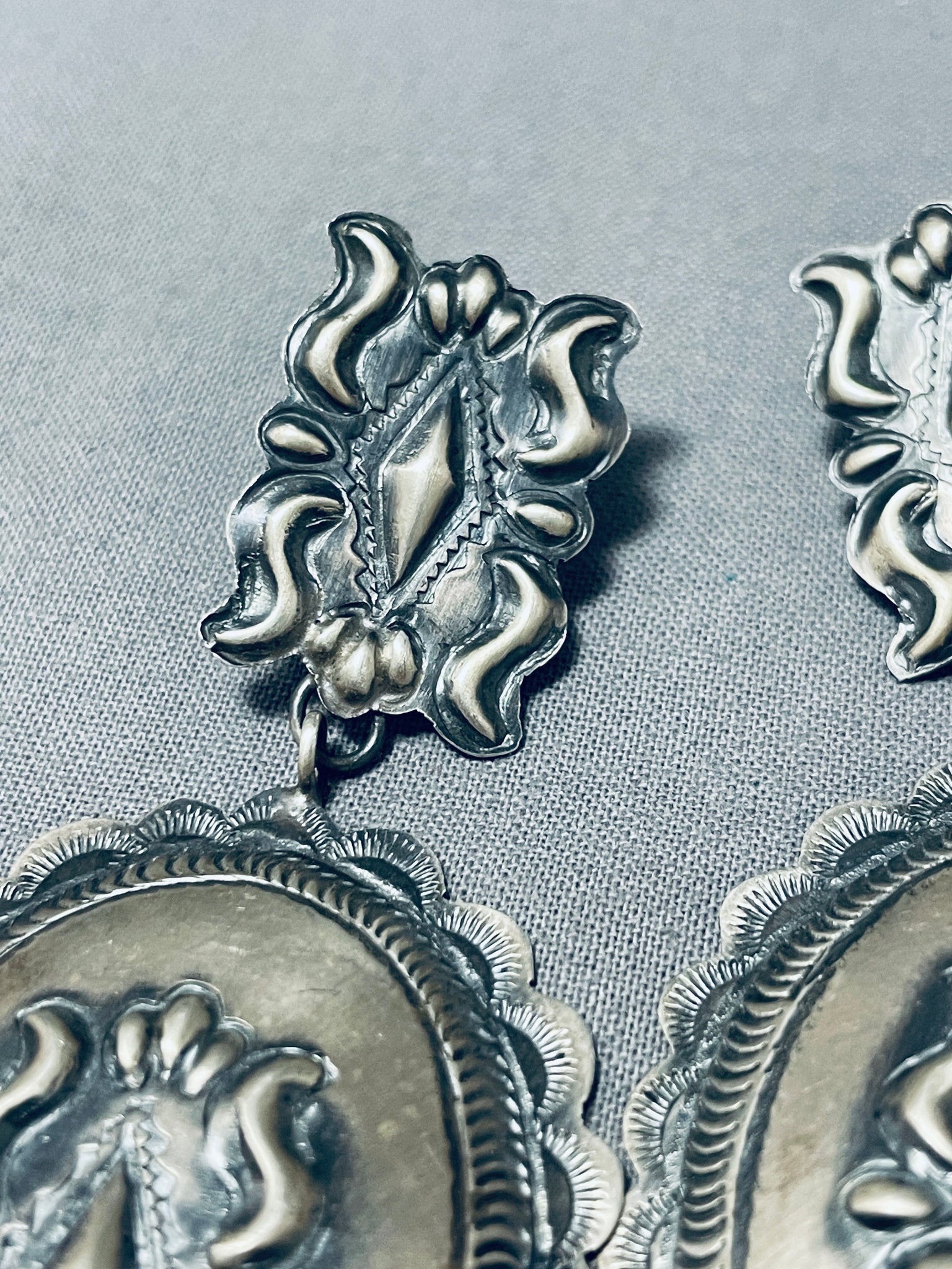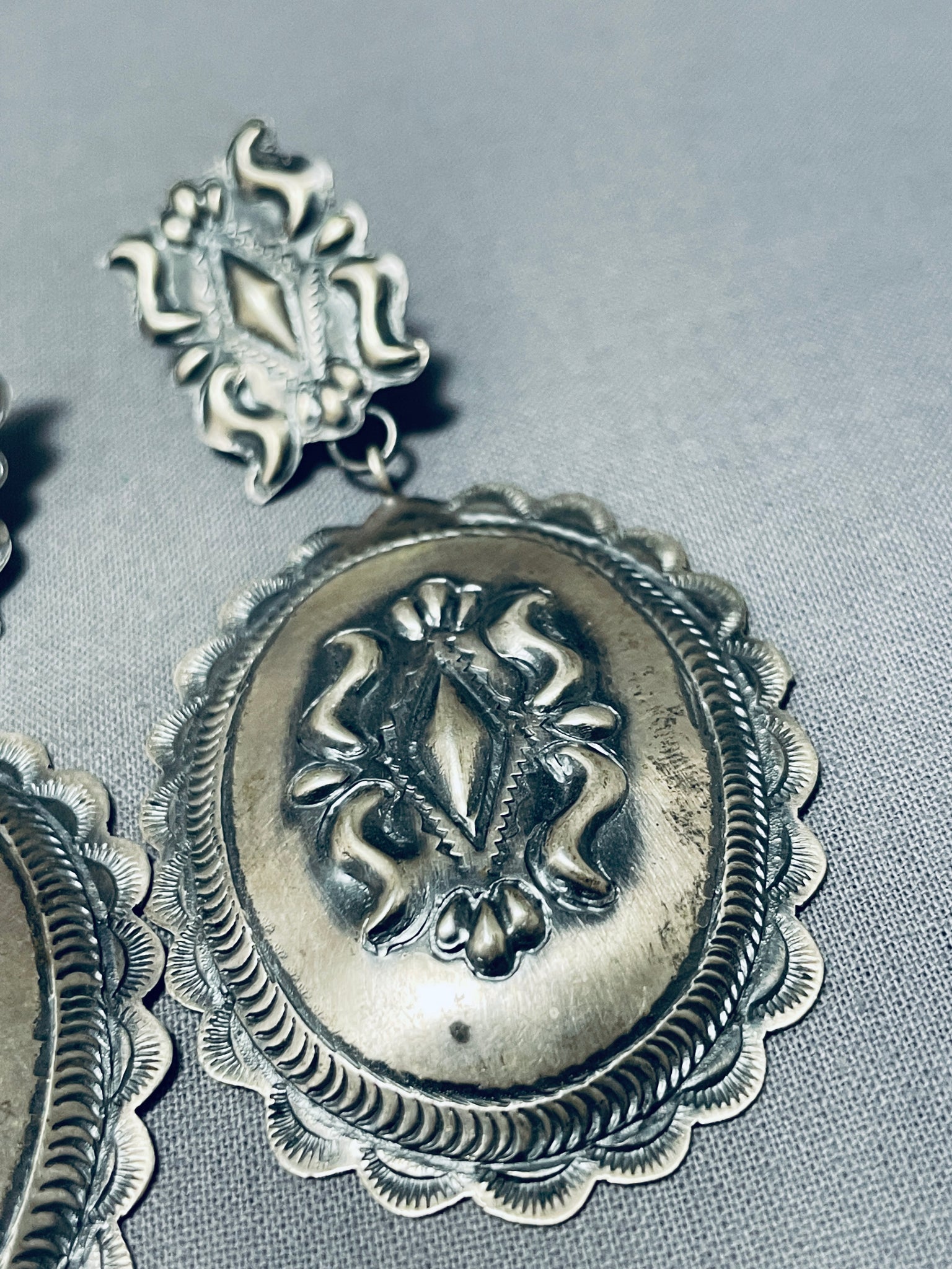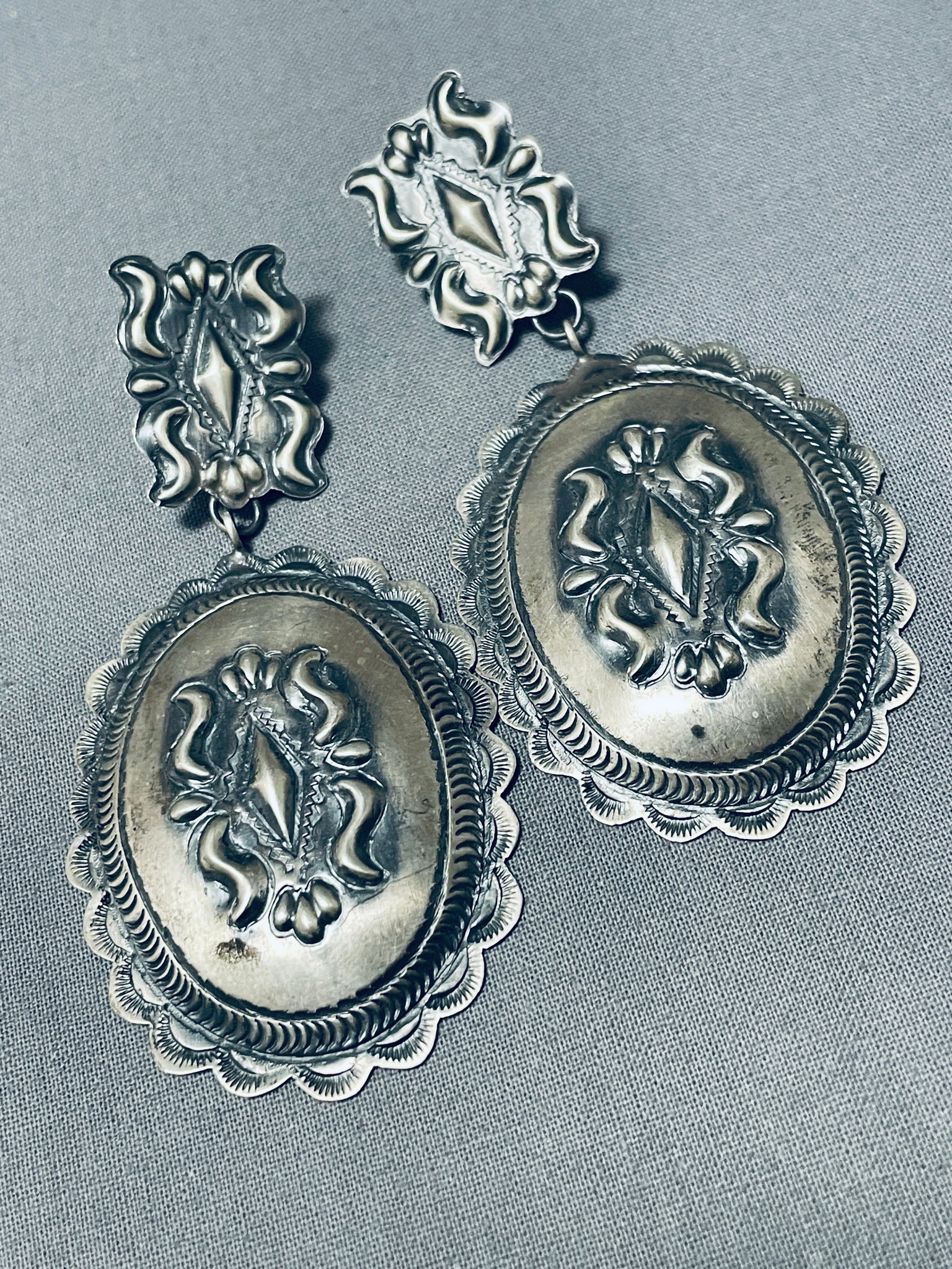 One Of The Most Intricate Native American Navajo Sterling Silver Concho Earrings