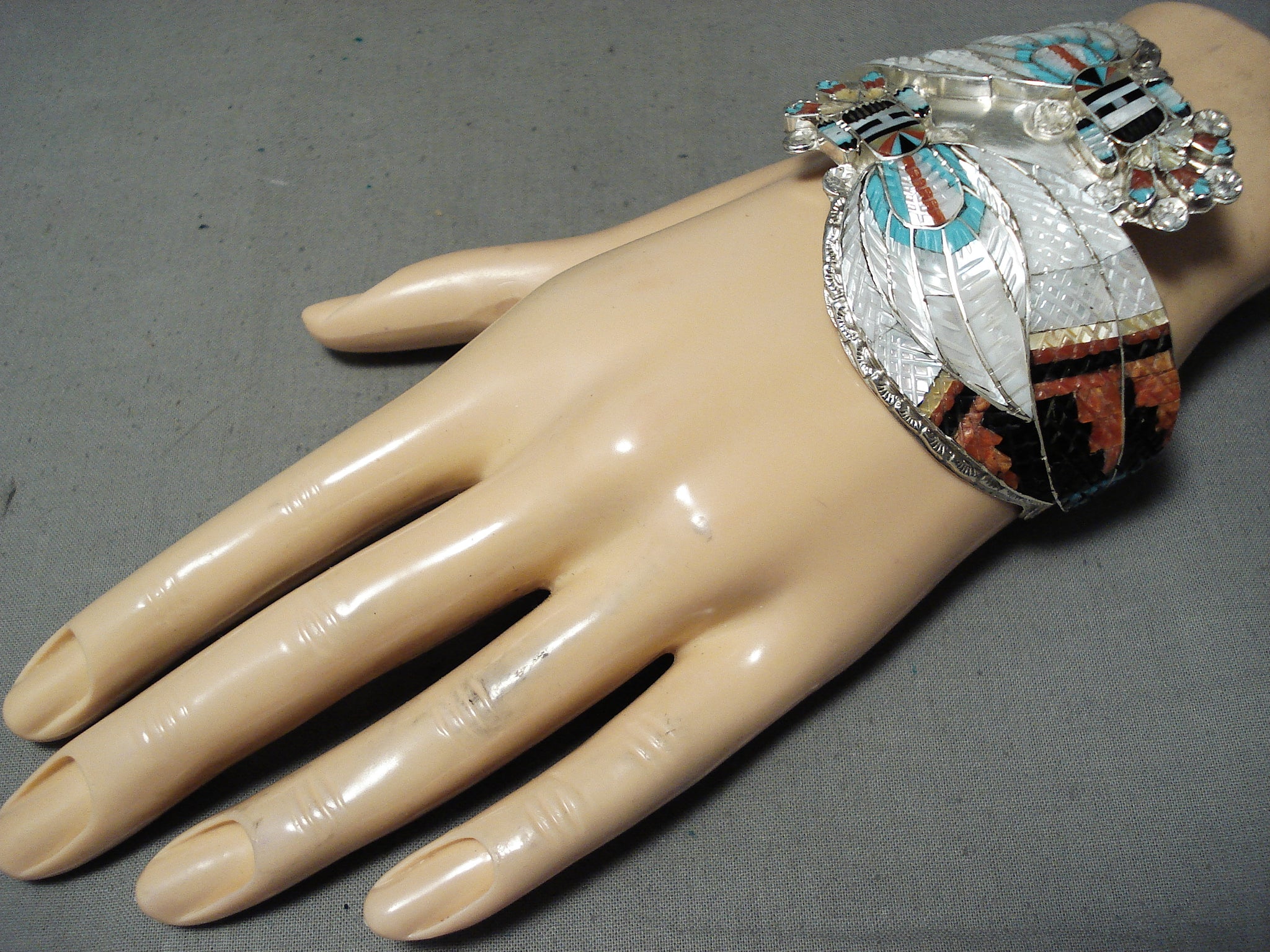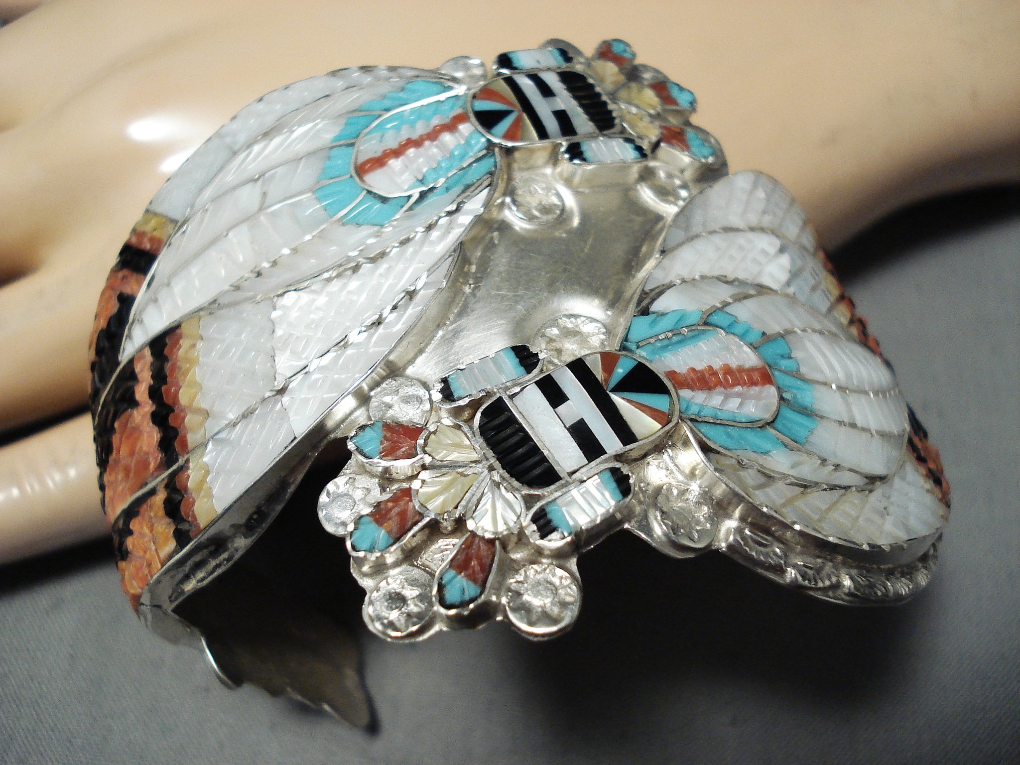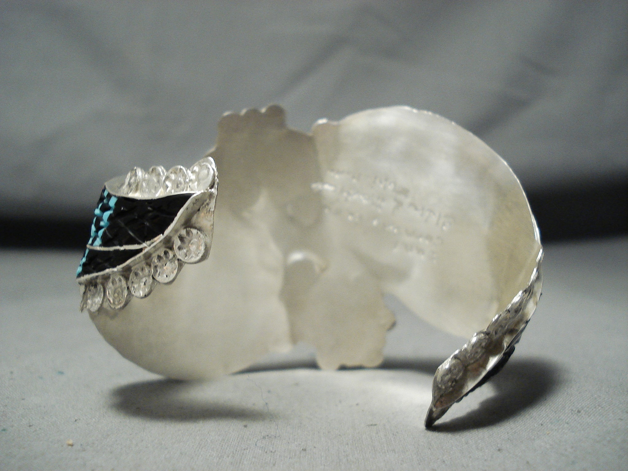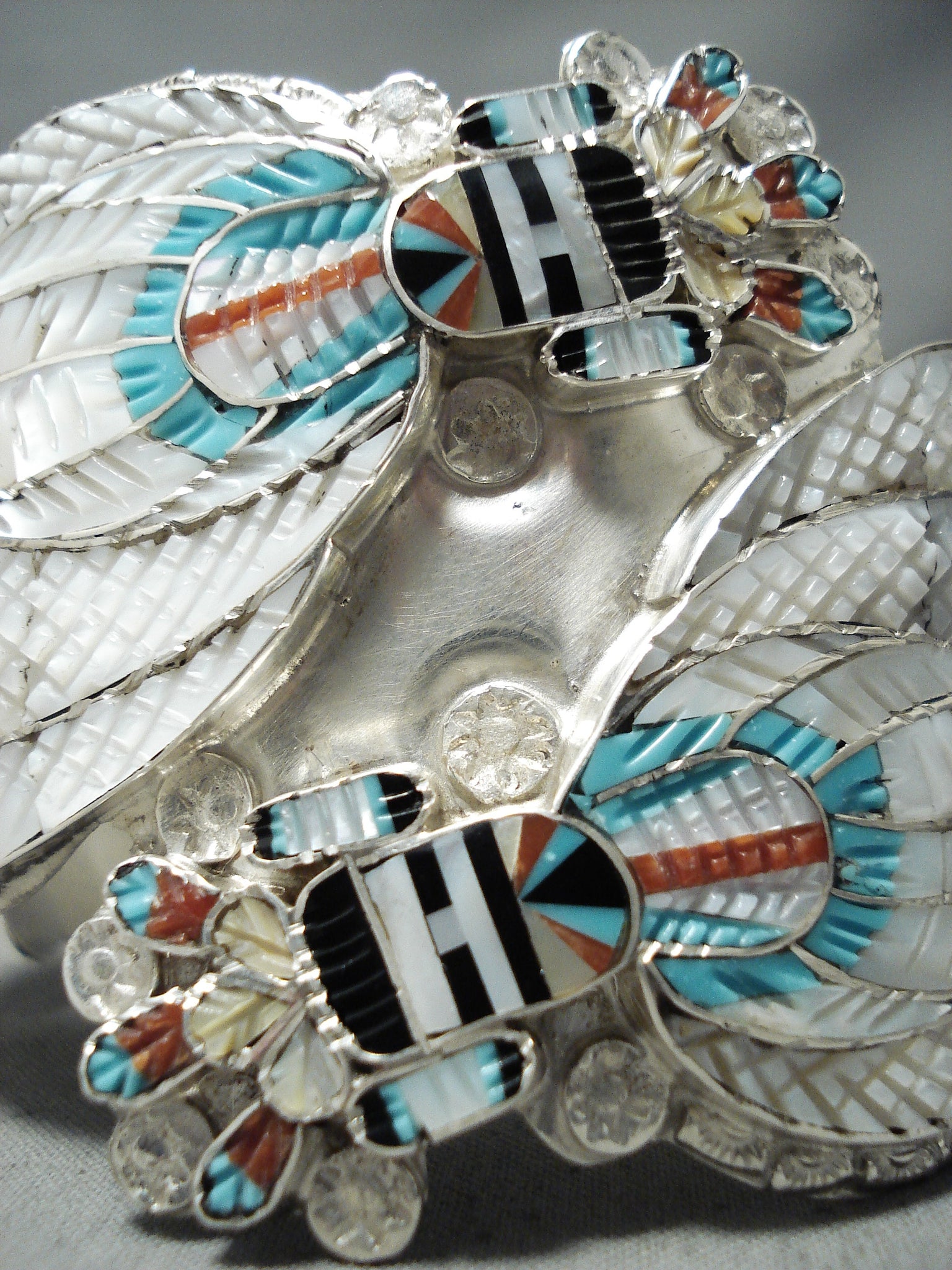 One Of The Most Intricate Native American Zuni Turquoise Kachina Sterling Silver Bracelet
