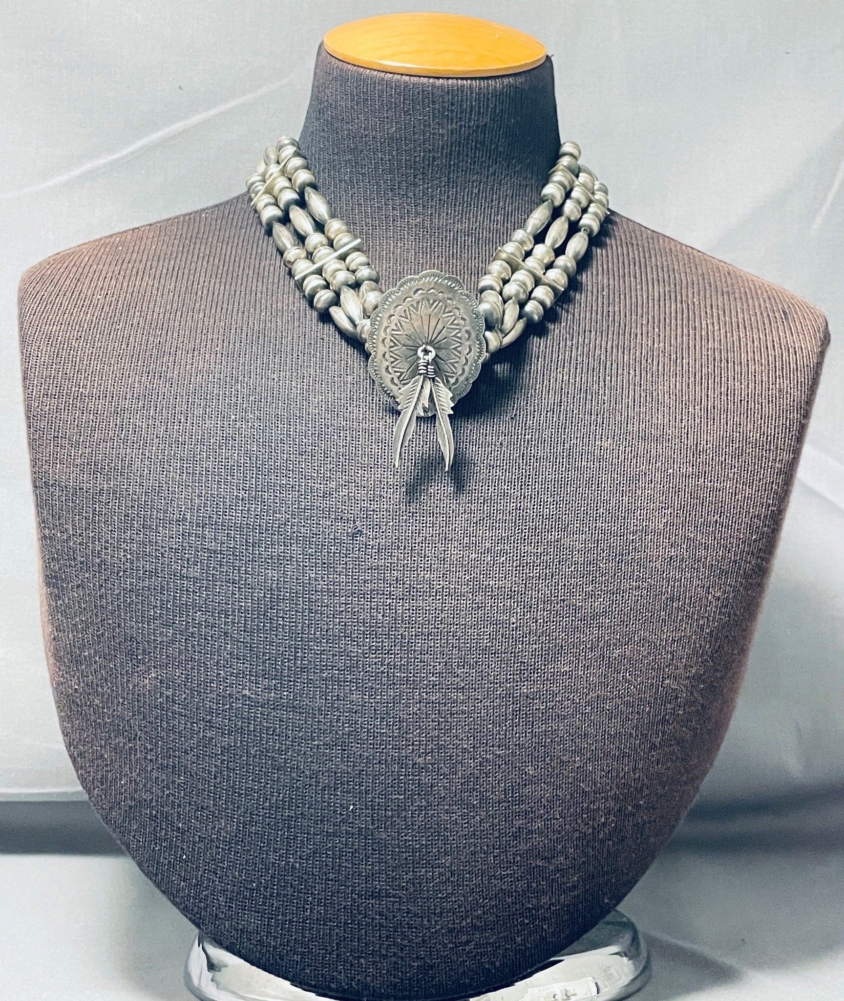 One Of The Most Intricate Vintage Choker Native American Navajo Sterling Silver Necklace