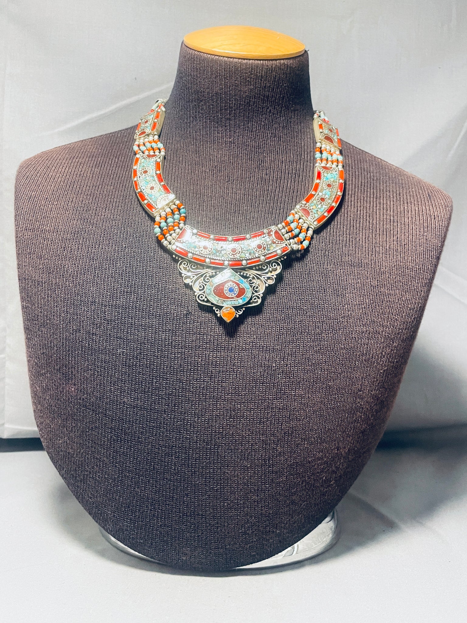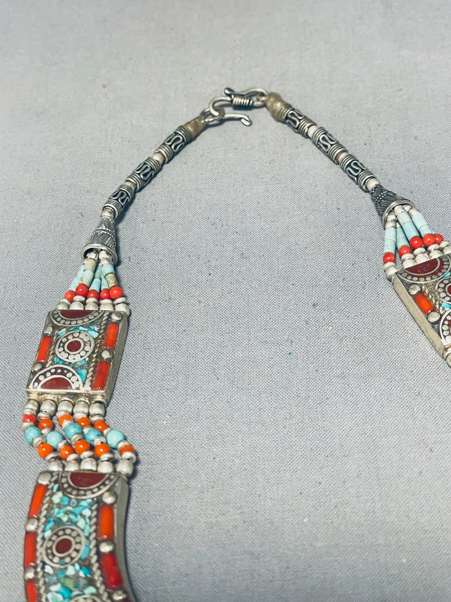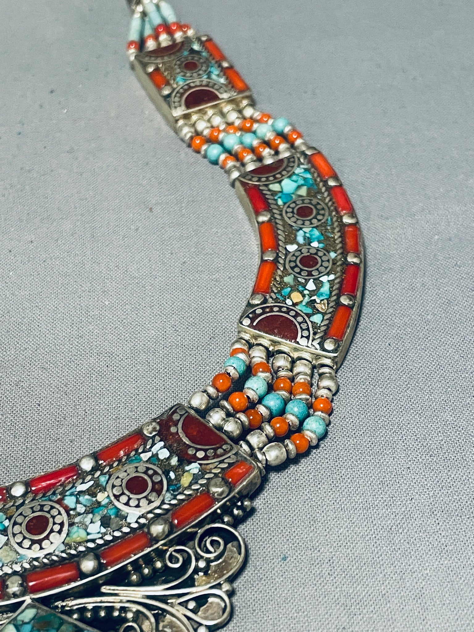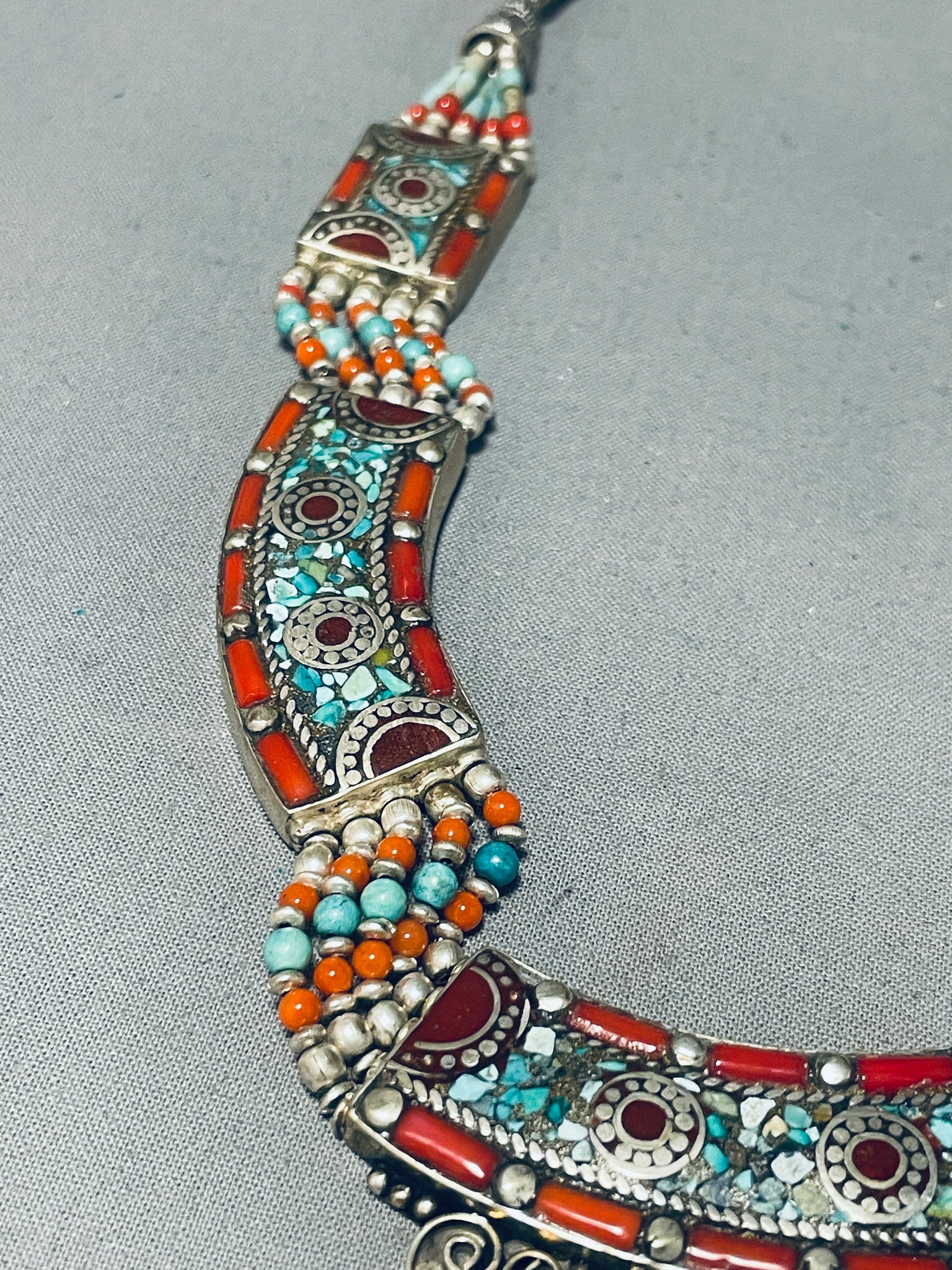 One Of The Most Intricate Vintage Sterling Silver Turquoise Necklace
