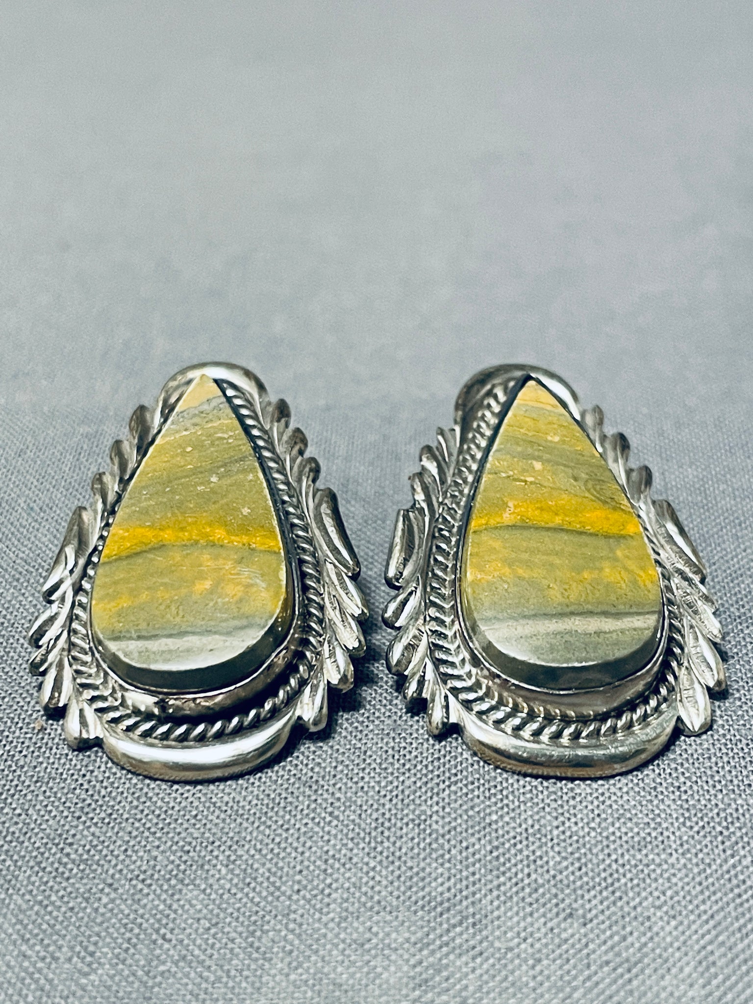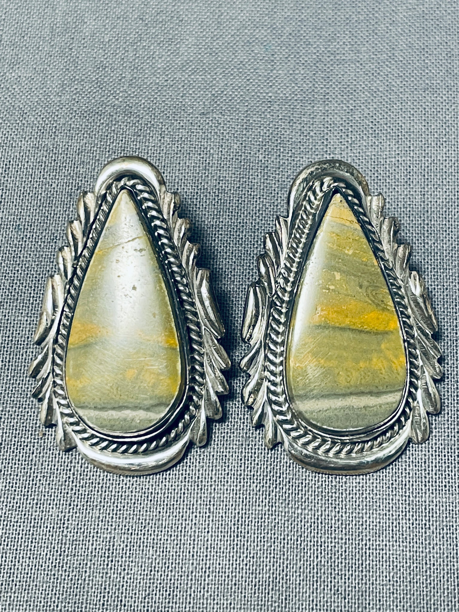One Of The Most Rare Vintage Native American Navajo Ben Begaye Honeybee Jasper Earrings