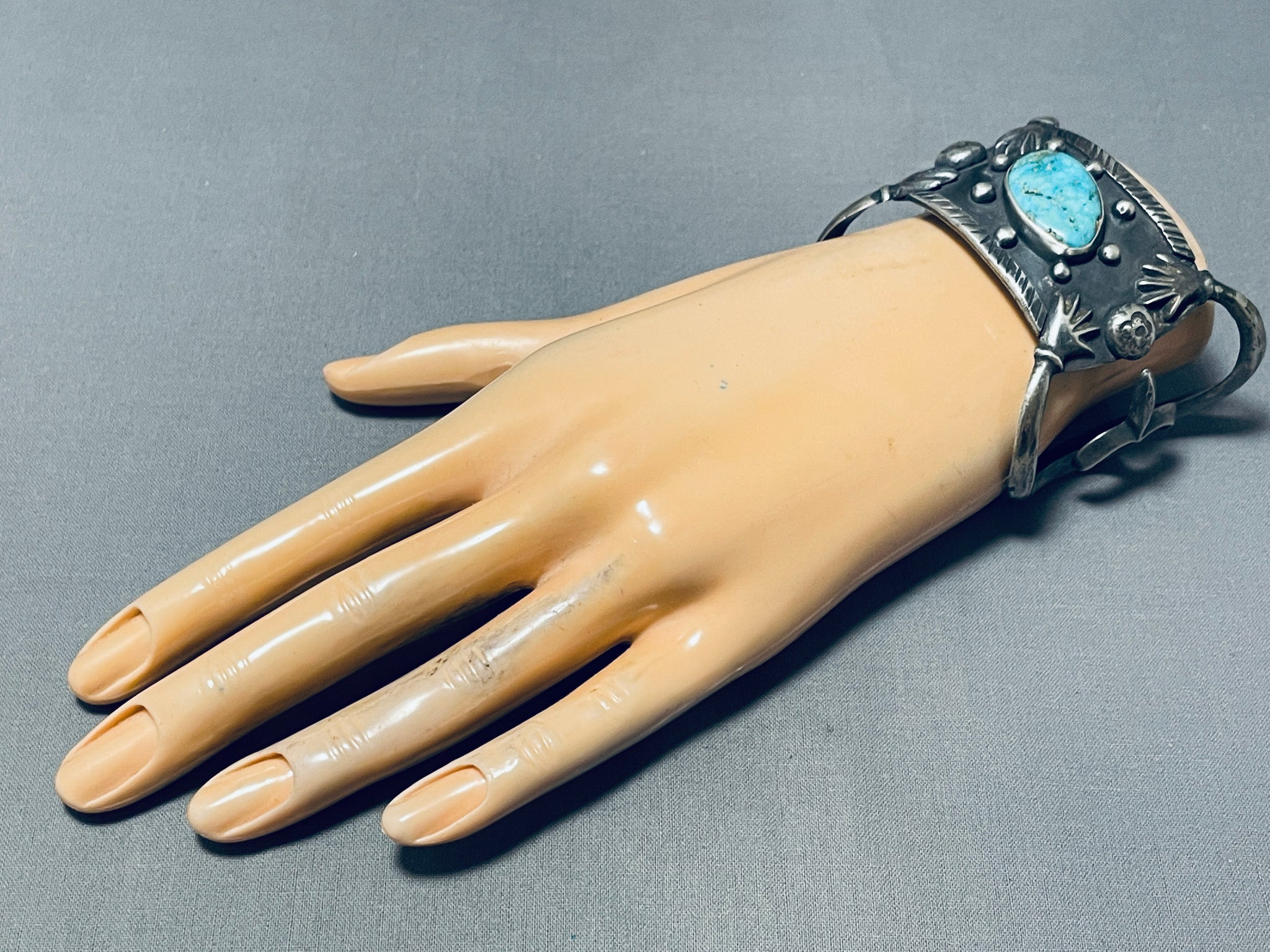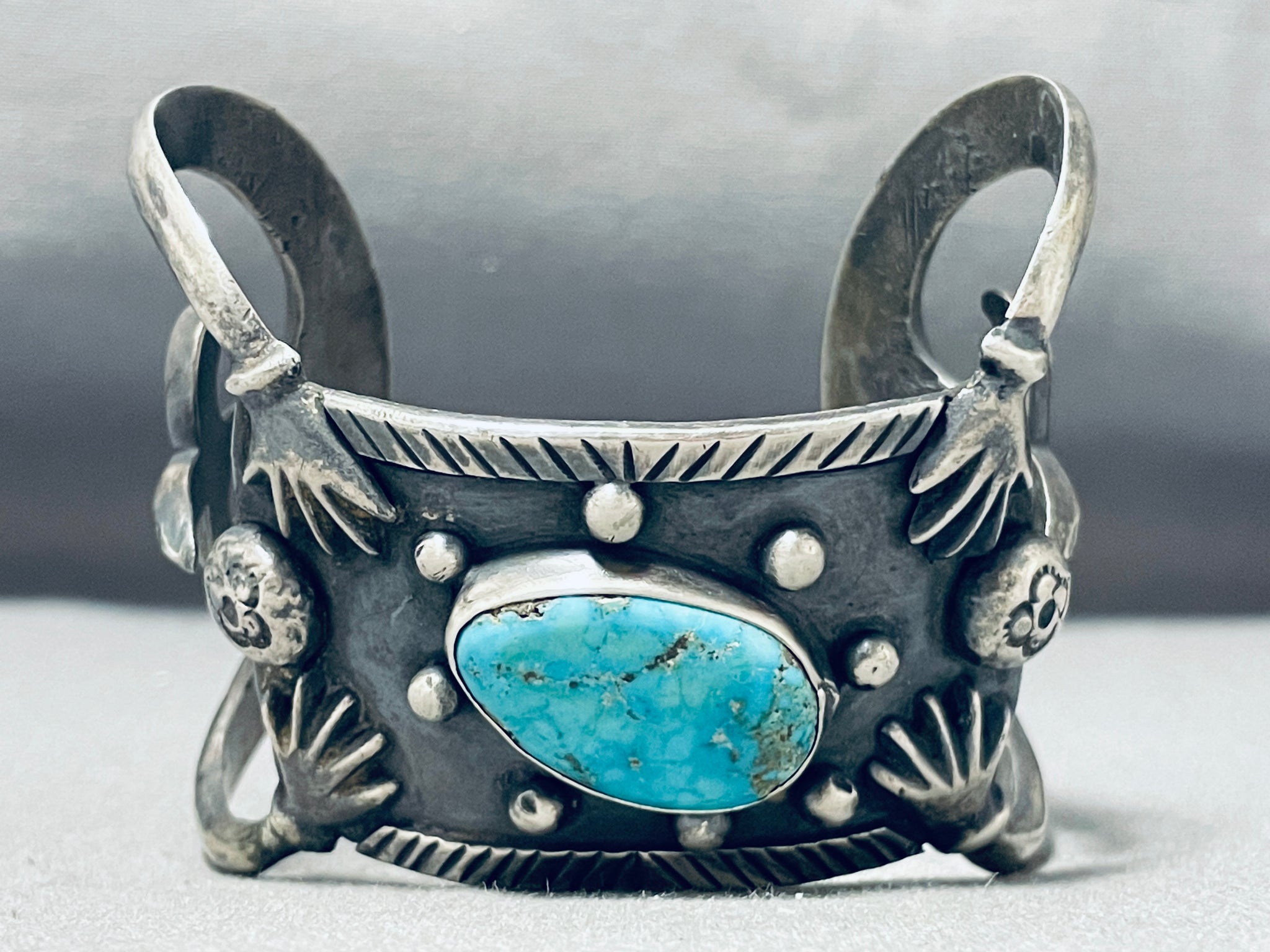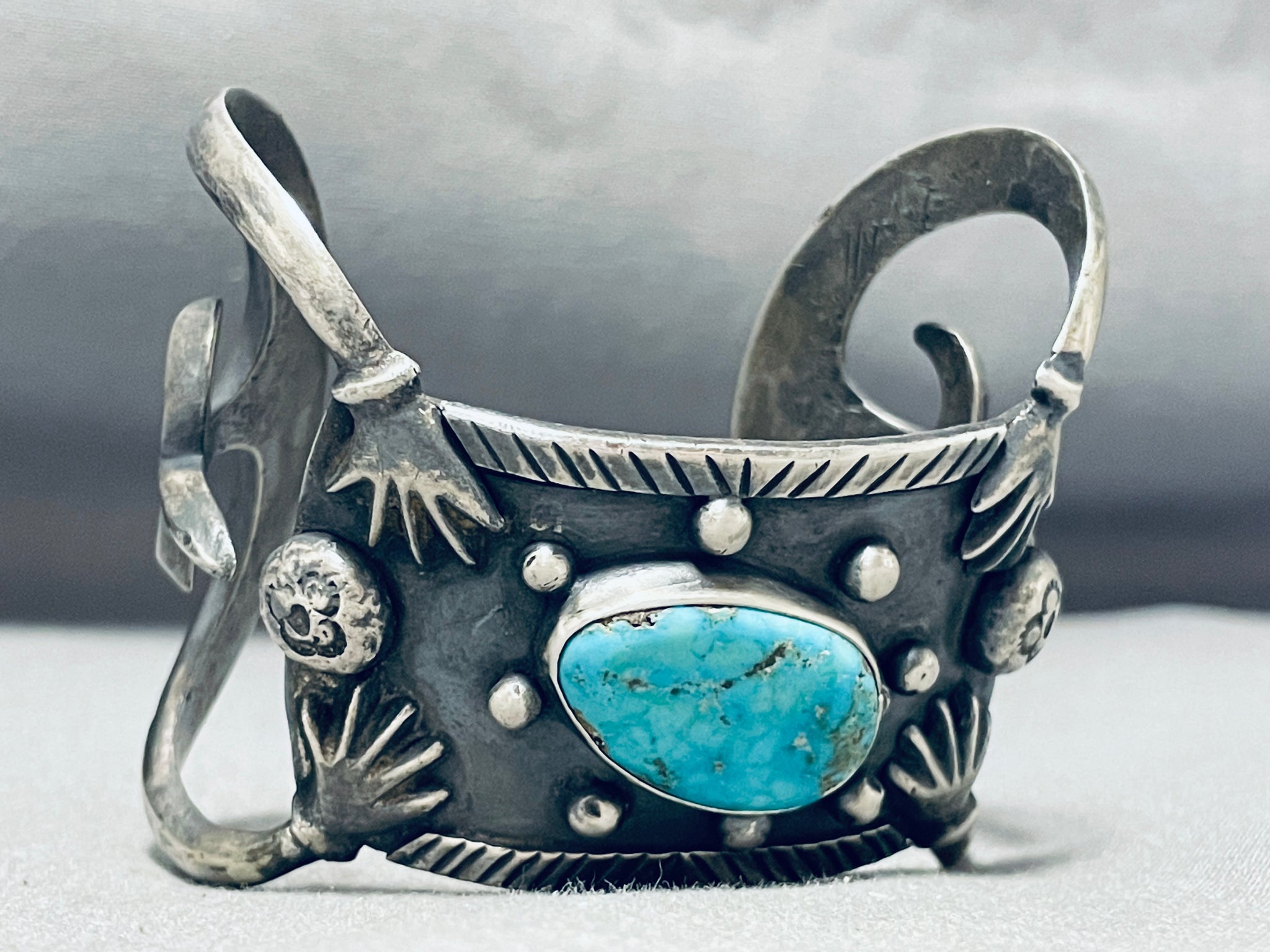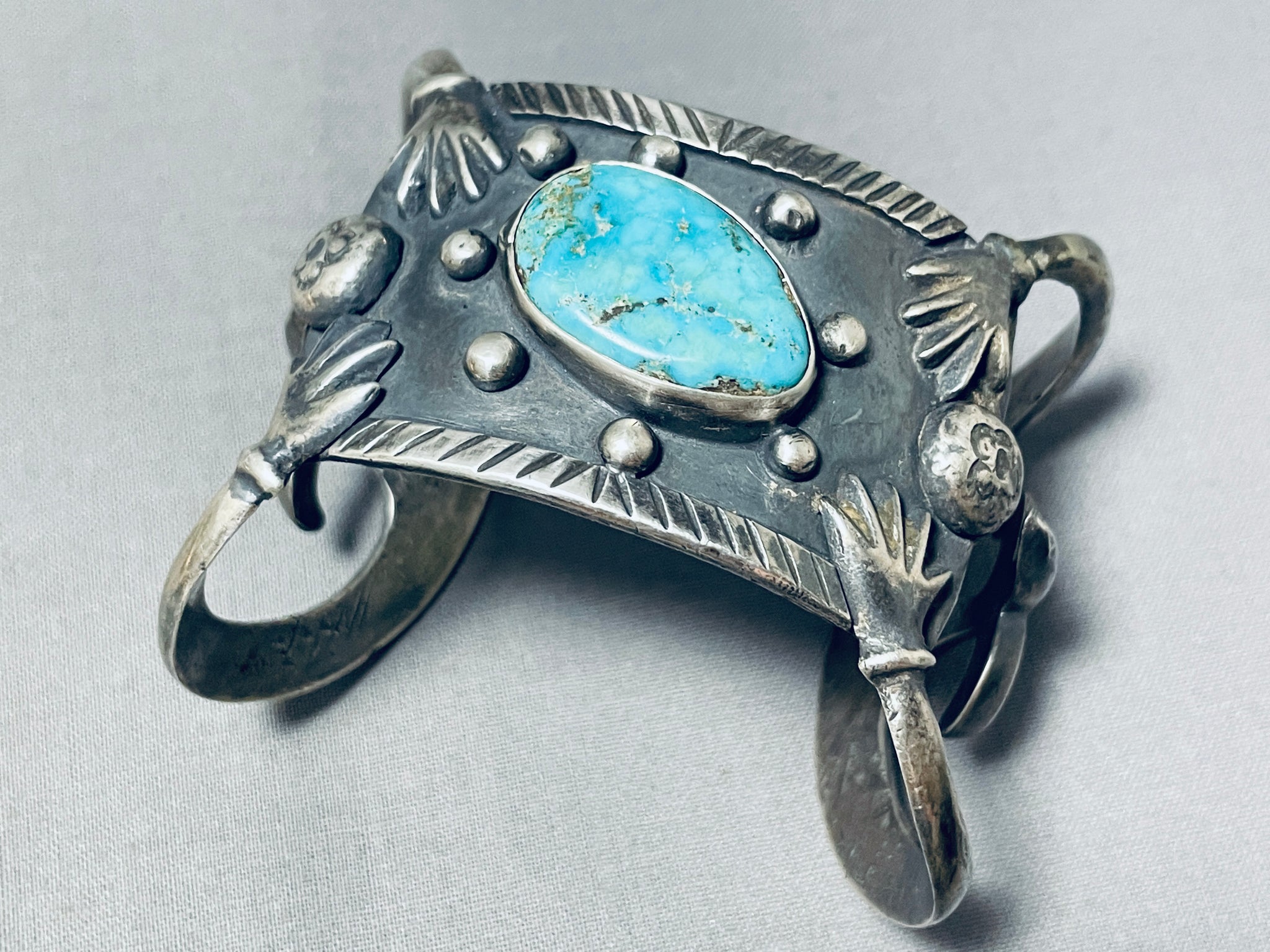 One Of The Most Unique 4 Arms Vintage Native American Navajo Sterling Silver Turquoise Bracelet