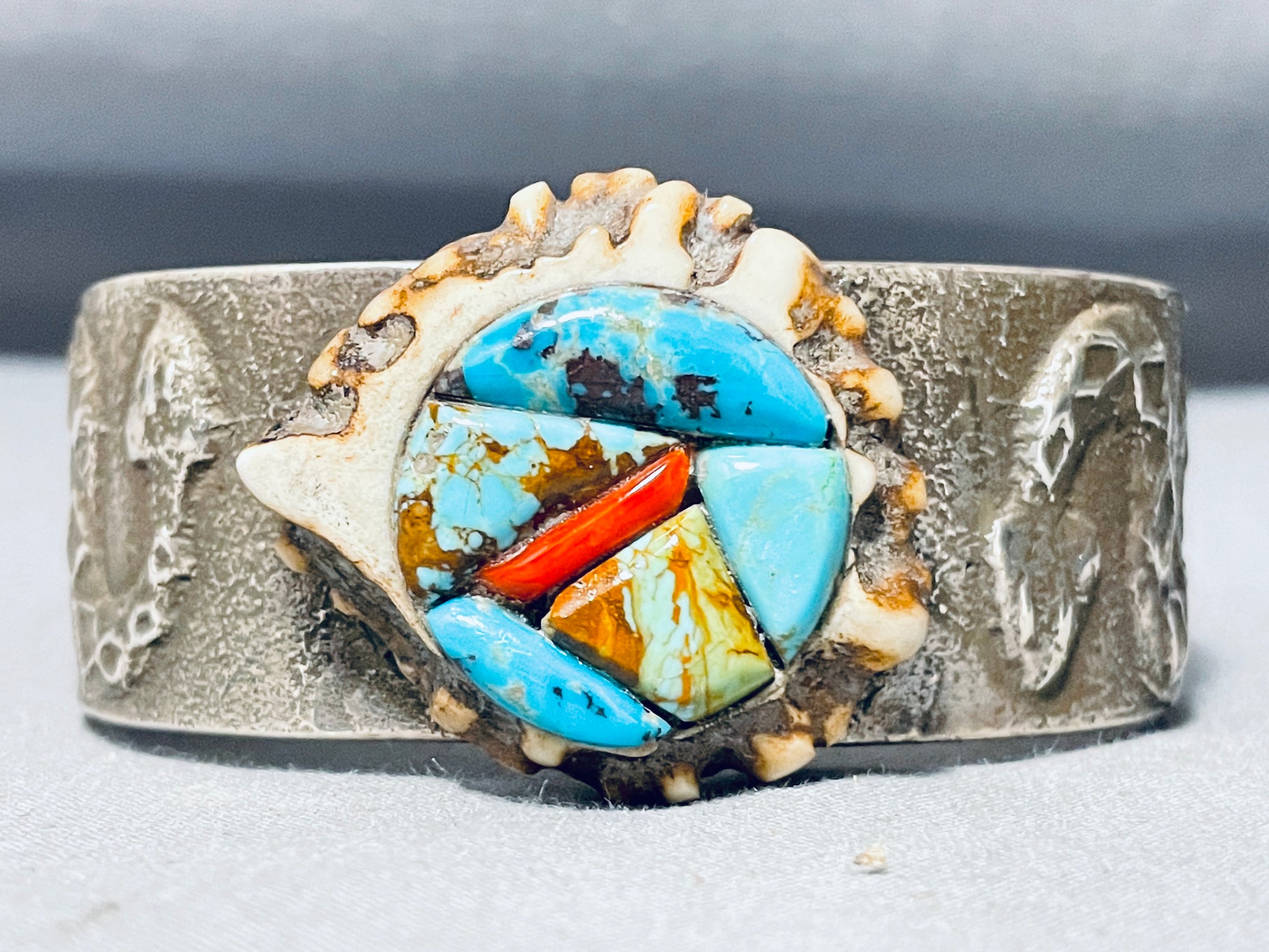 One Of The Most Unique Elk Turquoise Inlay Sterling Silver Bracelet