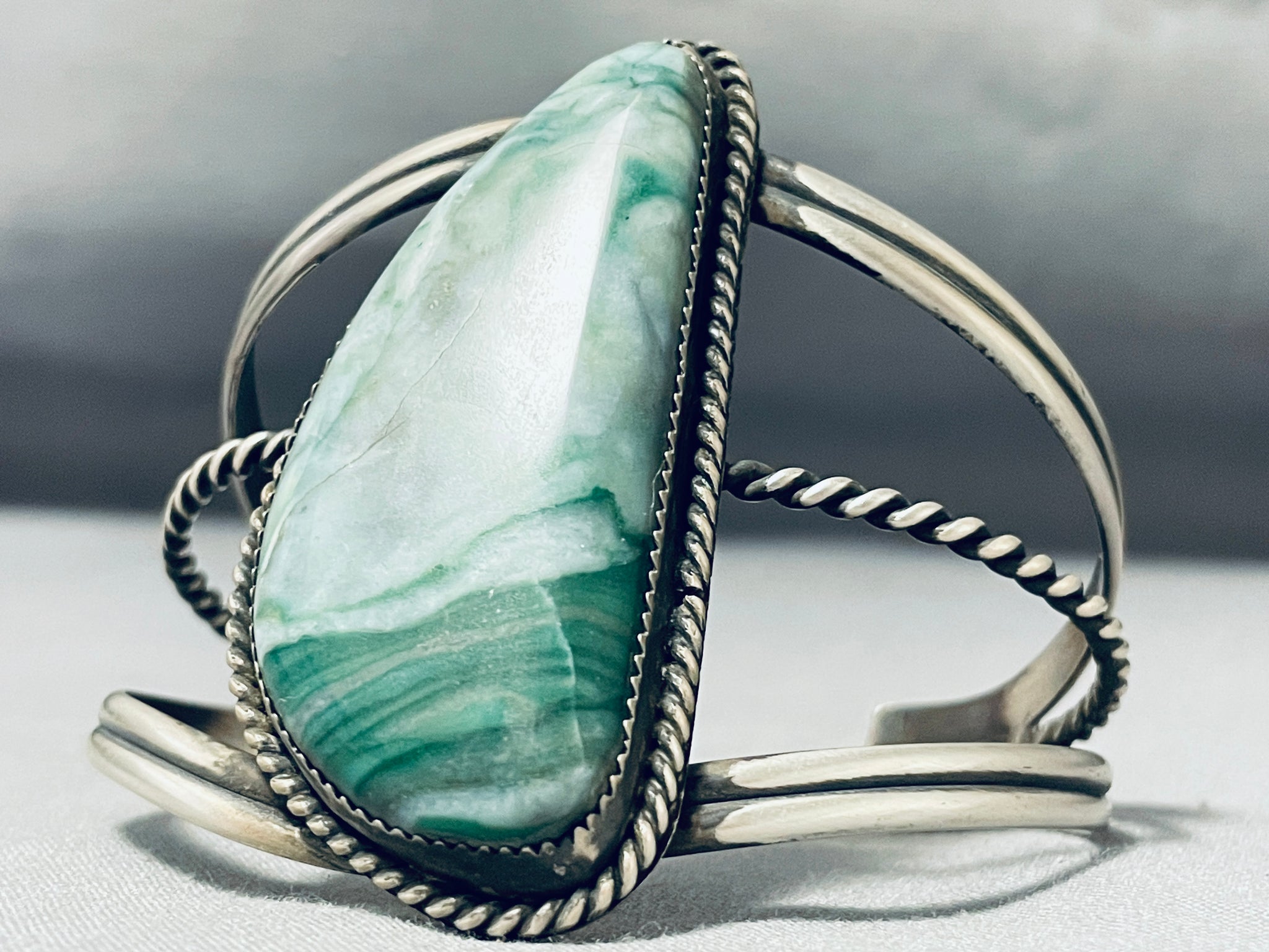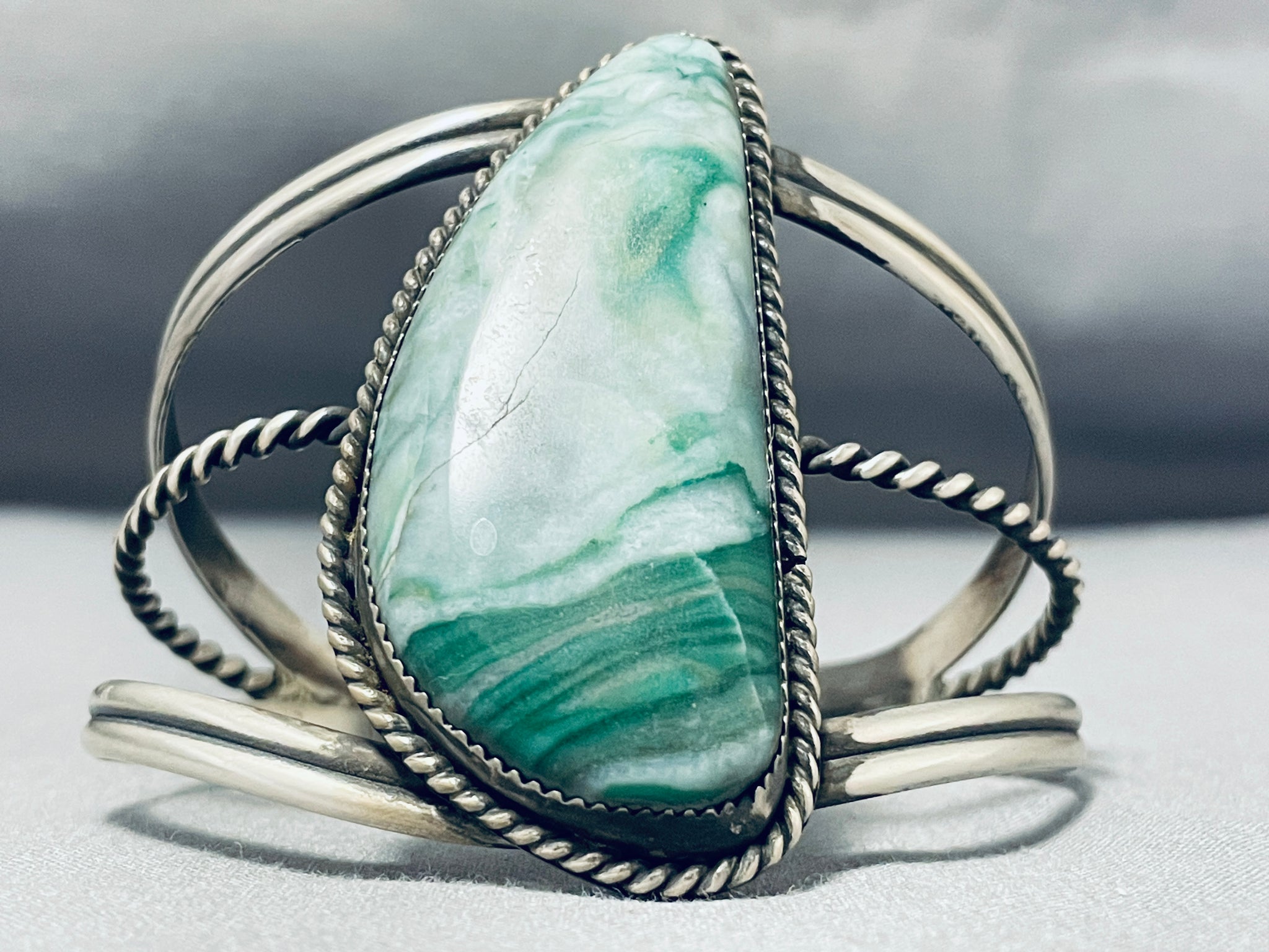 One Of The Most Unique Ever Native American Navajo Malachite Sterling Silver Bracelet