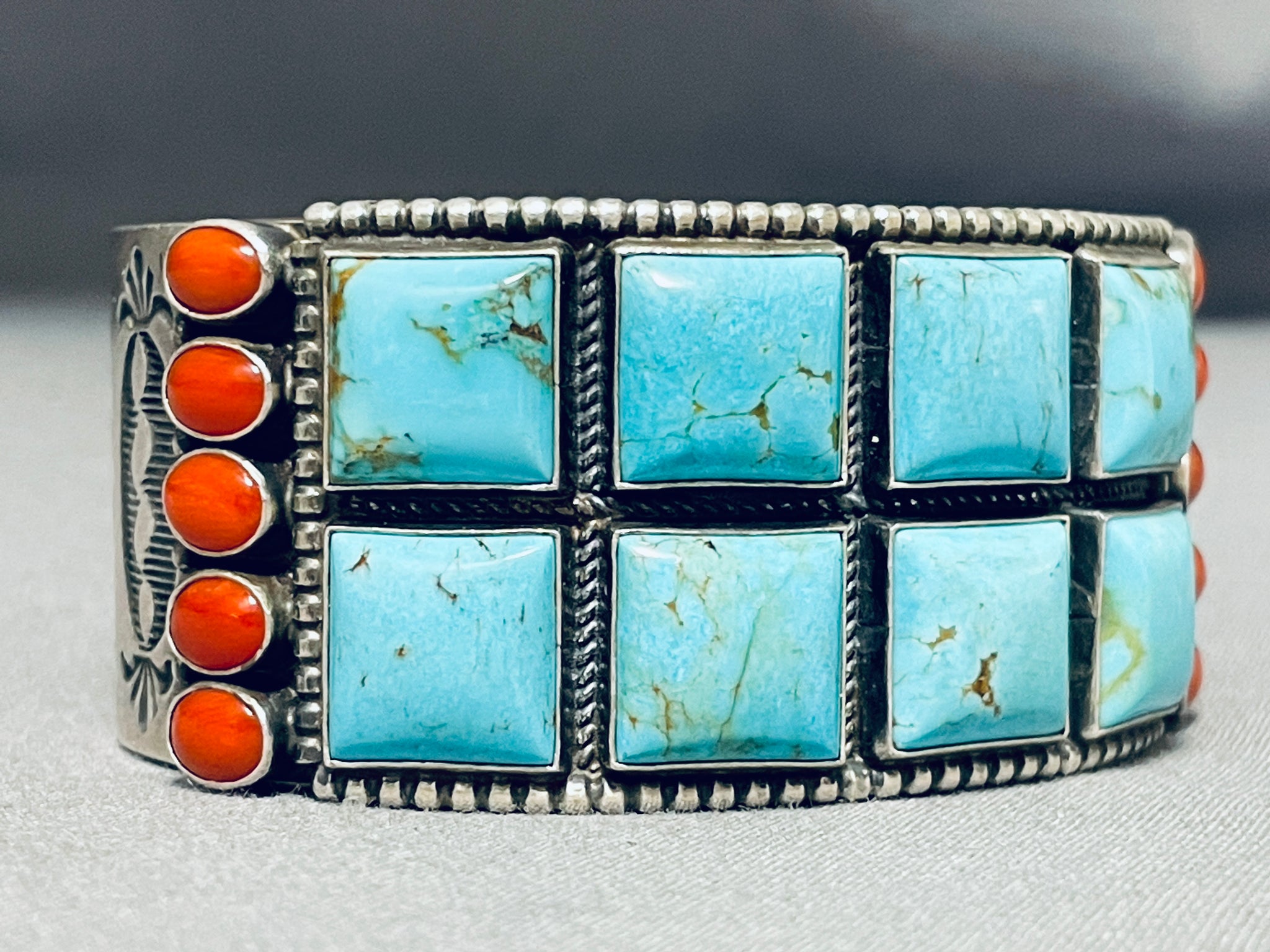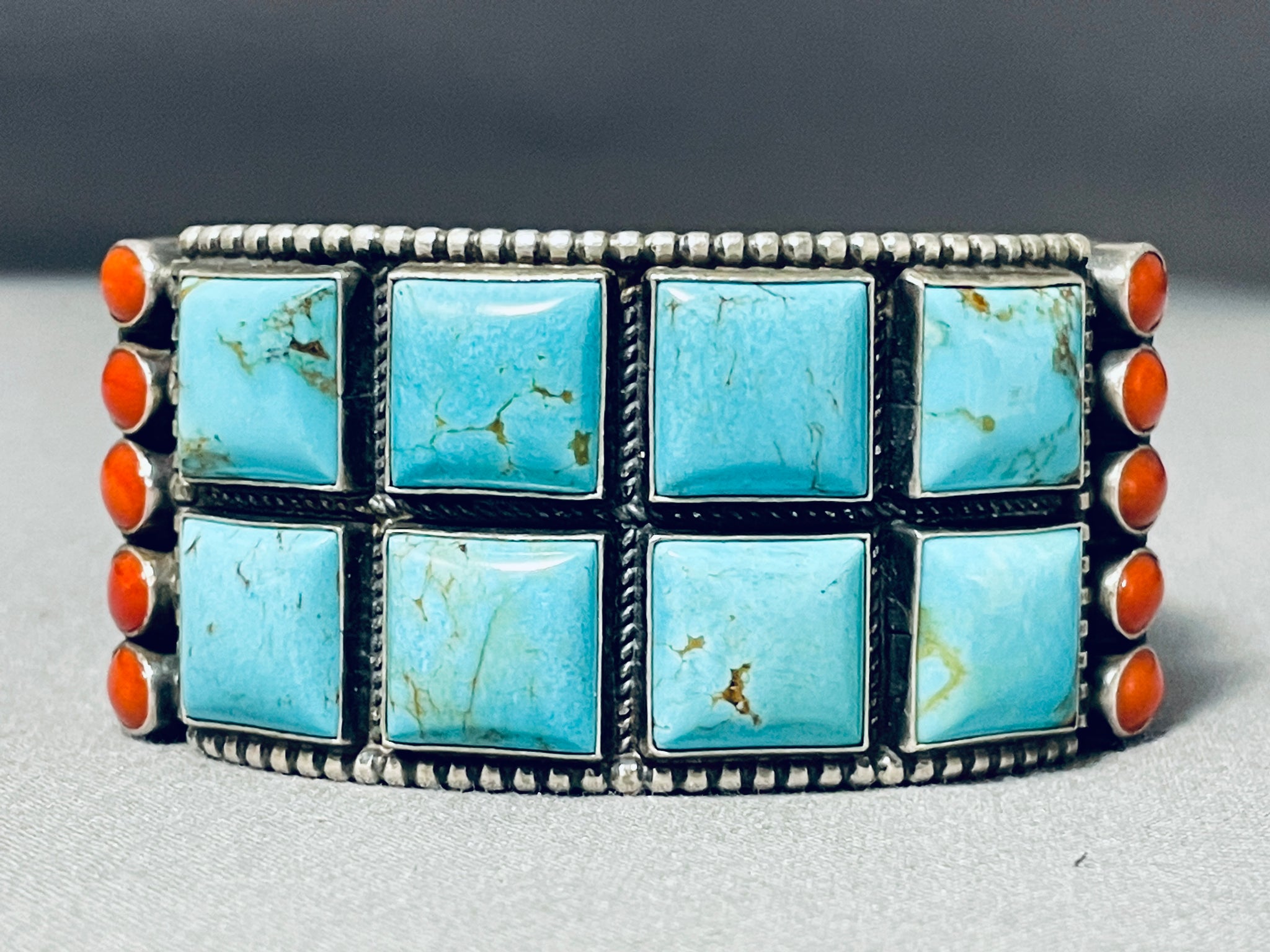 One Of The Most Unique Ever Native American Navajo Squared Turquoise Sterling Silver Bracelet