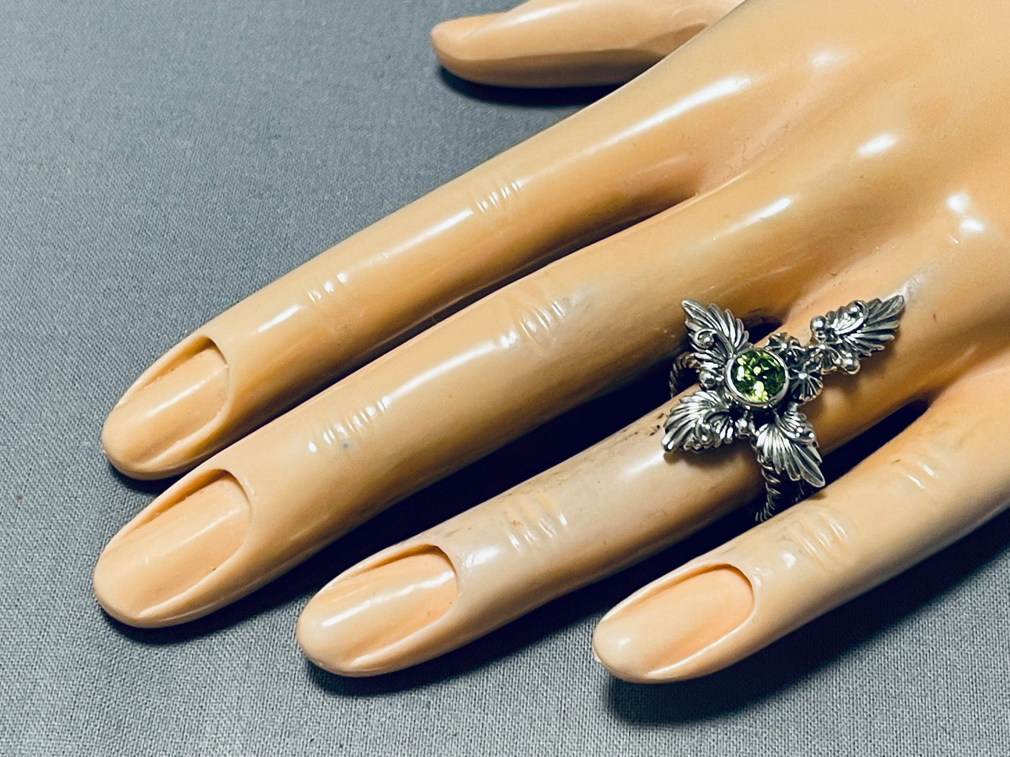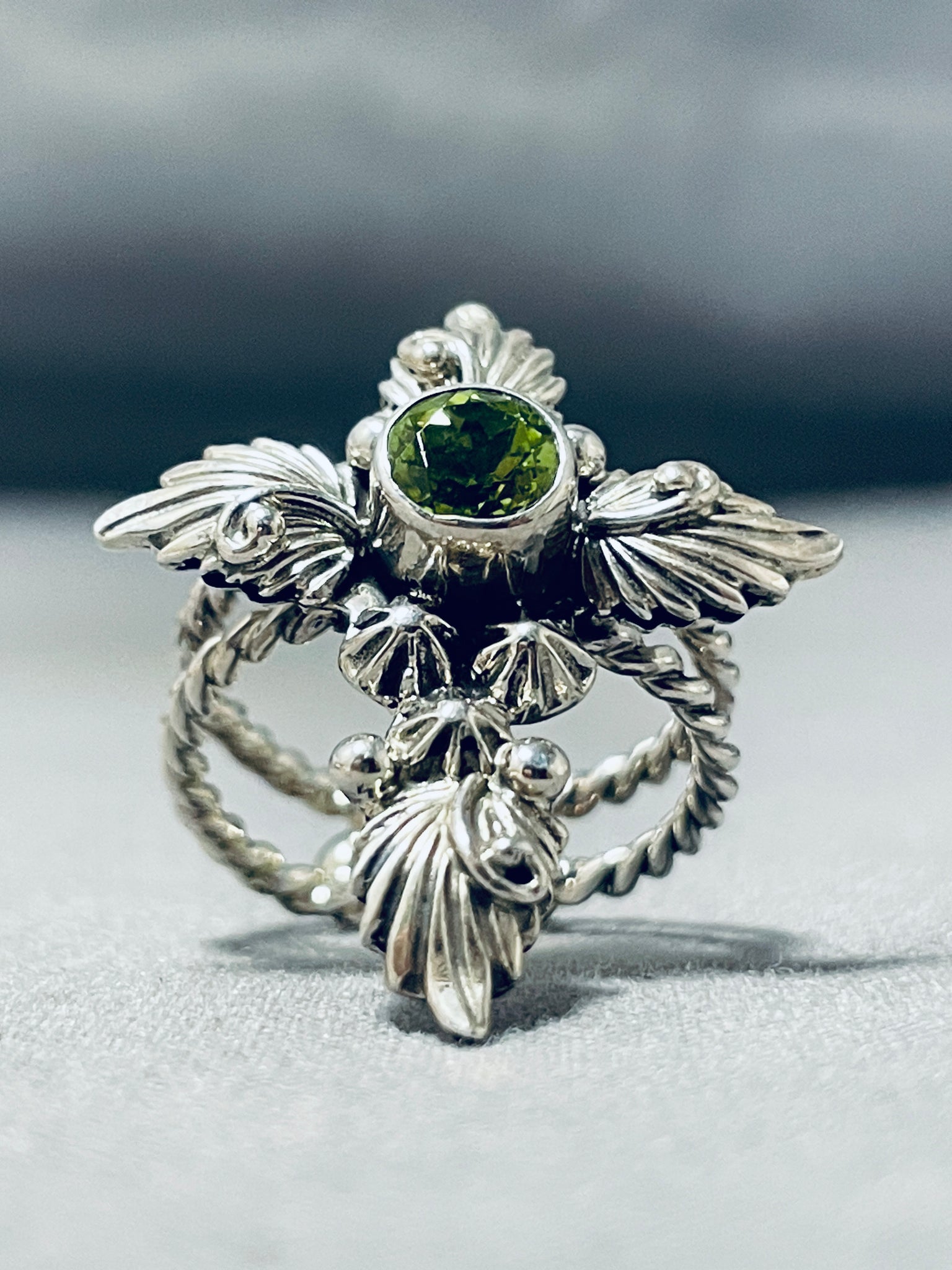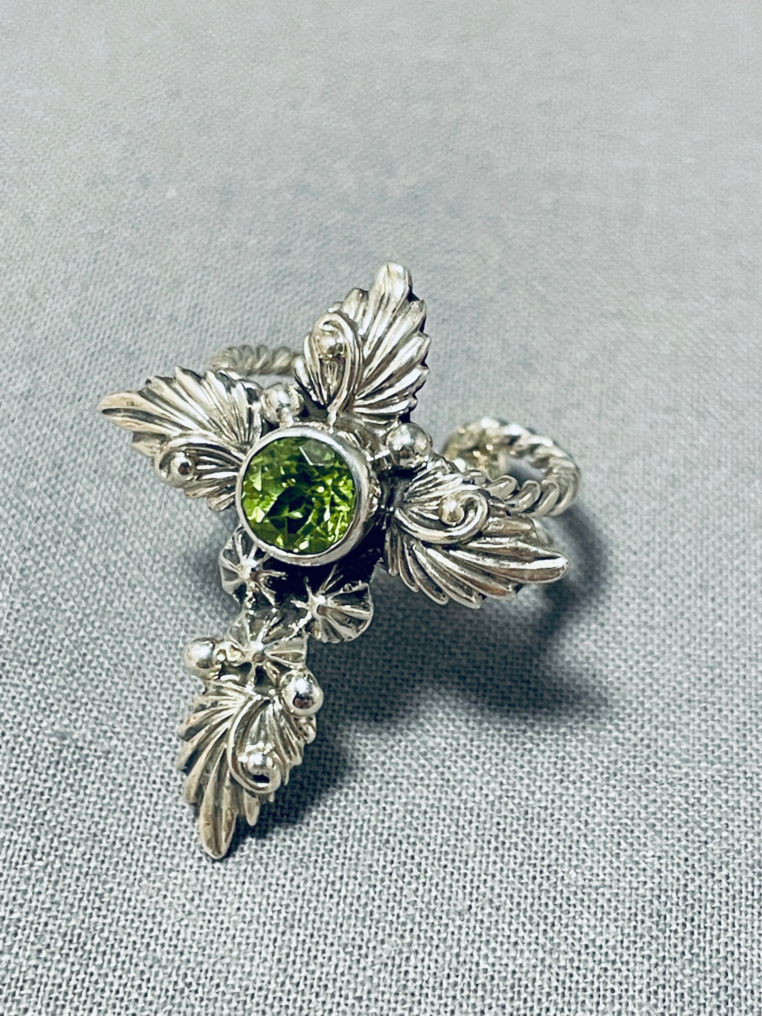 One Of The Most Unique Ever Native American Navajo Sterling Silver Peridot Cross Ring