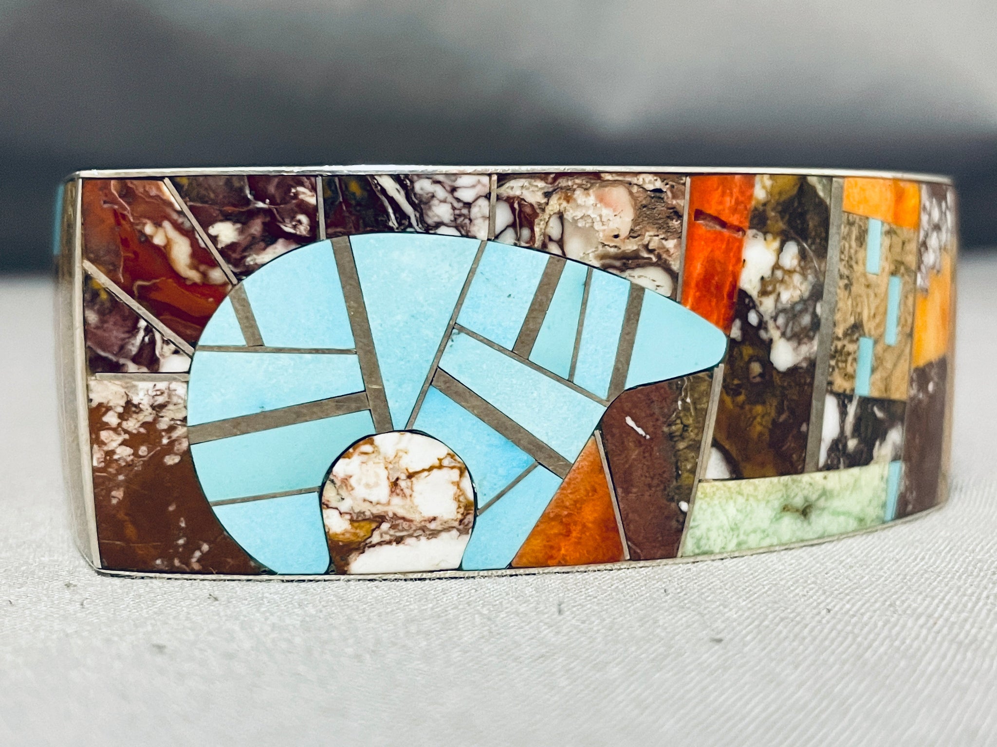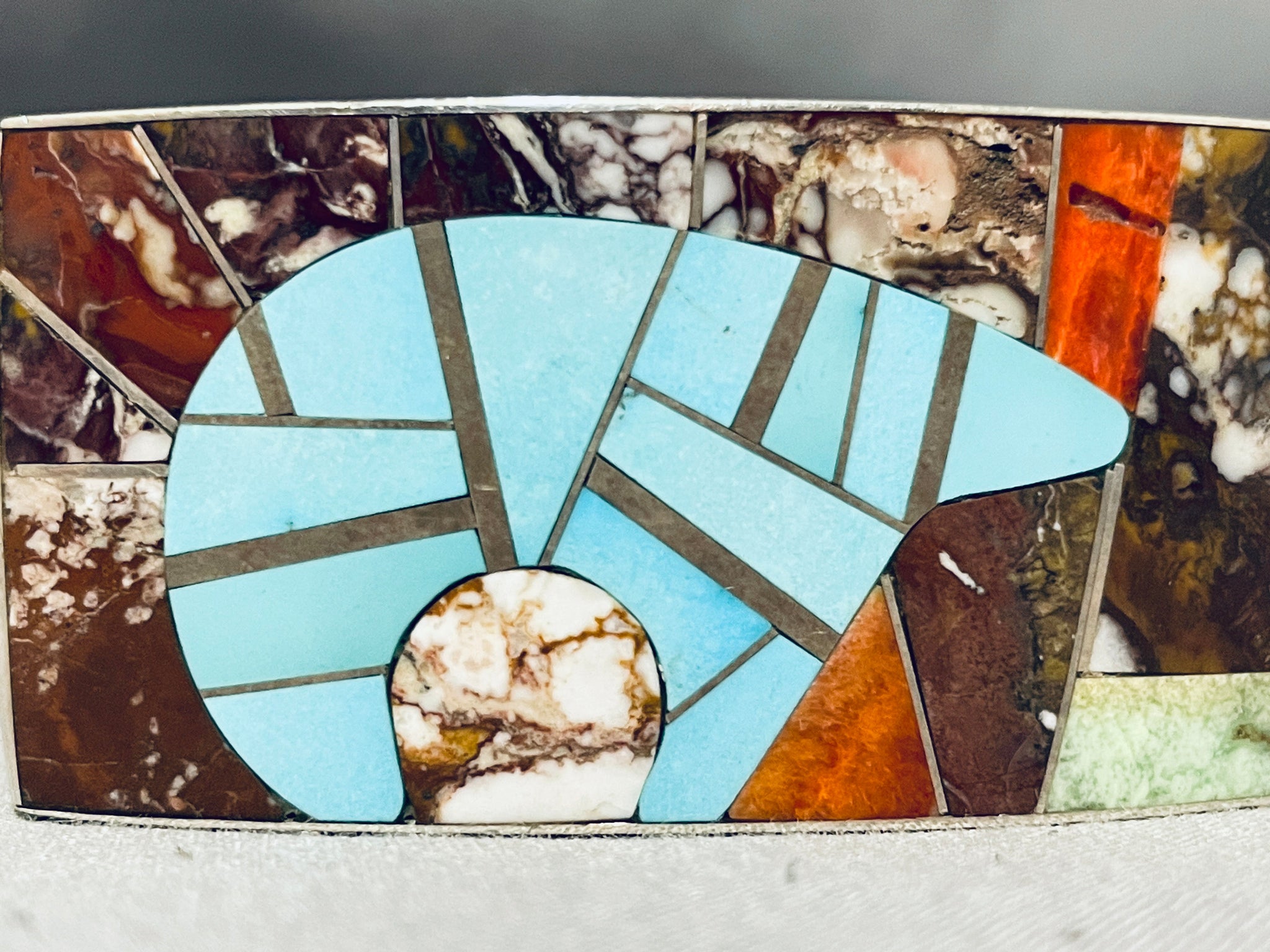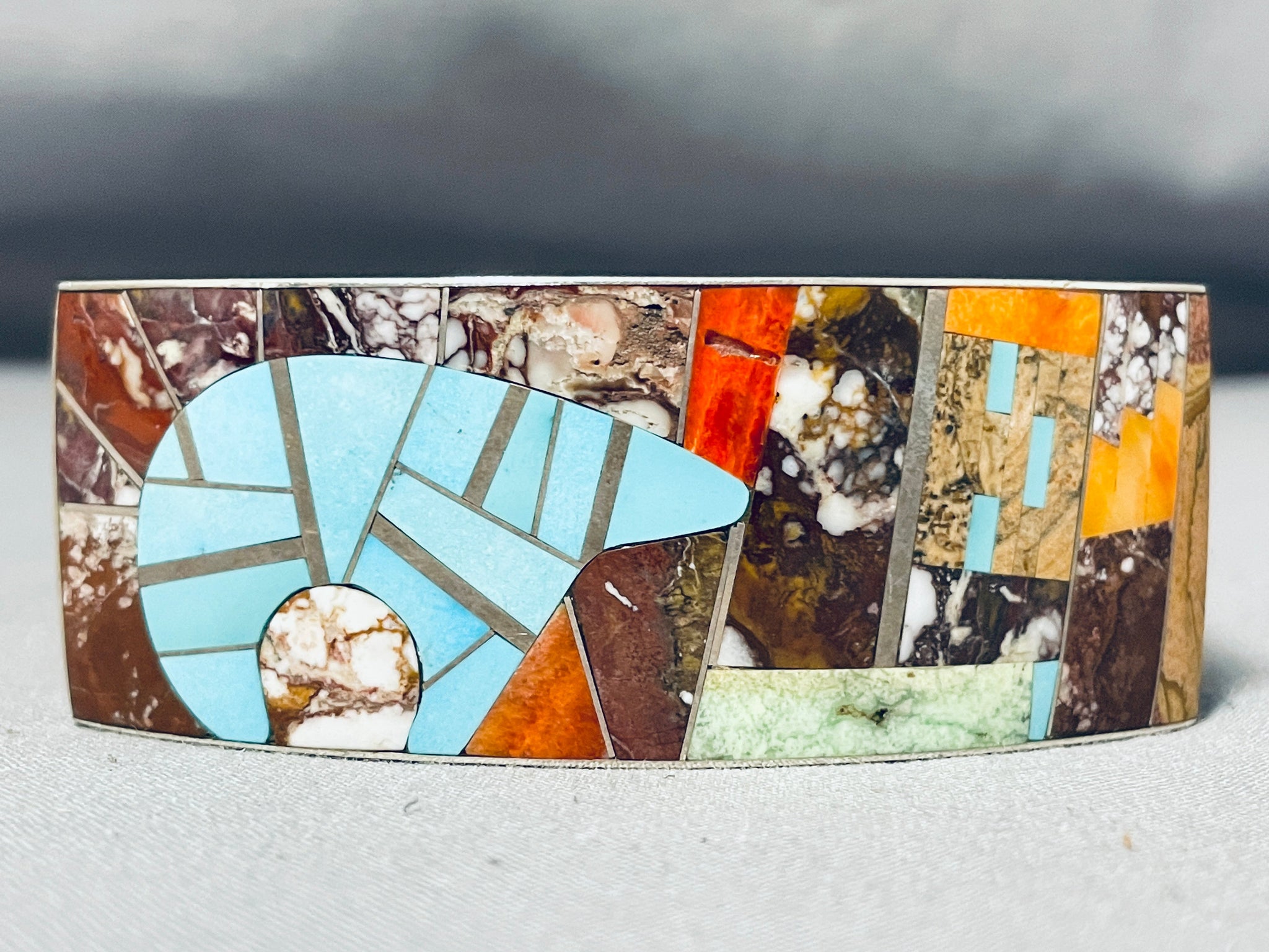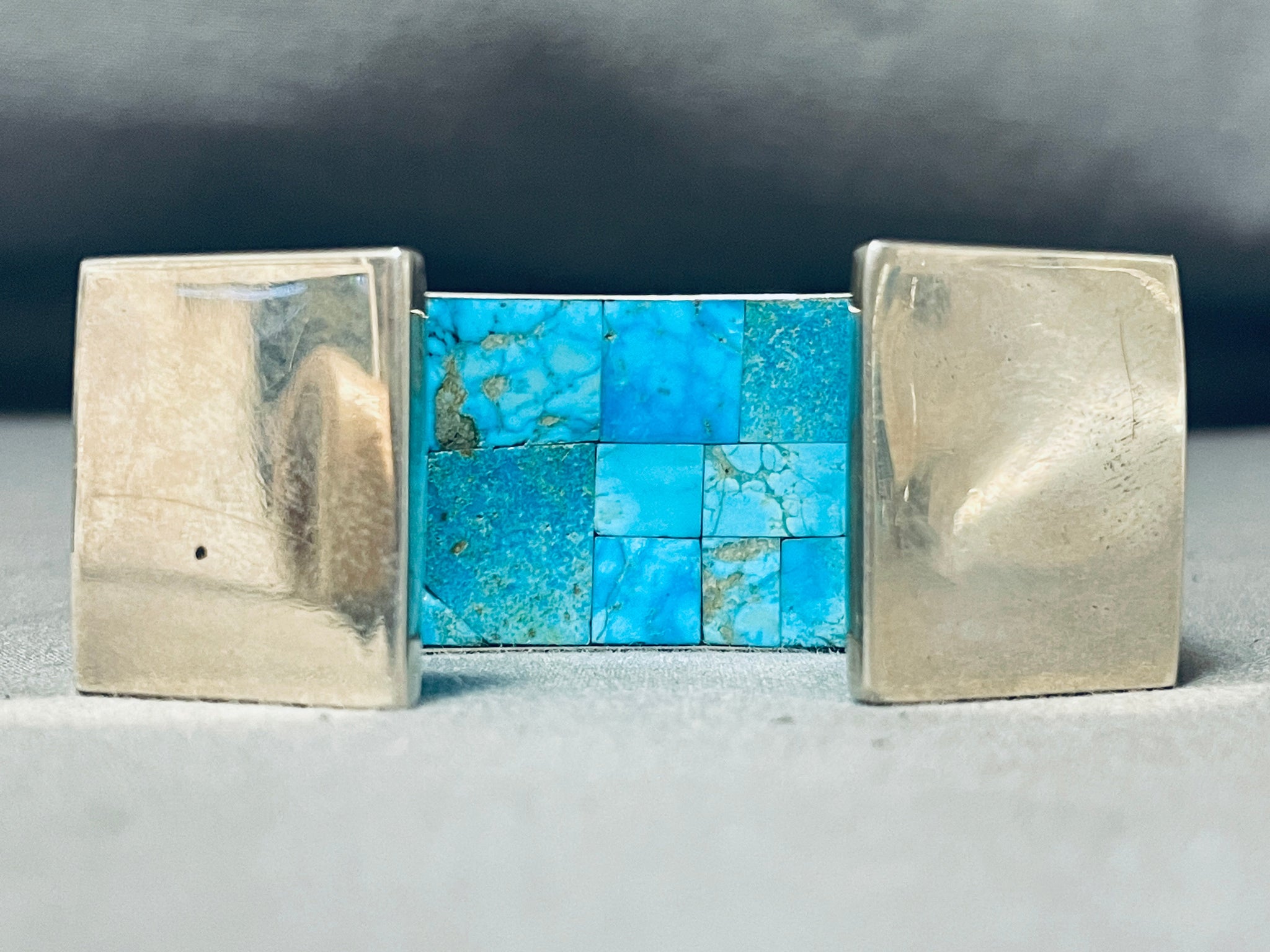 One Of The Most Unique Ever Native American Navajo Turquoise Sterling Silver Inlay Bracelet
