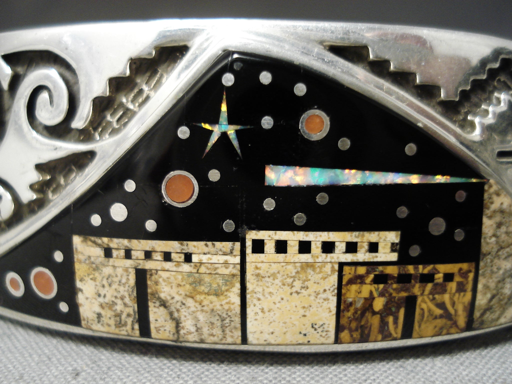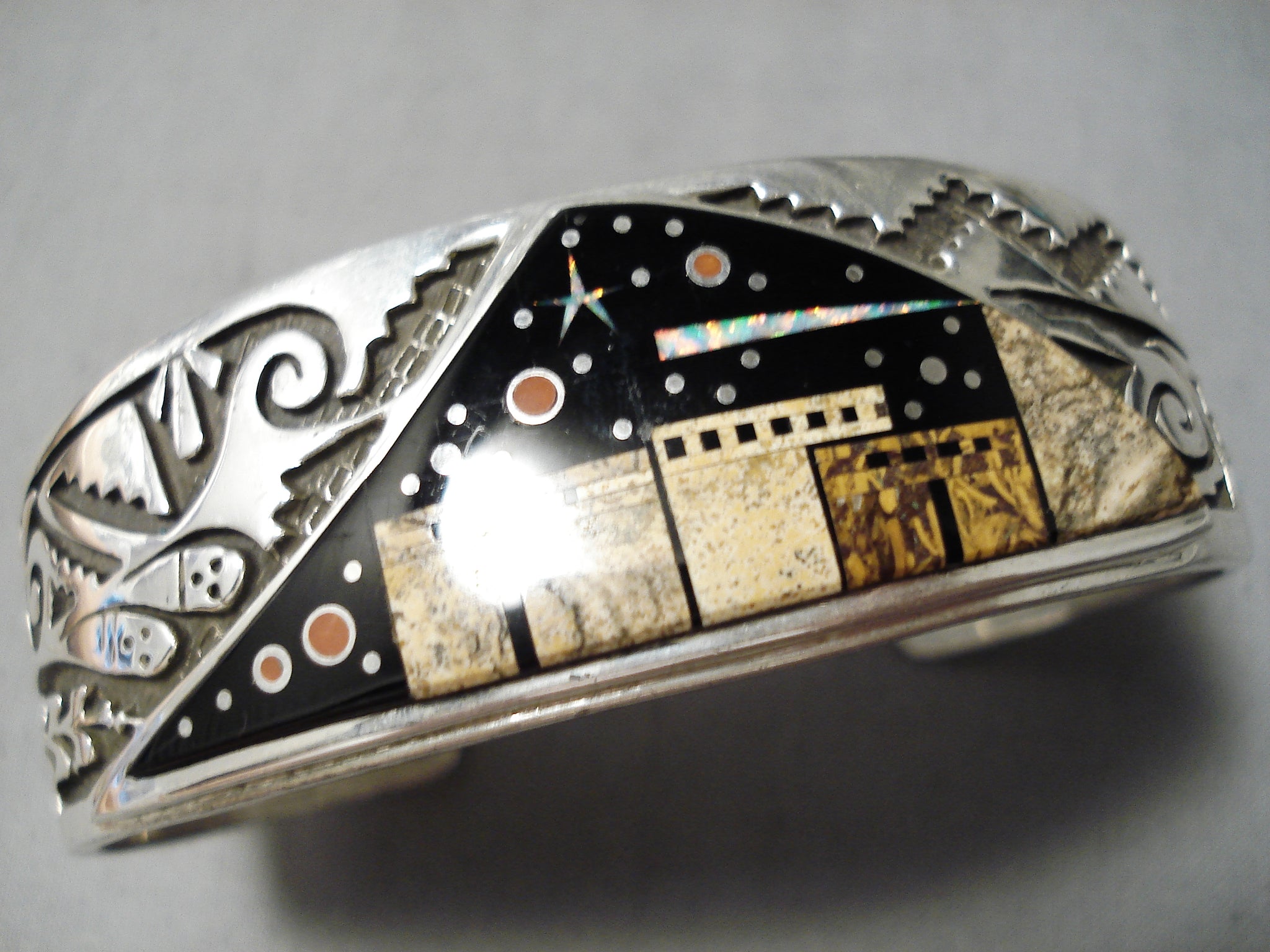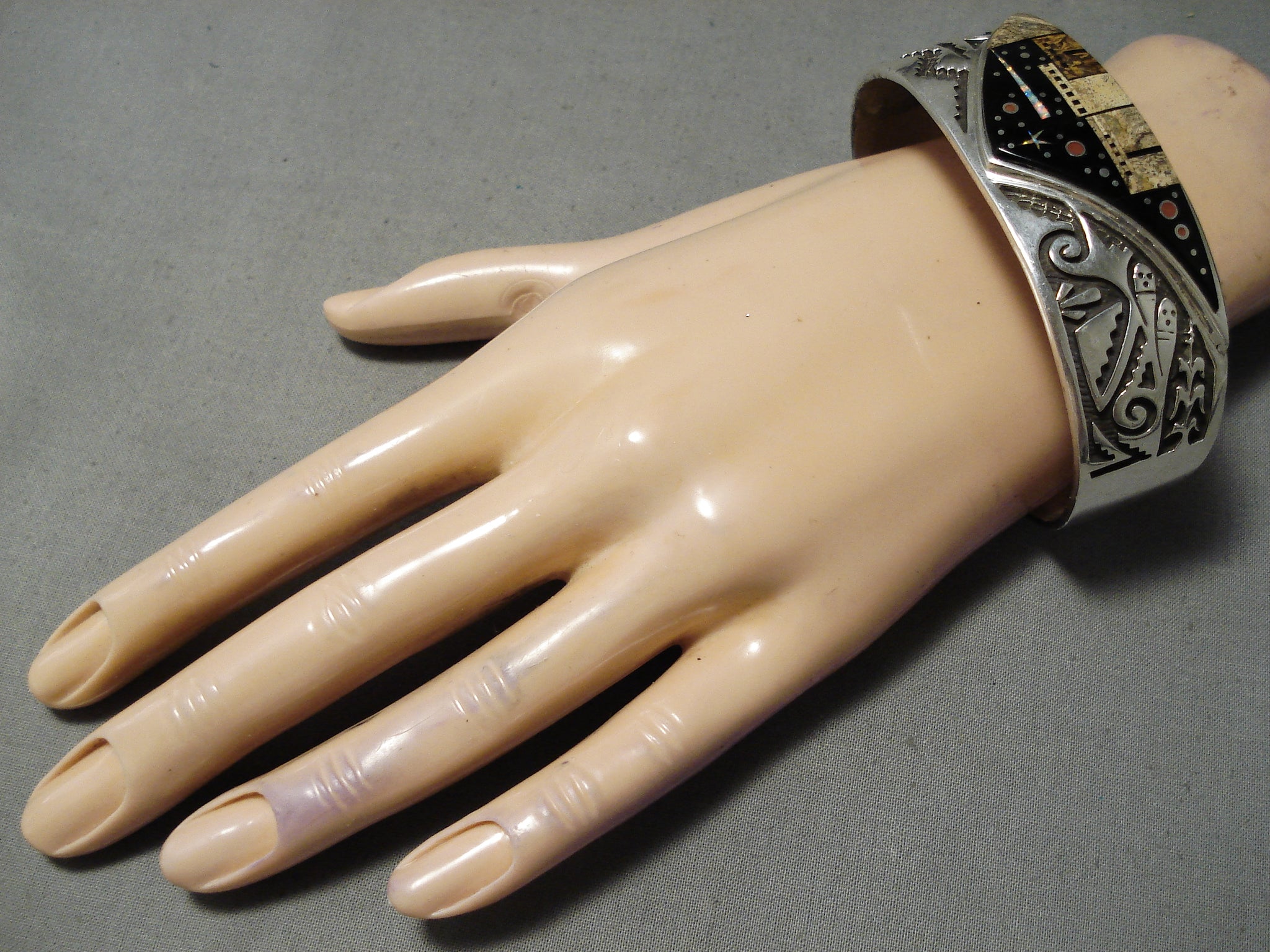 One Of The Most Unique Ever Native American Navajo Turquoise Sterling Silver Inlay Bracelet
