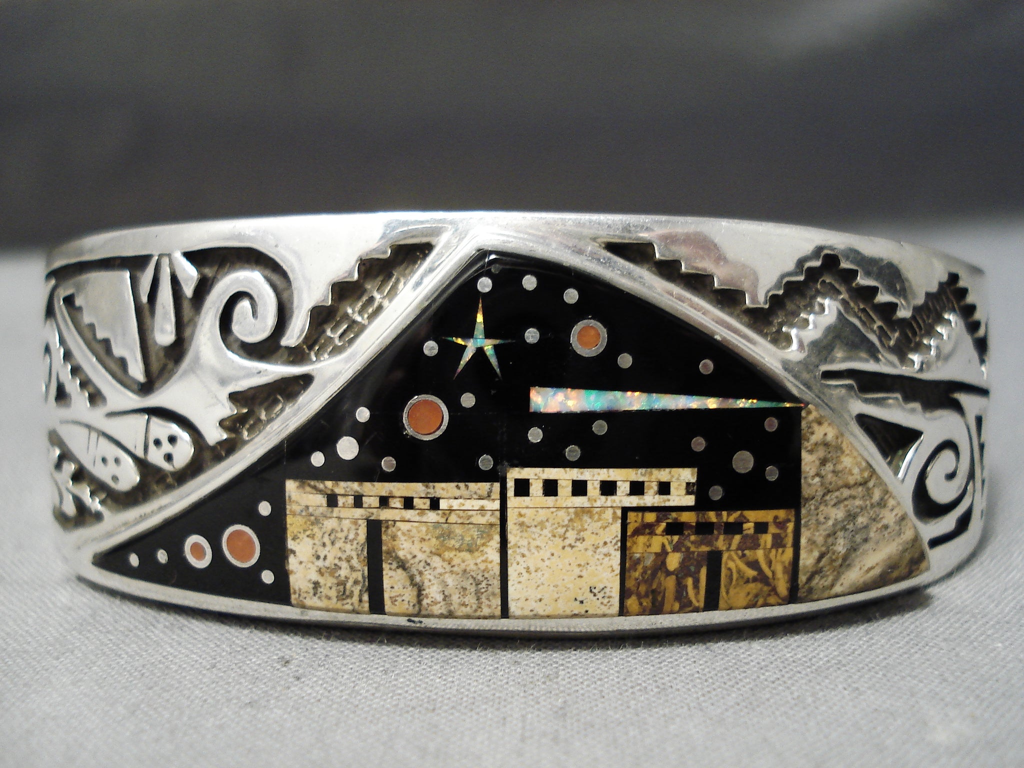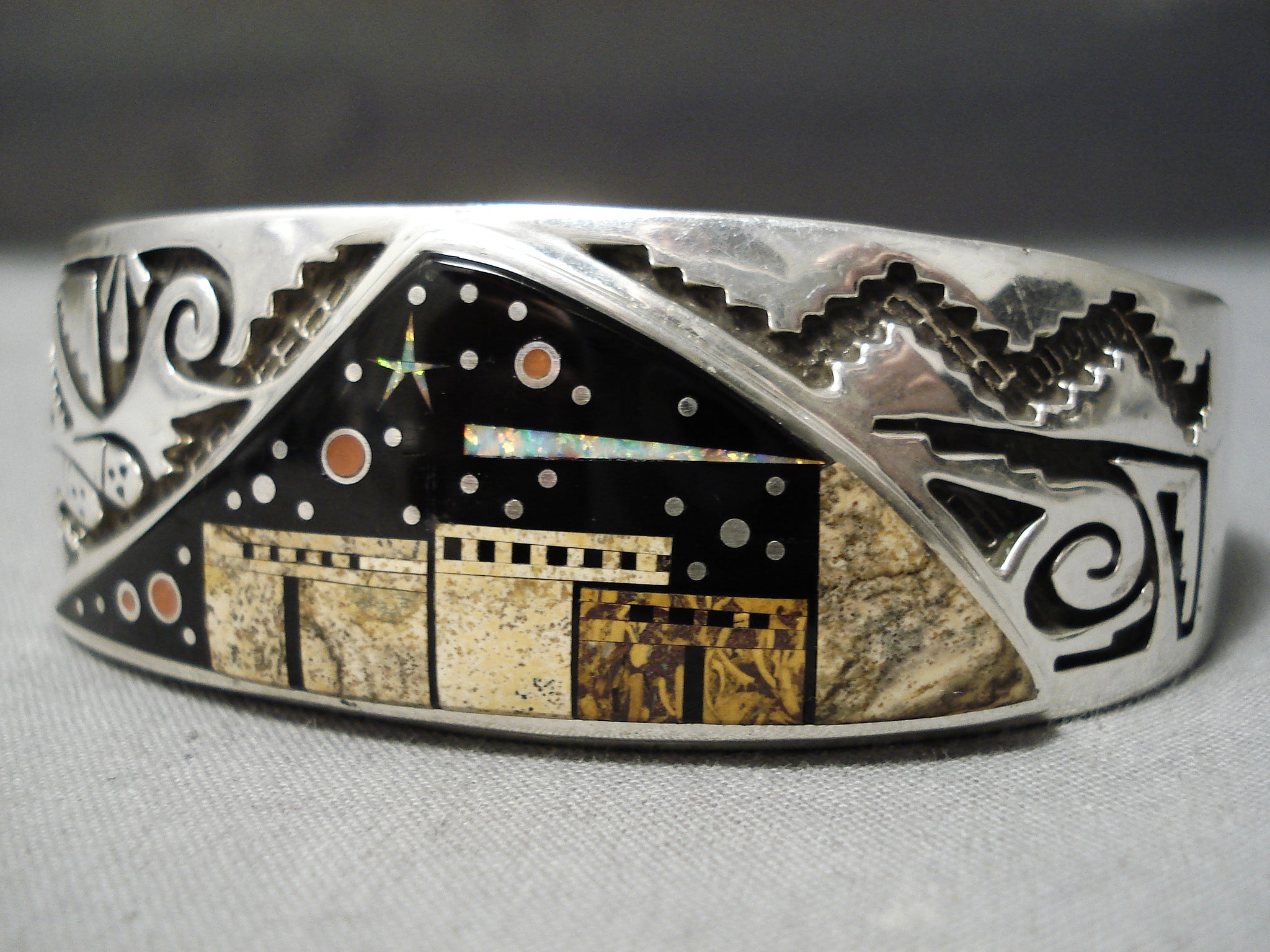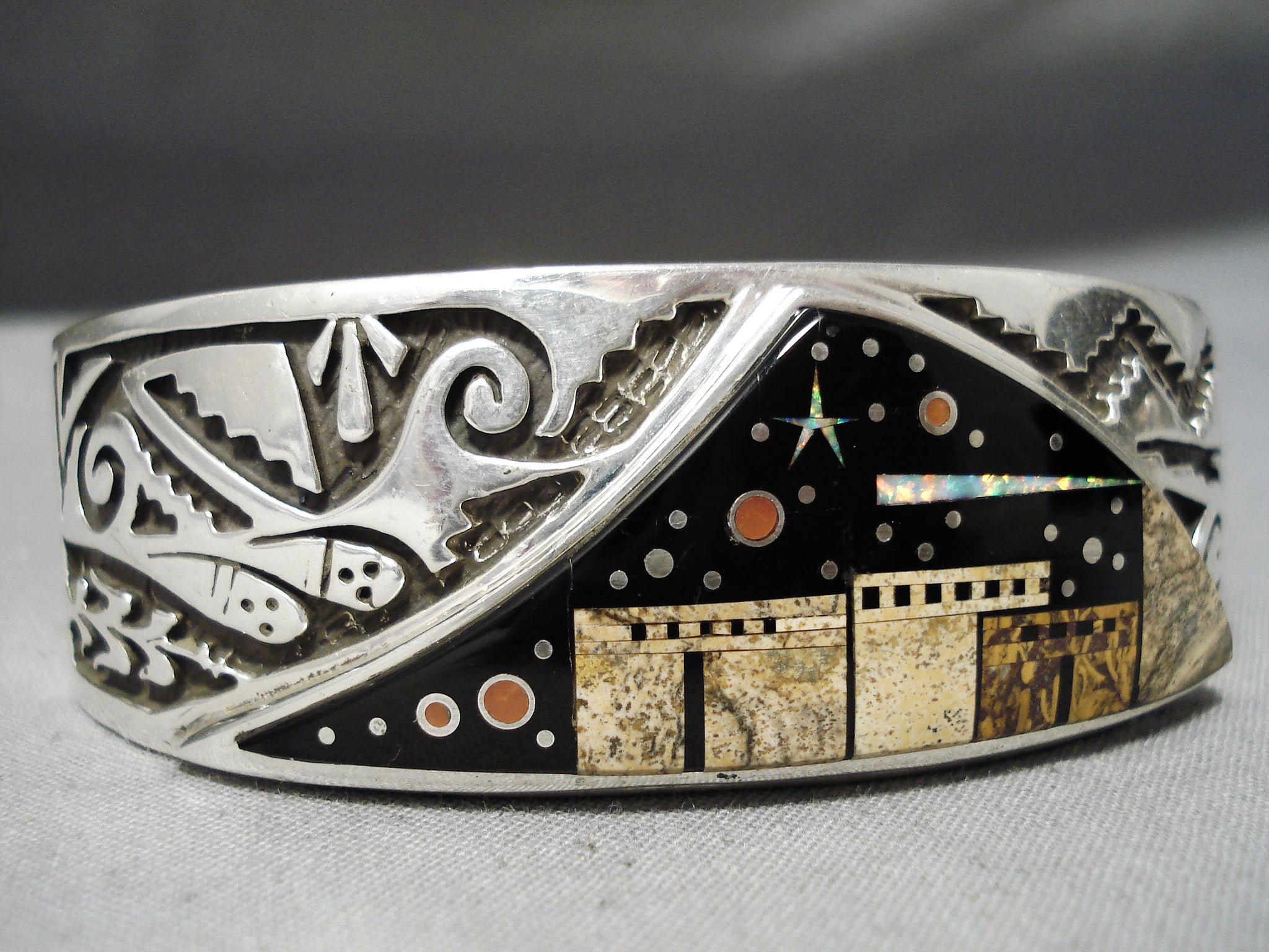 One Of The Most Unique Ever Native American Navajo Turquoise Sterling Silver Inlay Bracelet