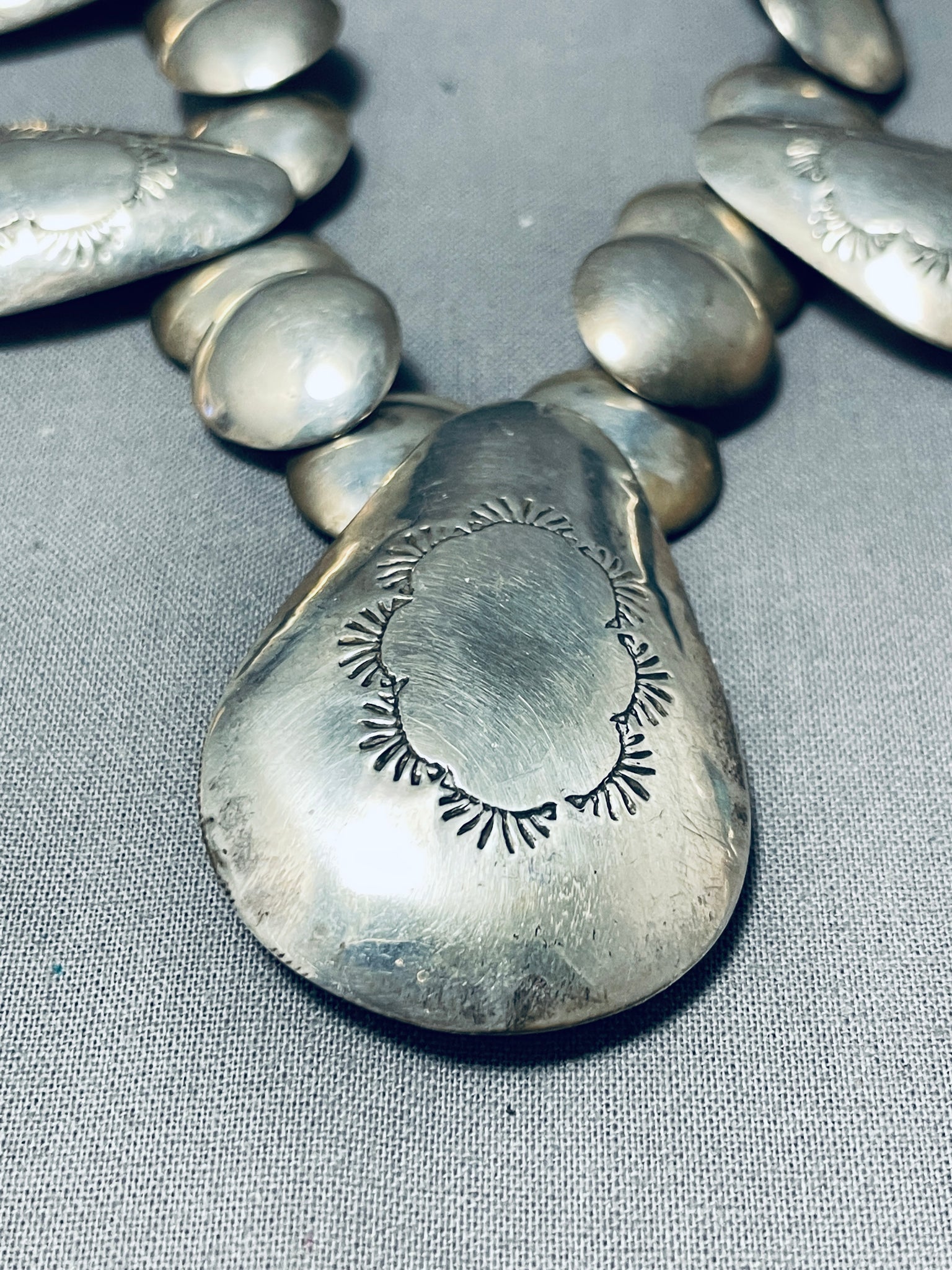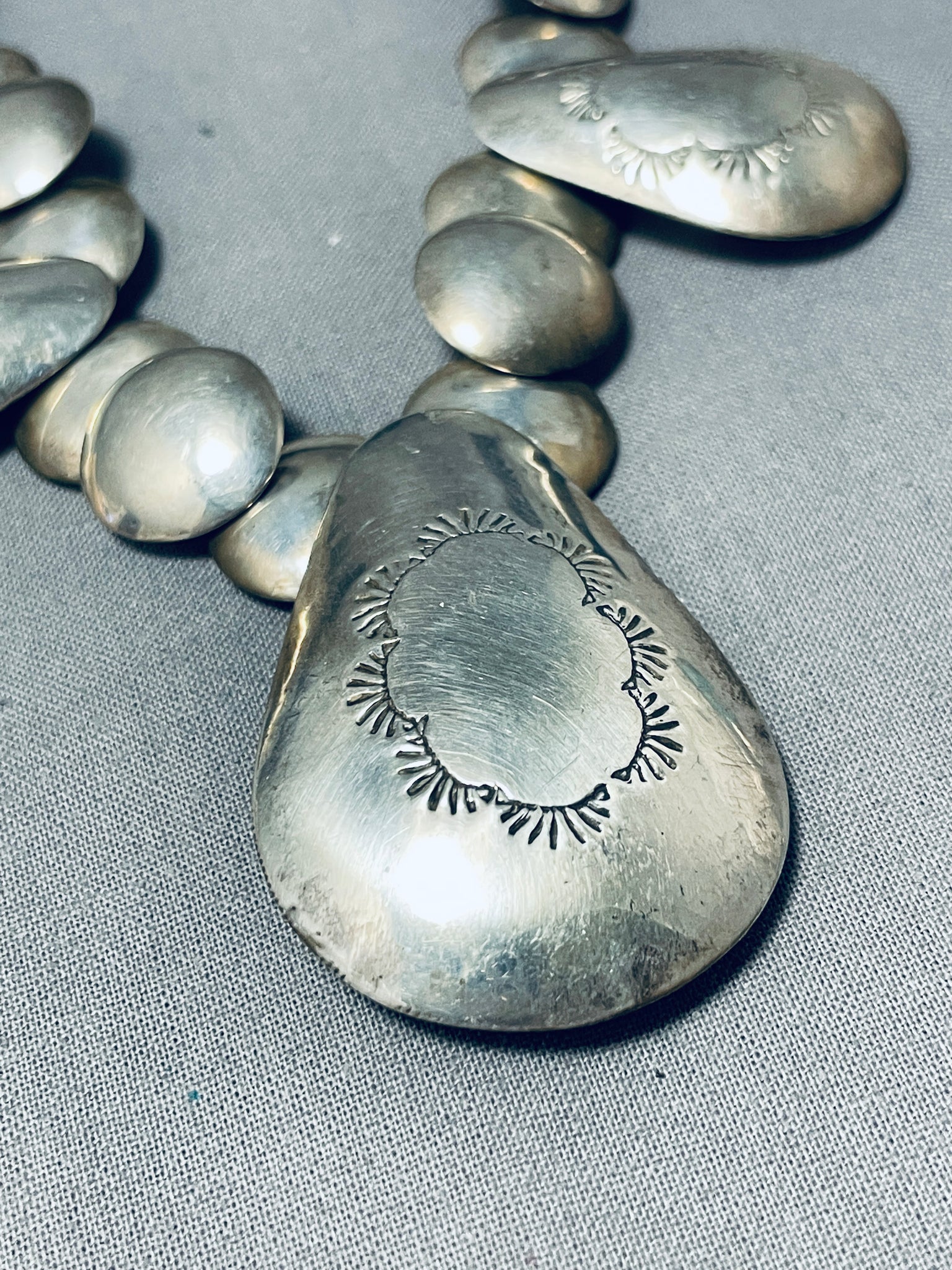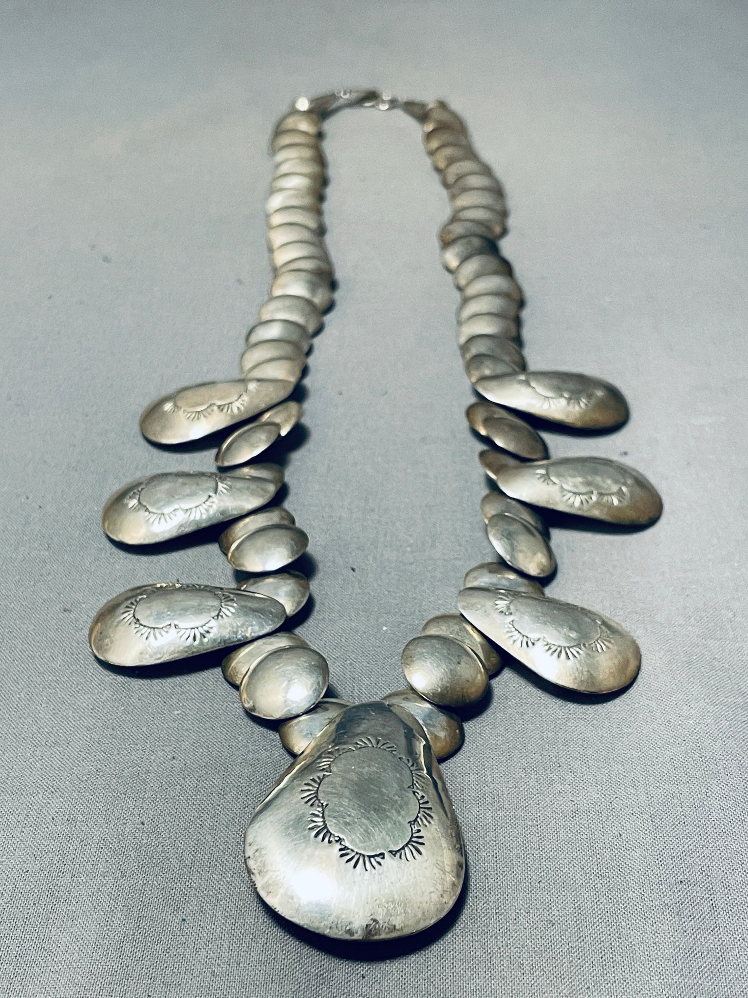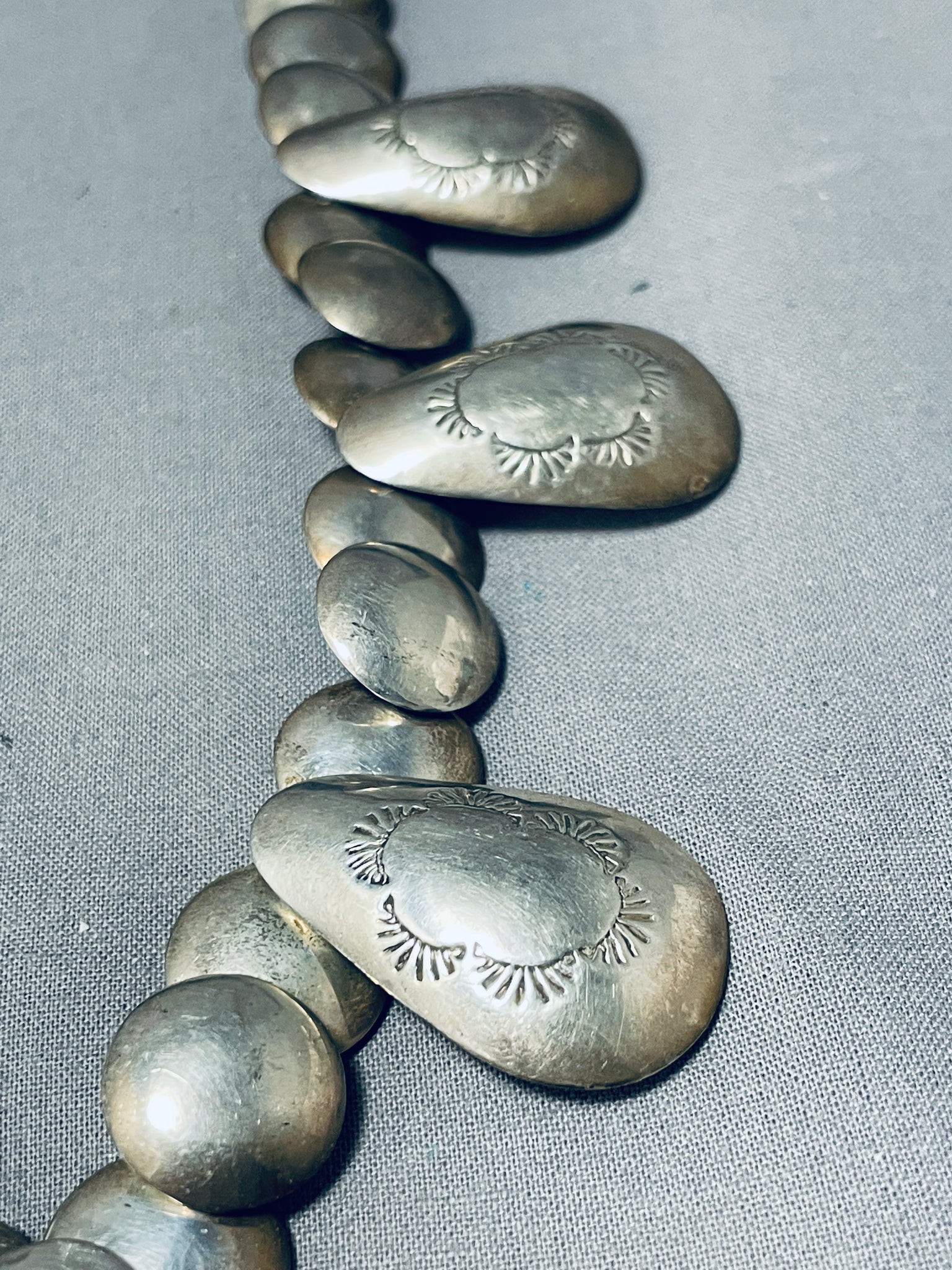 One Of The Most Unique Ever Vintage Native American Navajo Hand Tooled Sterling Silver Necklace