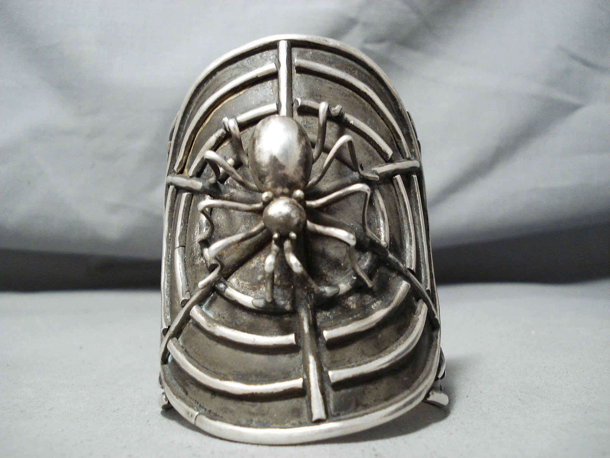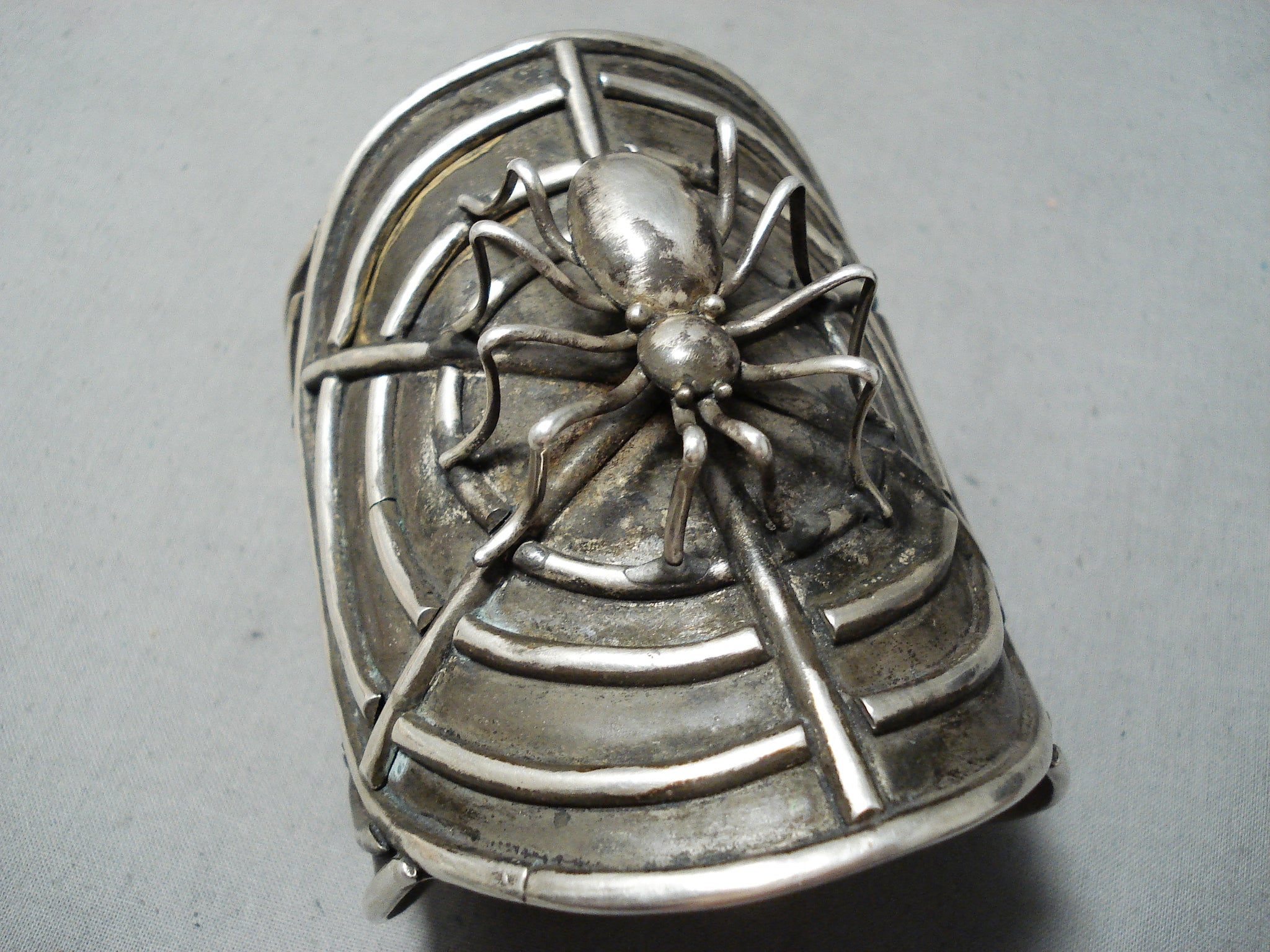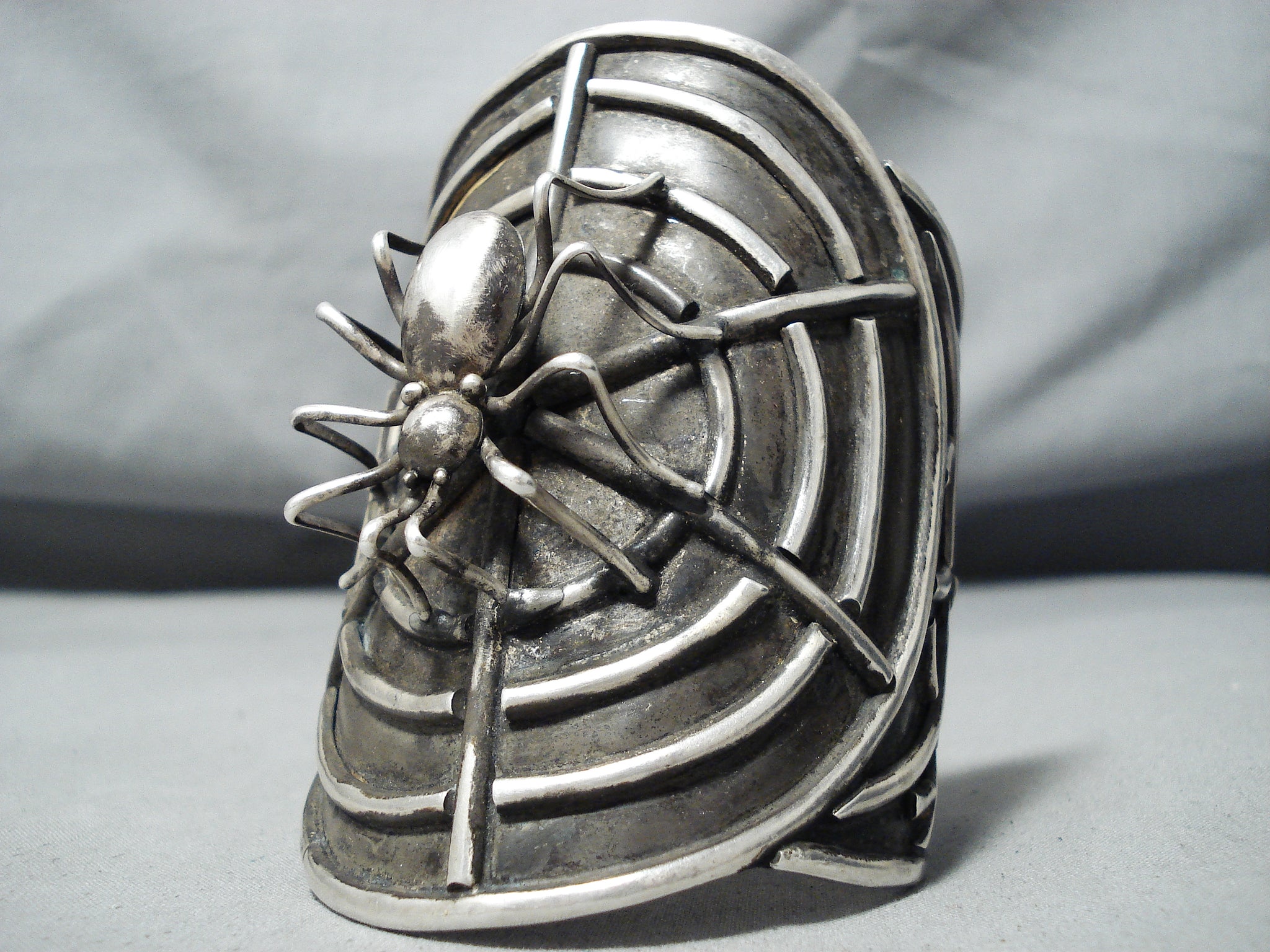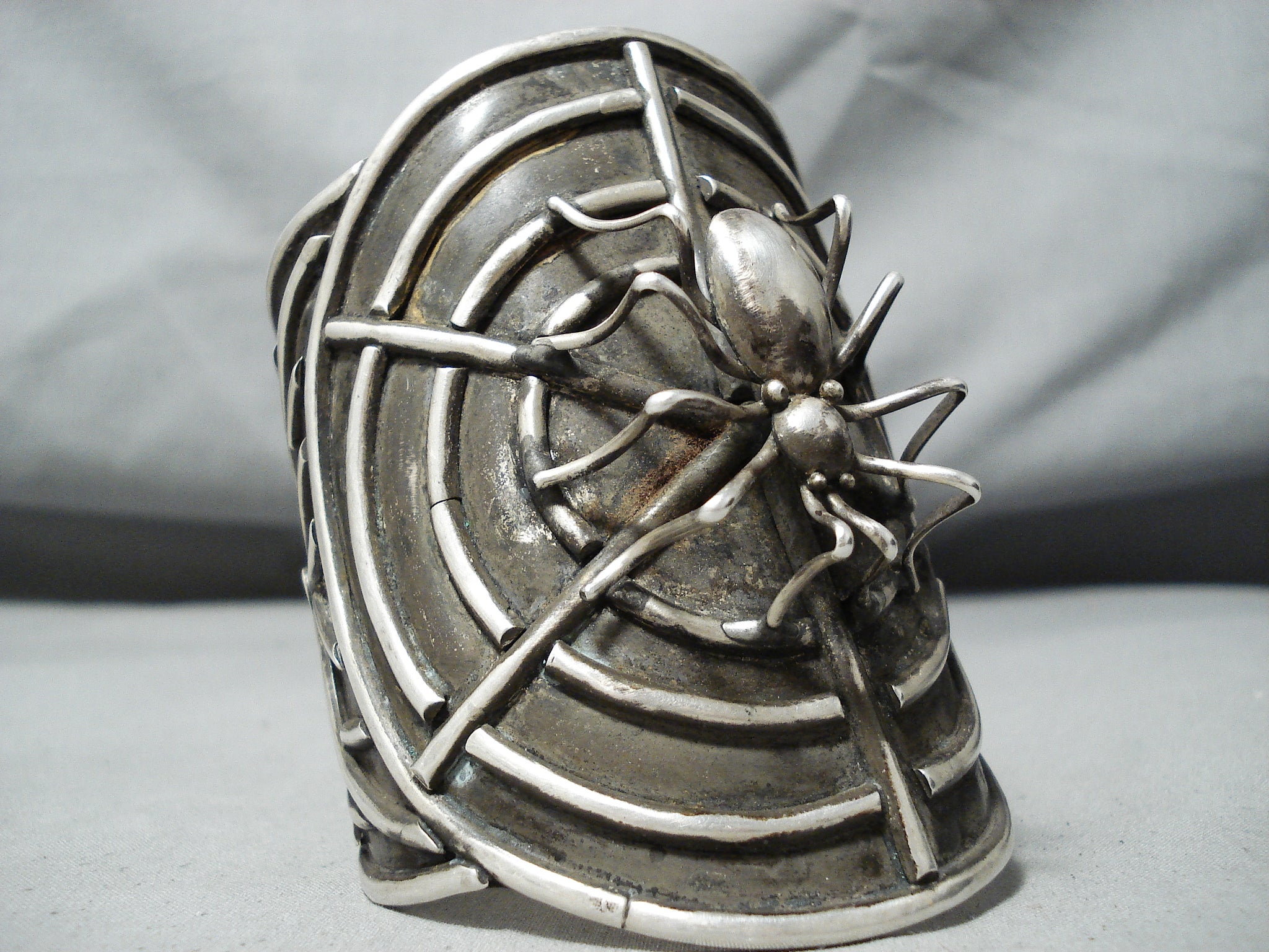 One Of The Most Unique Ever Vintage Native American Navajo Spider Sterling Silver Bracelet