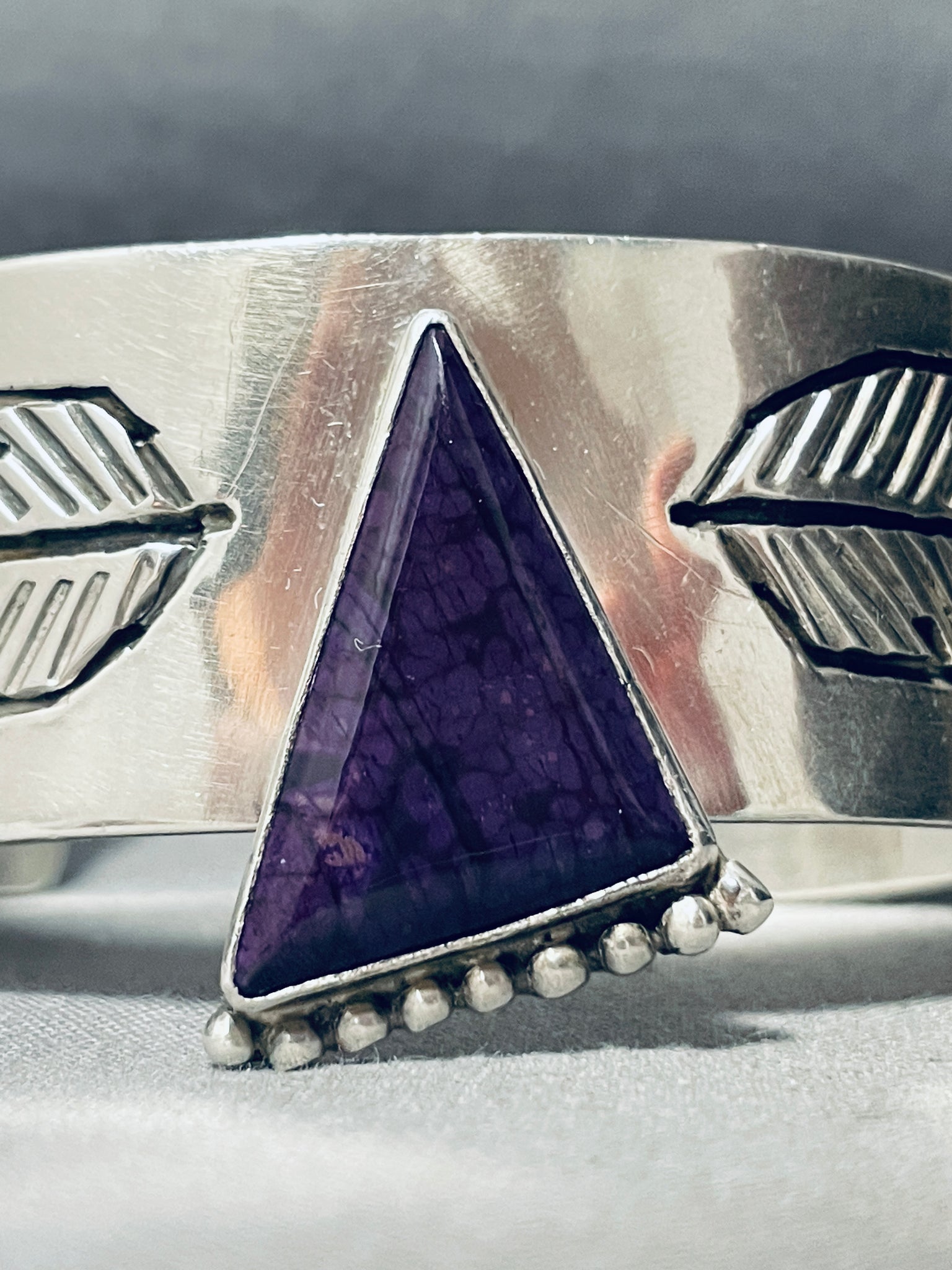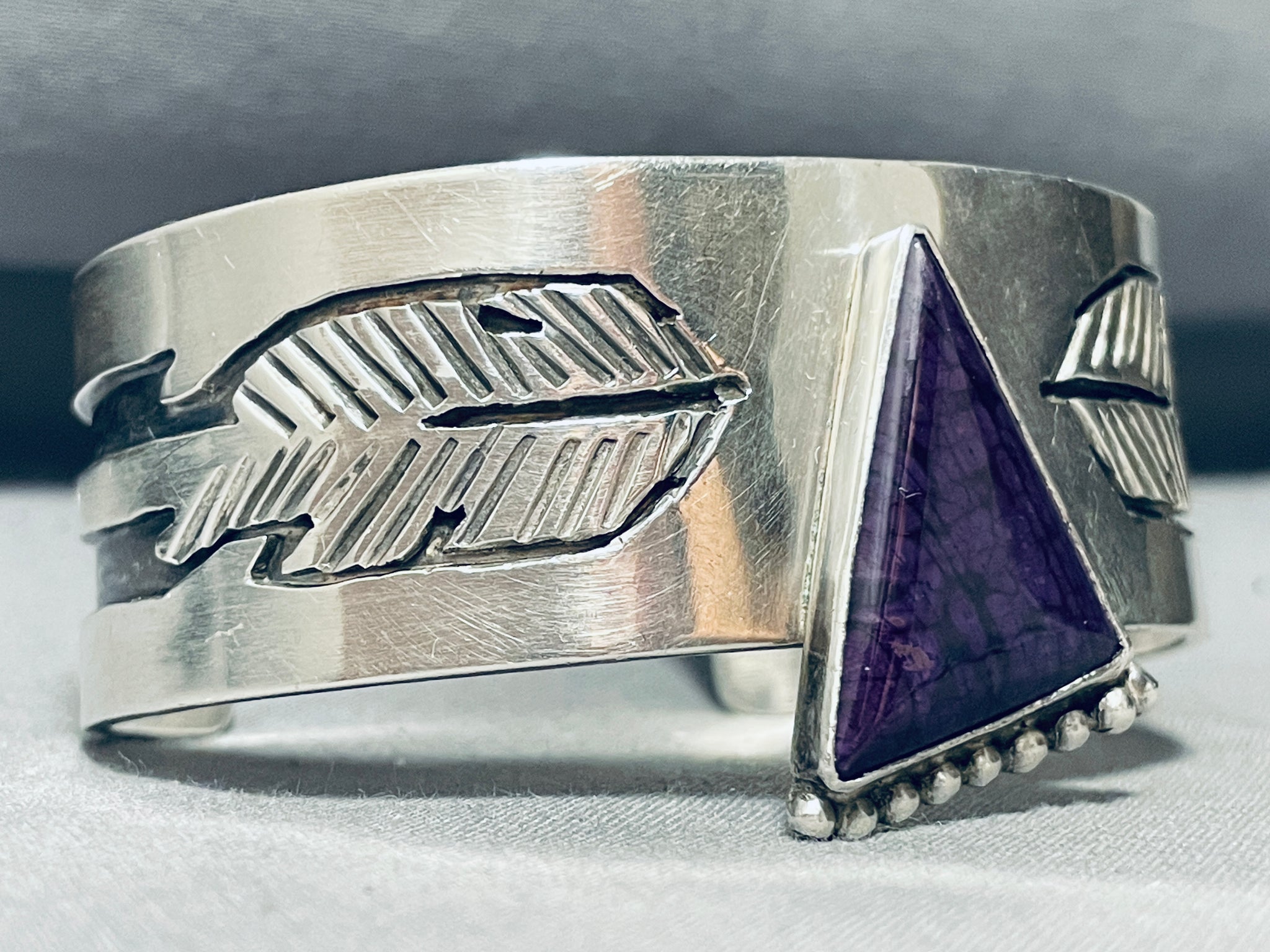 One Of The Most Unique Ever Vintage Native American Navajo Sugulite Sterling Silver Bracelet