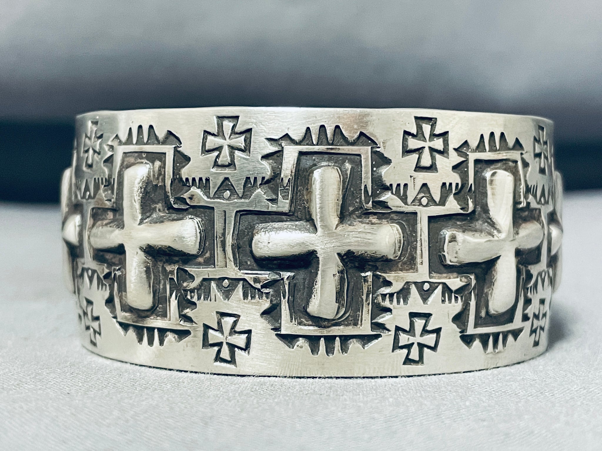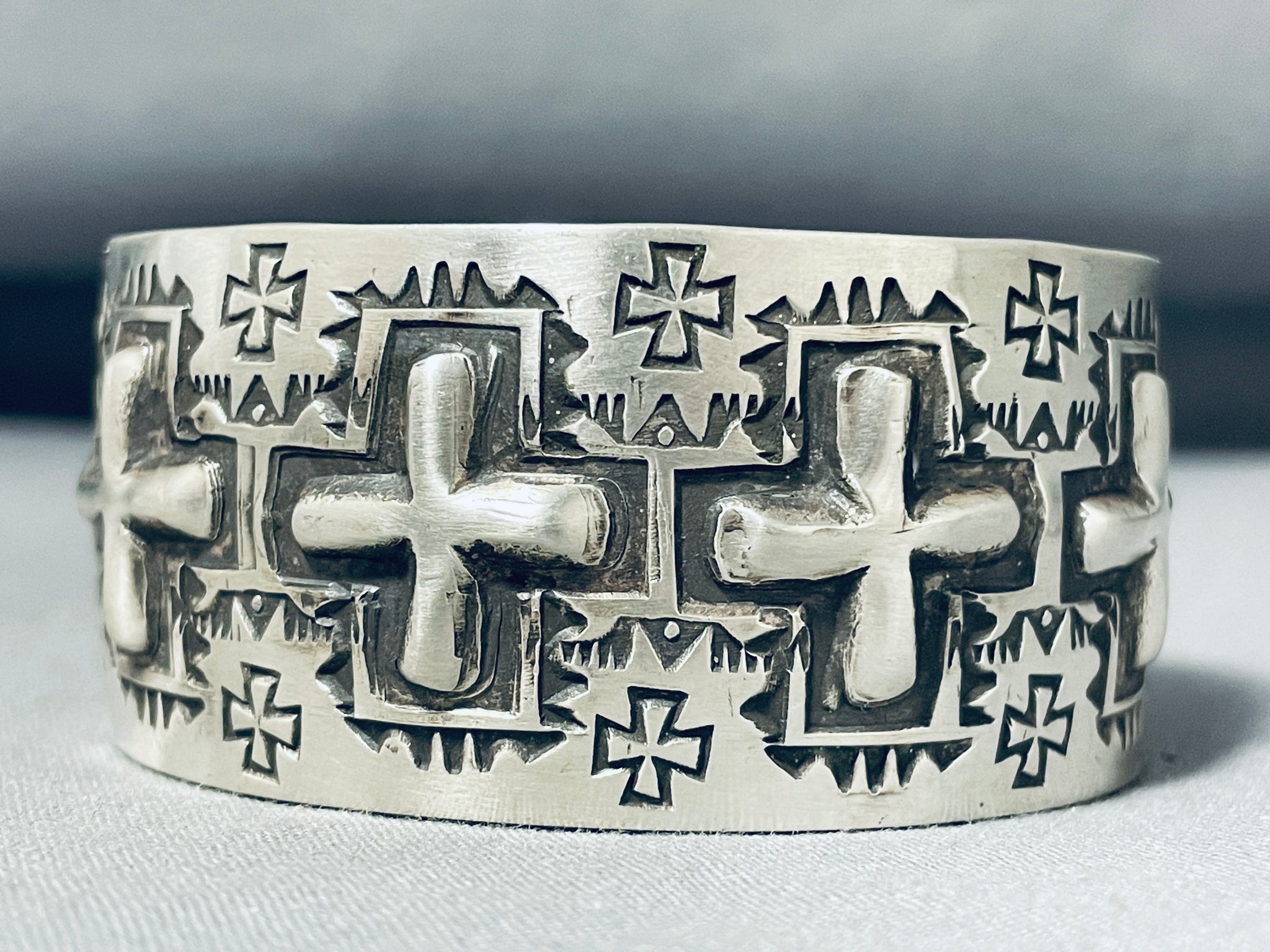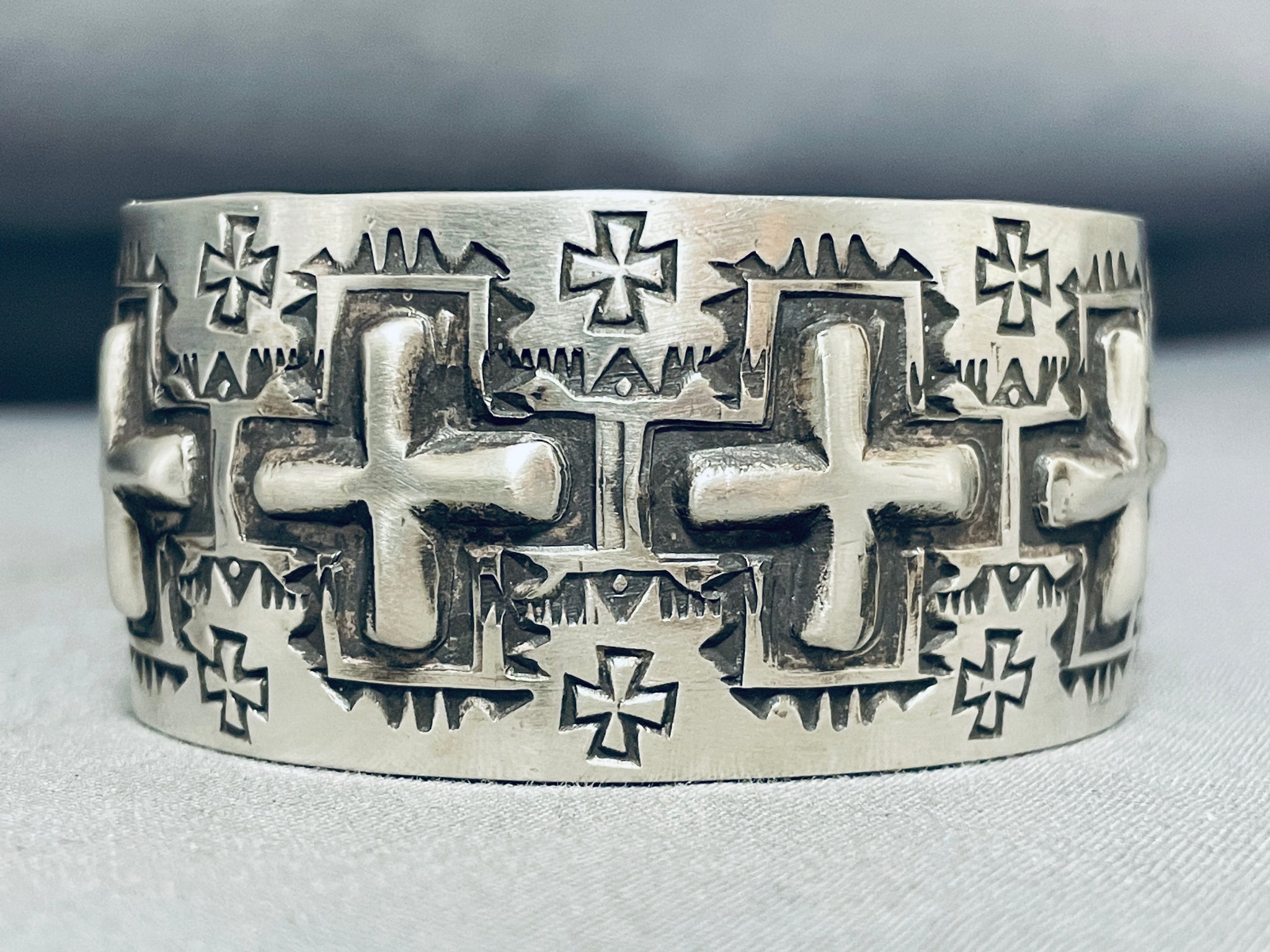 One Of The Most Unique Native American Navajo Cross Sterling Silver Bracelet