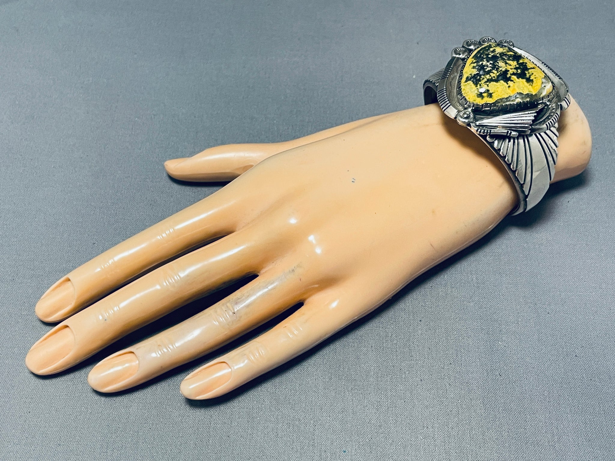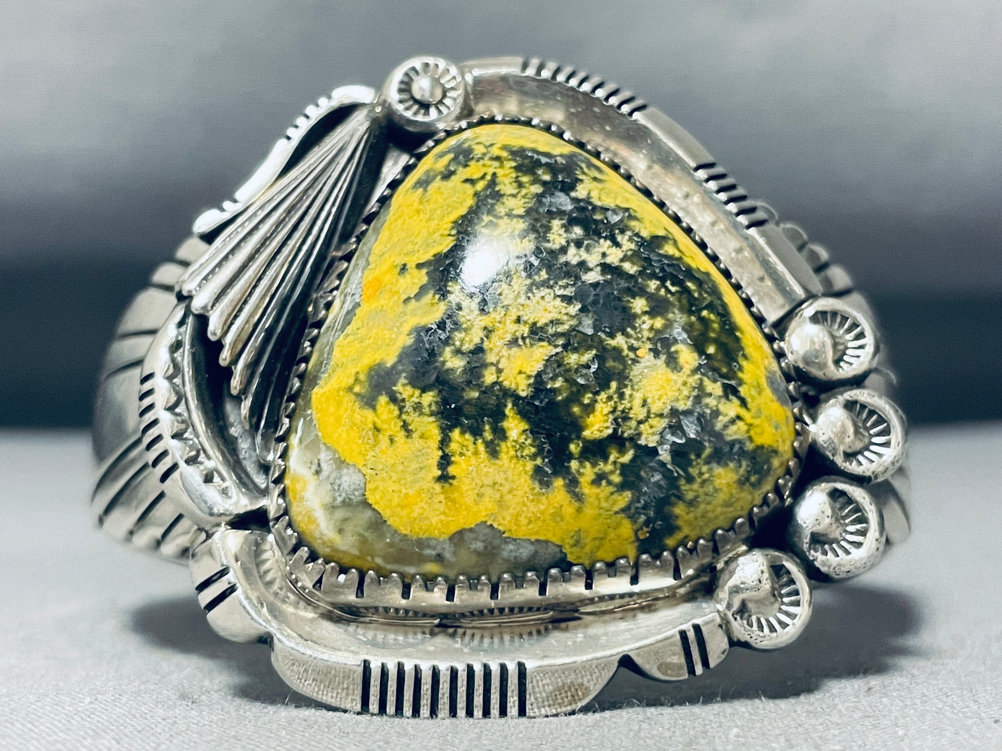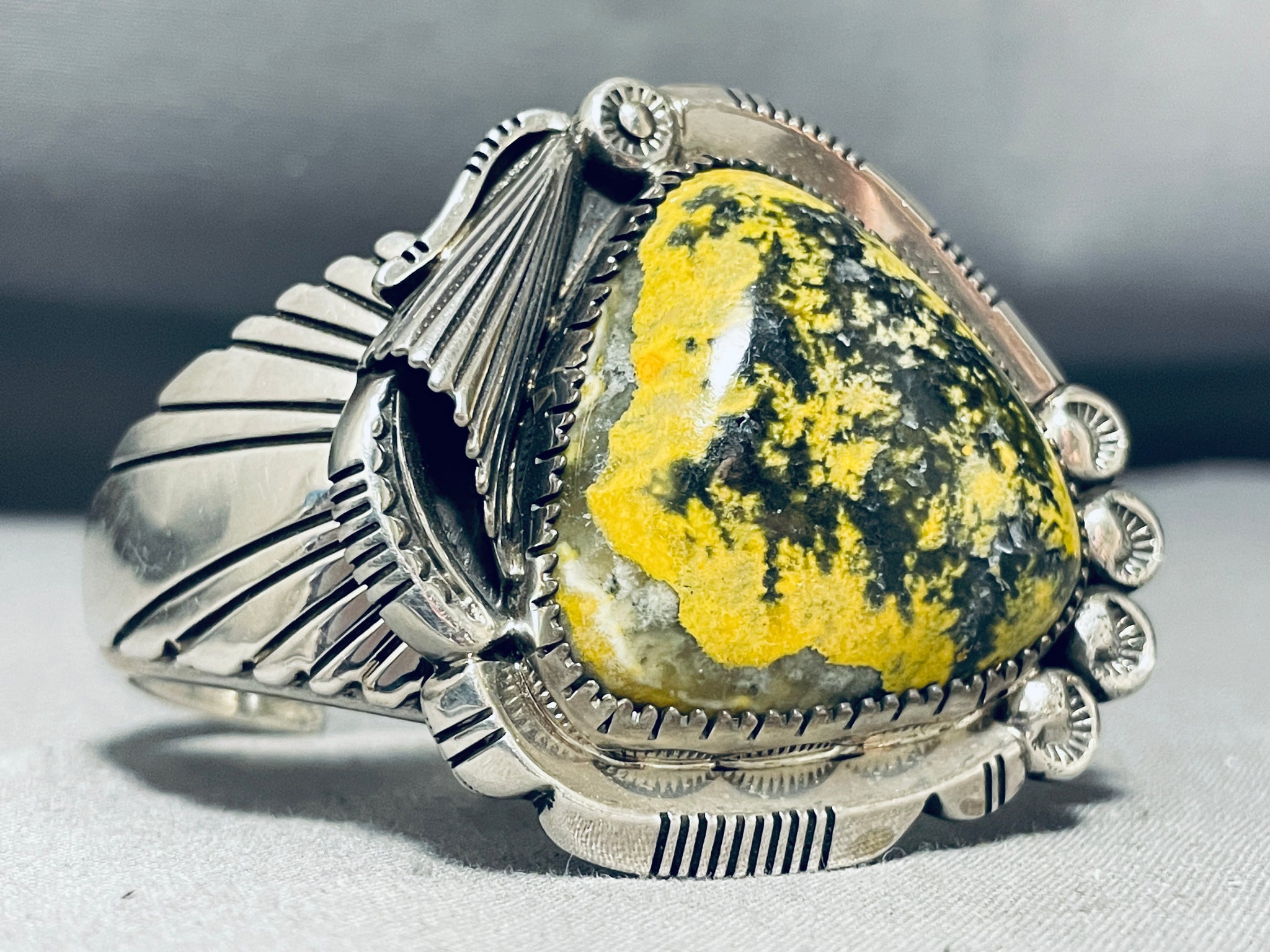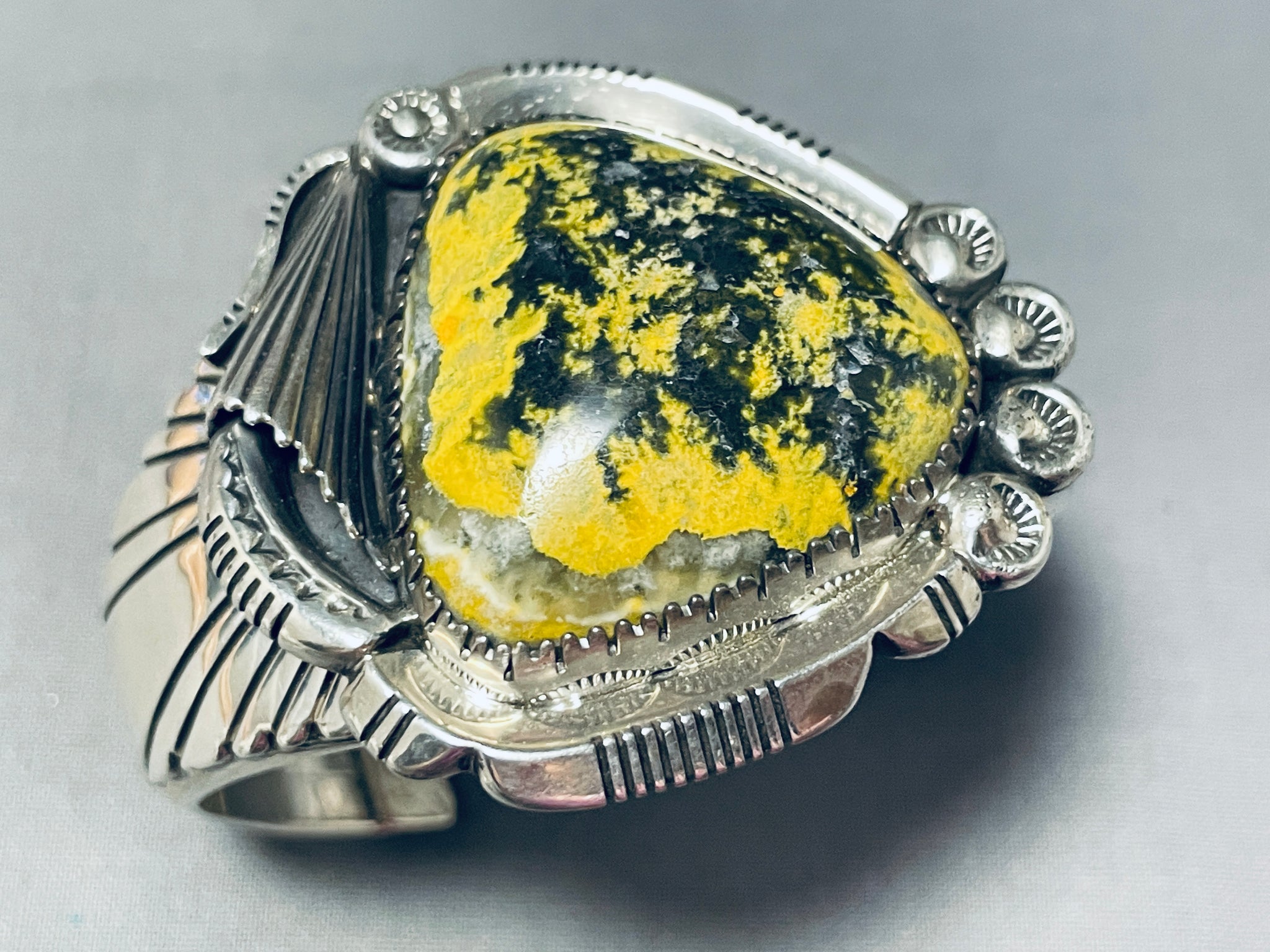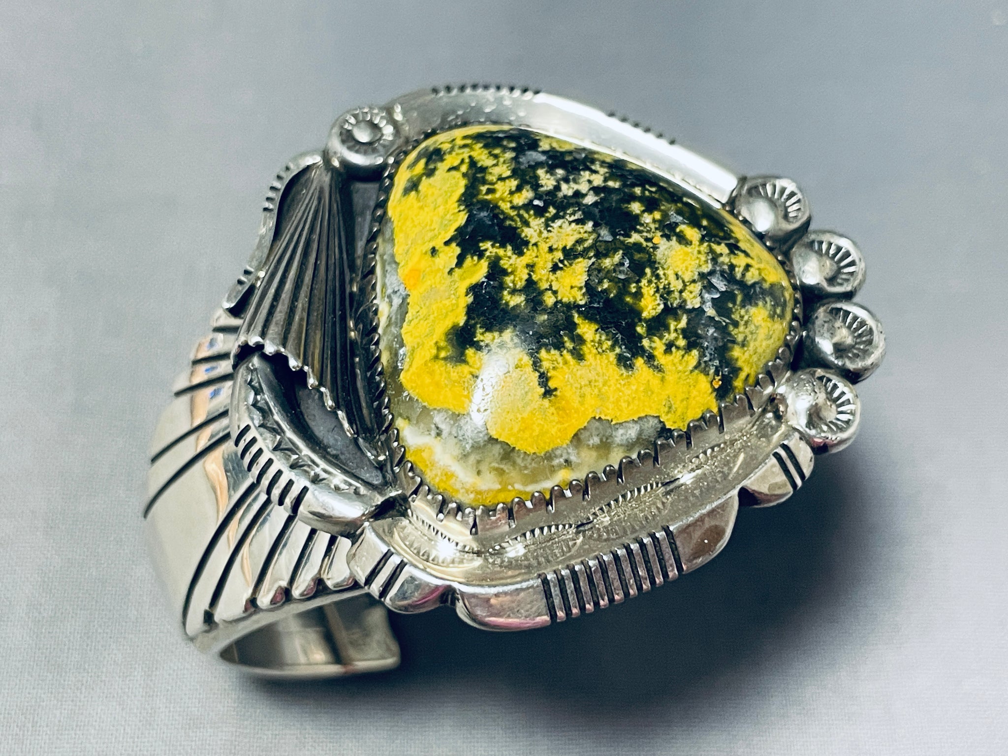 One Of The Most Unique Native American Navajo Honeybee Jasper Sterling Silver Bracelet