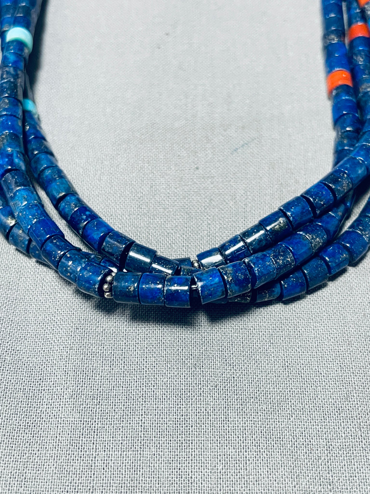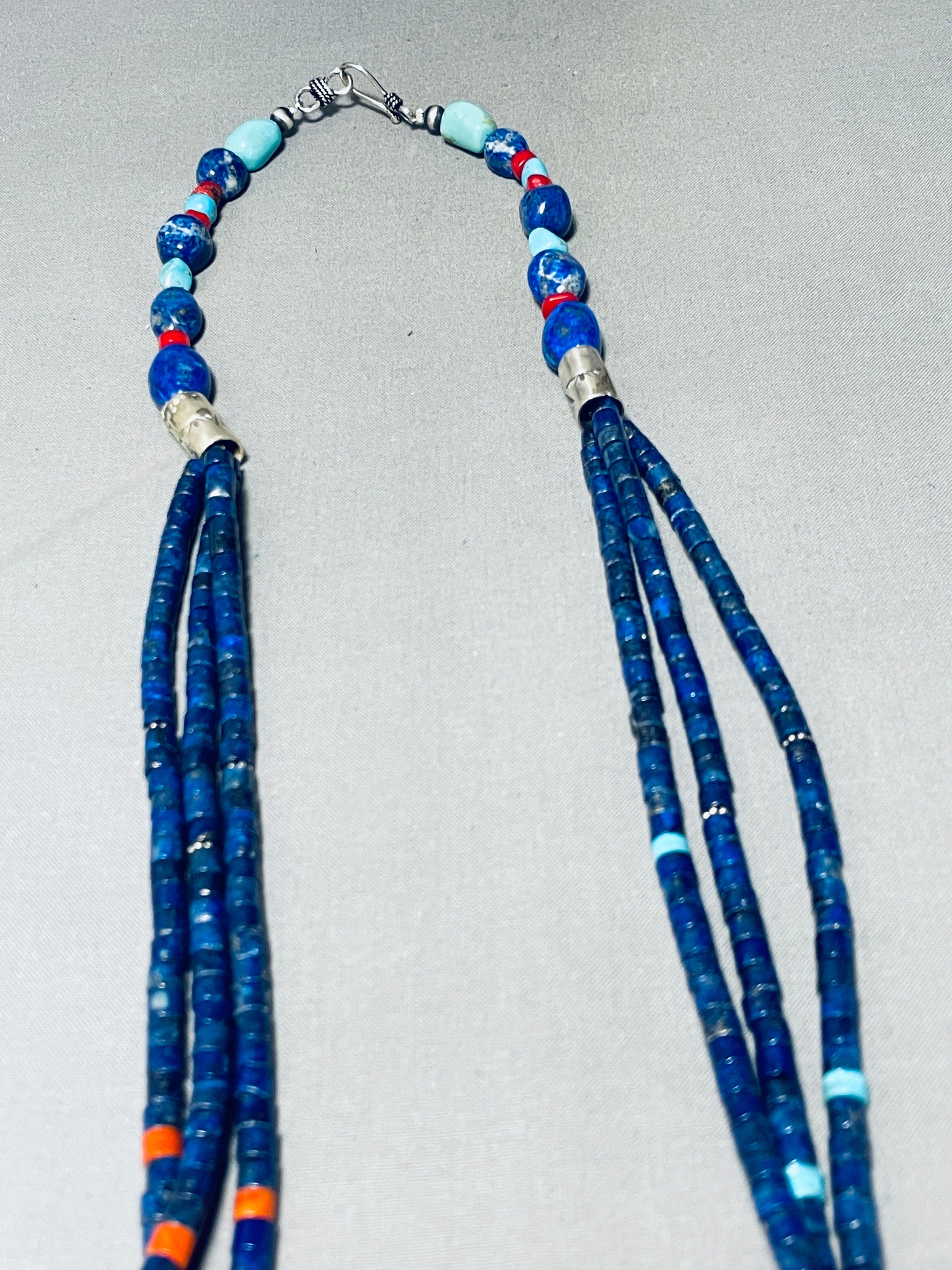 One Of The Most Unique Native American Navajo Lapis Turquoise Sterling Silver Necklace