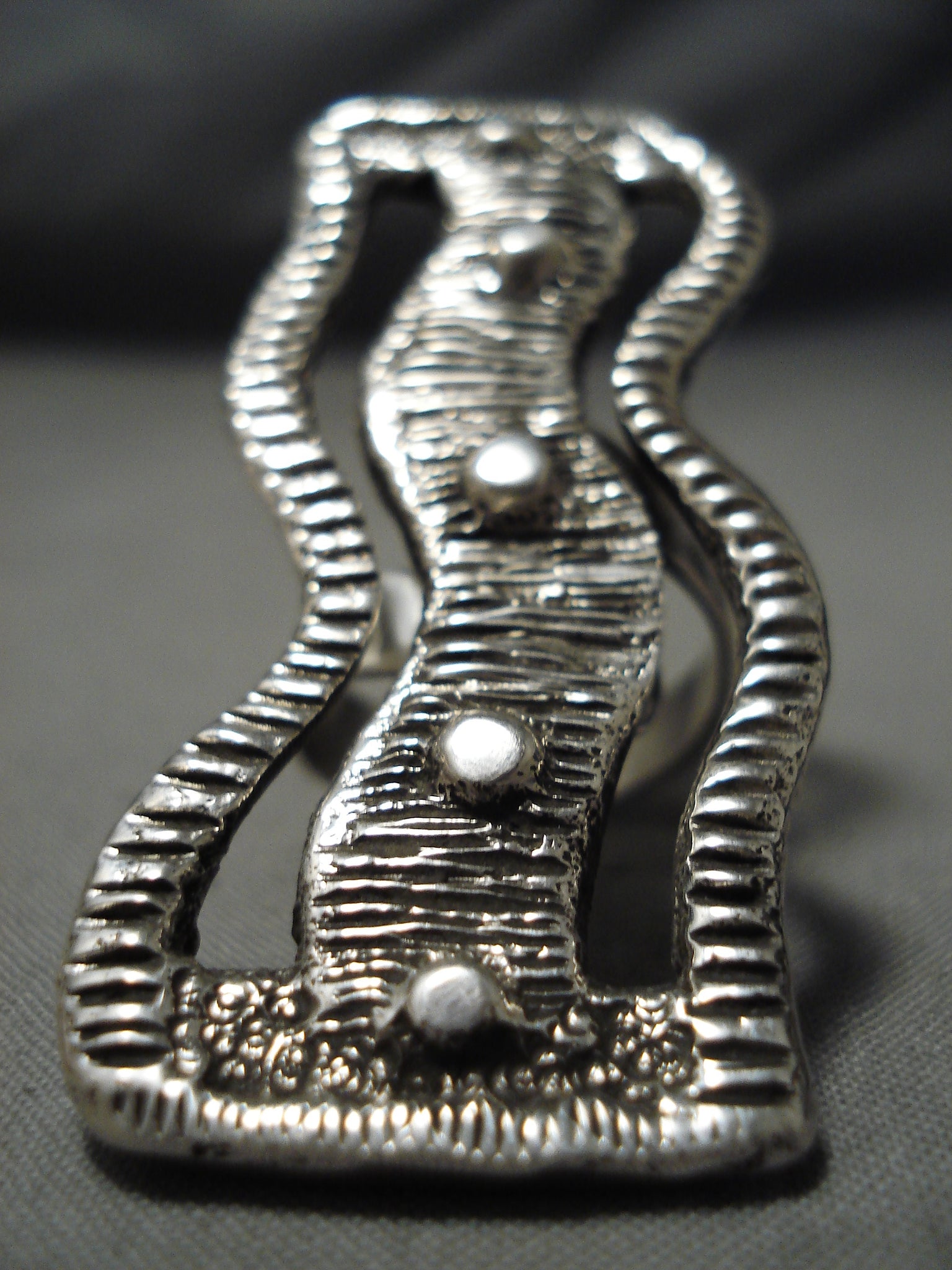 One Of The Most Unique Native American Navajo Sterling Silver Huge Ring!