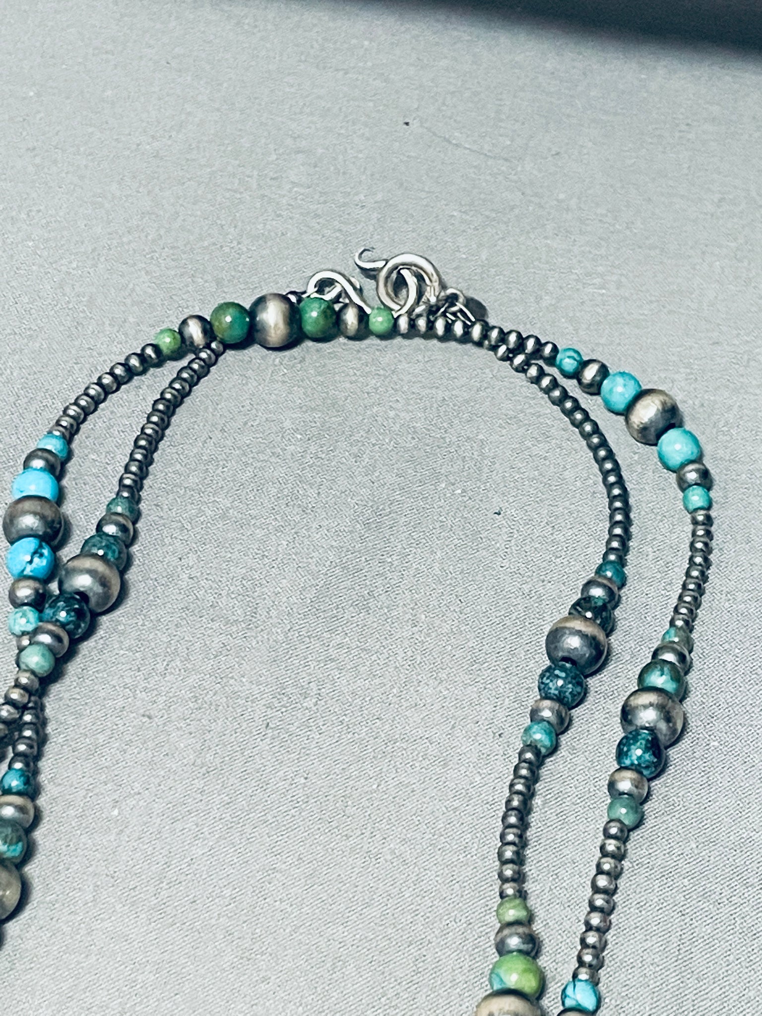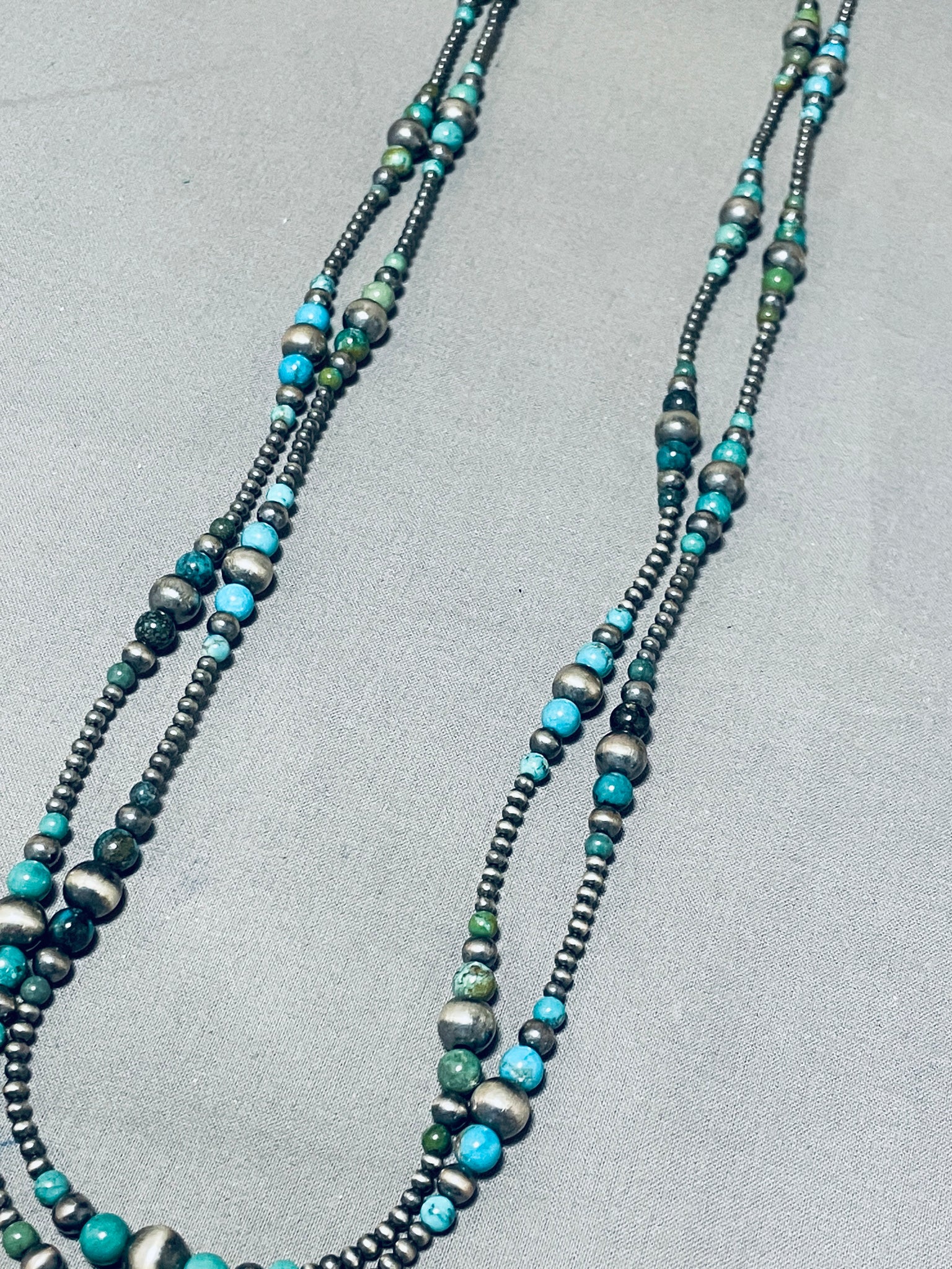 One Of The Most Unique Native American Navajo Turquoise Sterling Silver Long Necklace