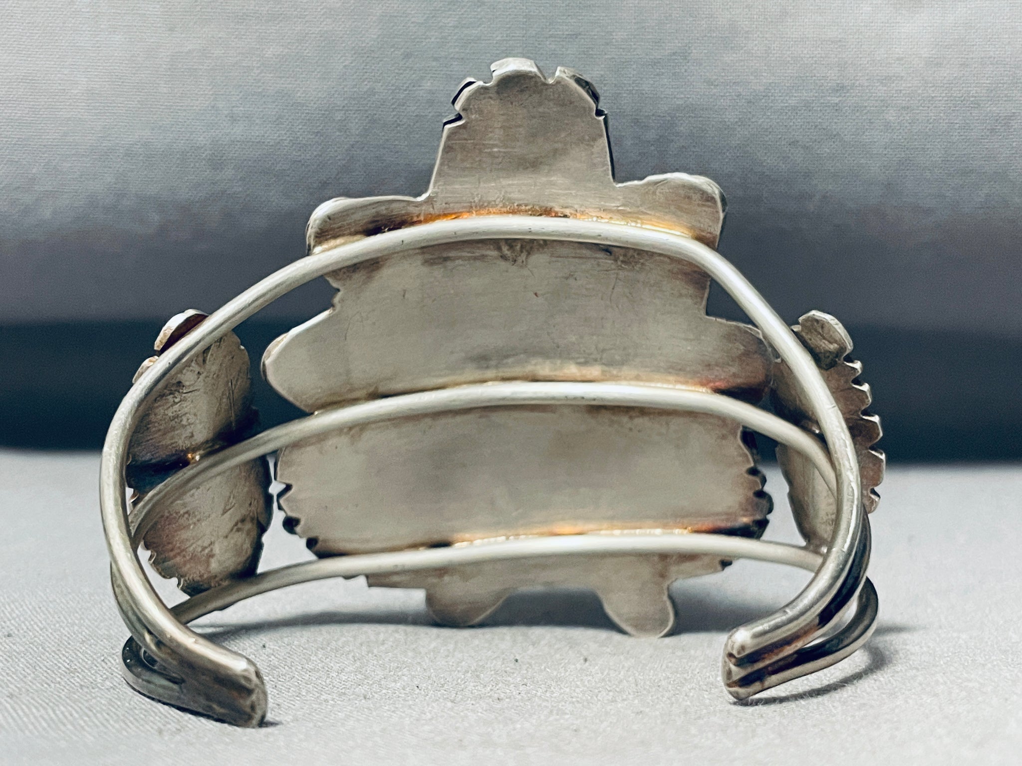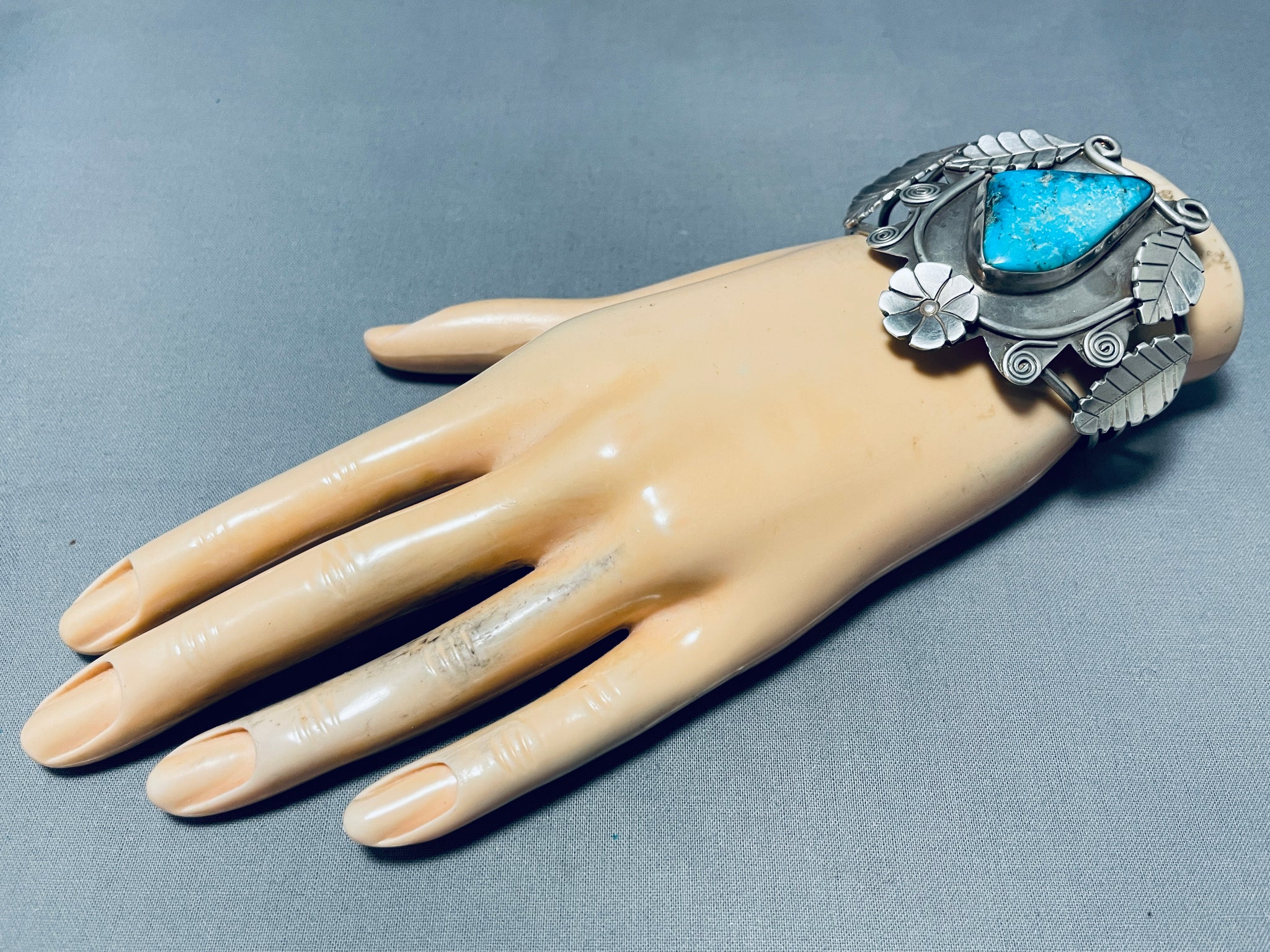 One Of The Most Unique Vintage Native American Navajo Leaf Sterling Silver Turquoise Bracelet