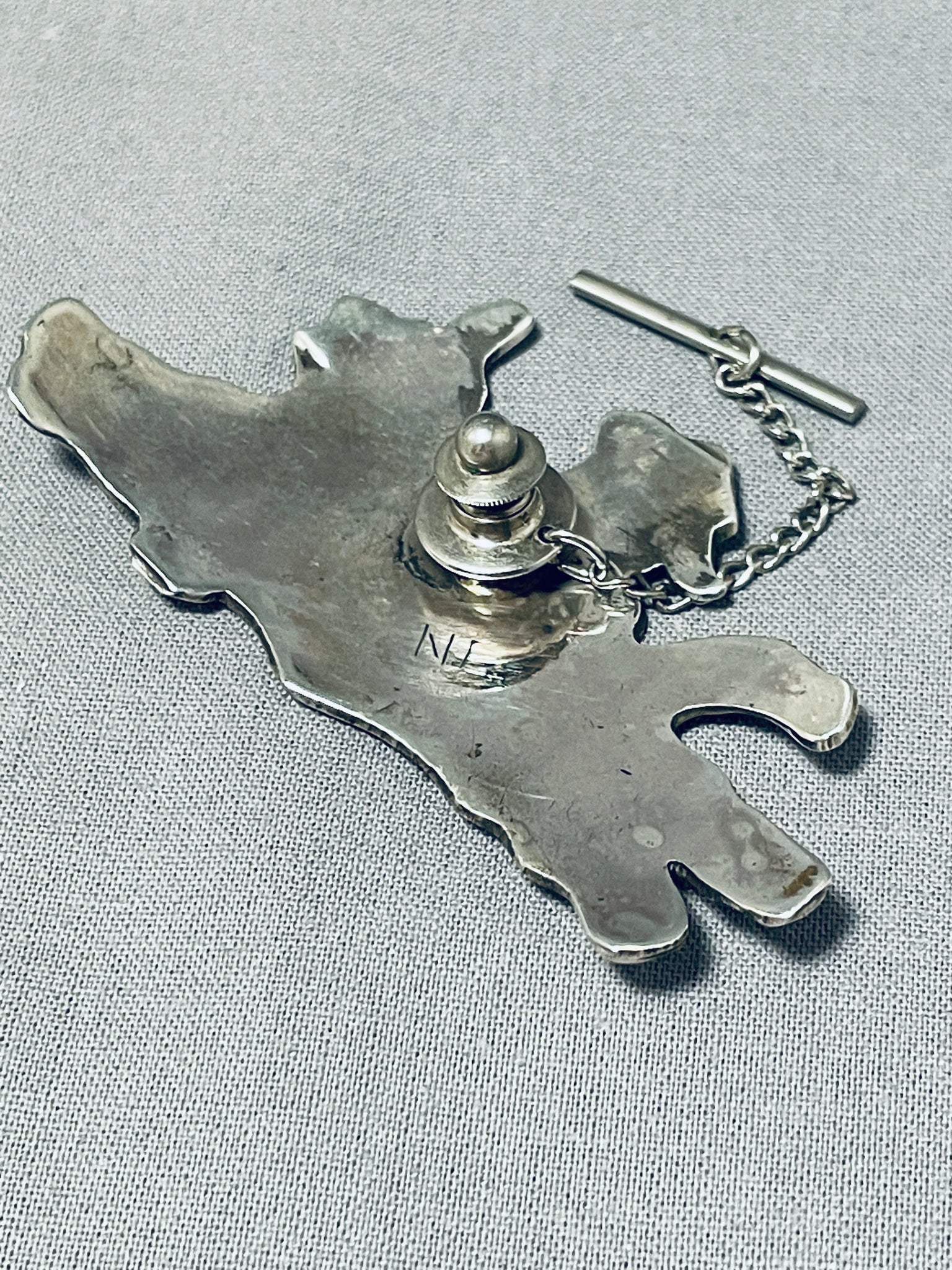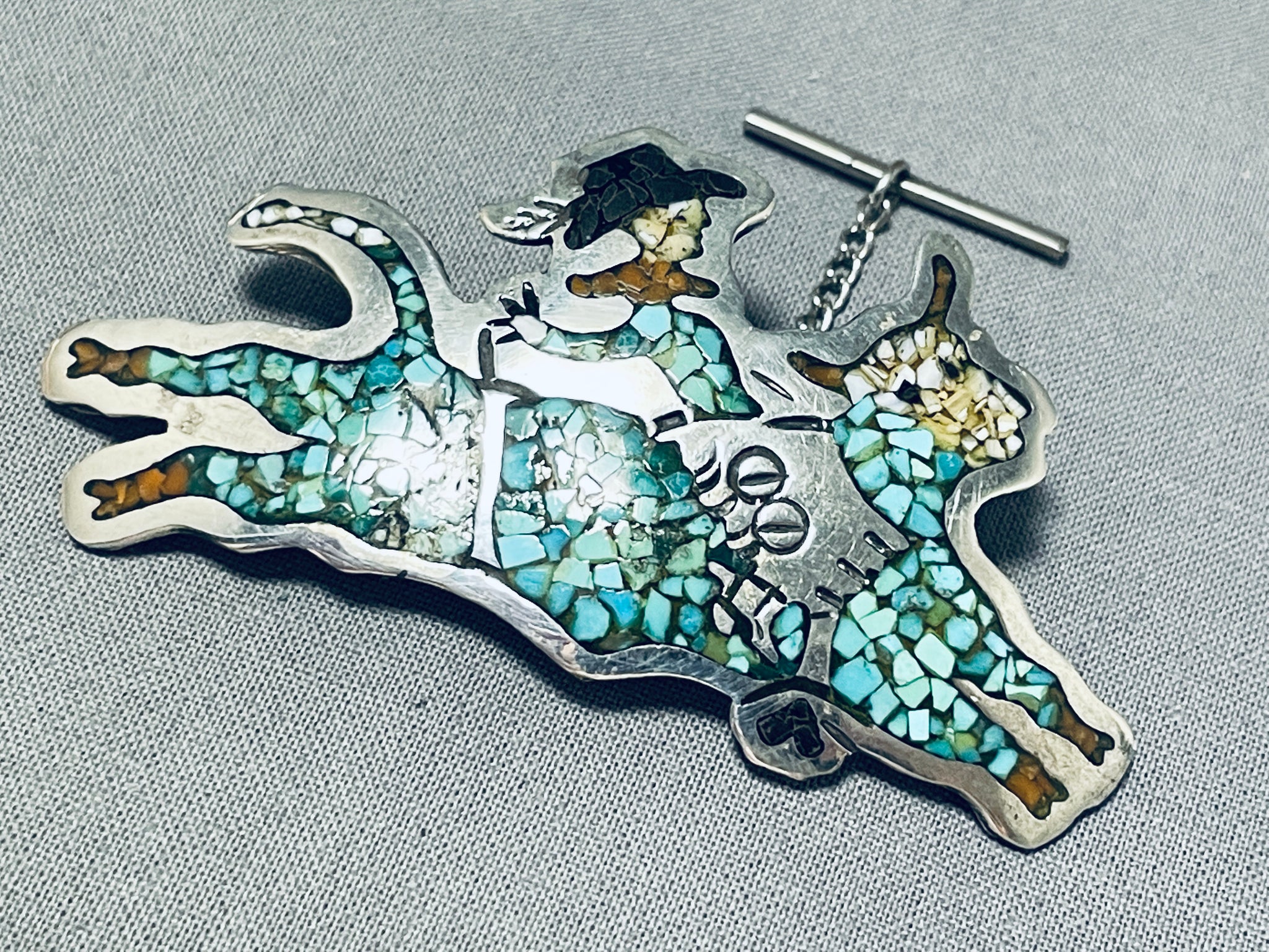One Of The Most Unique Vintage Native American Navajo Rodeo Turquoise Sterling Silver Pin