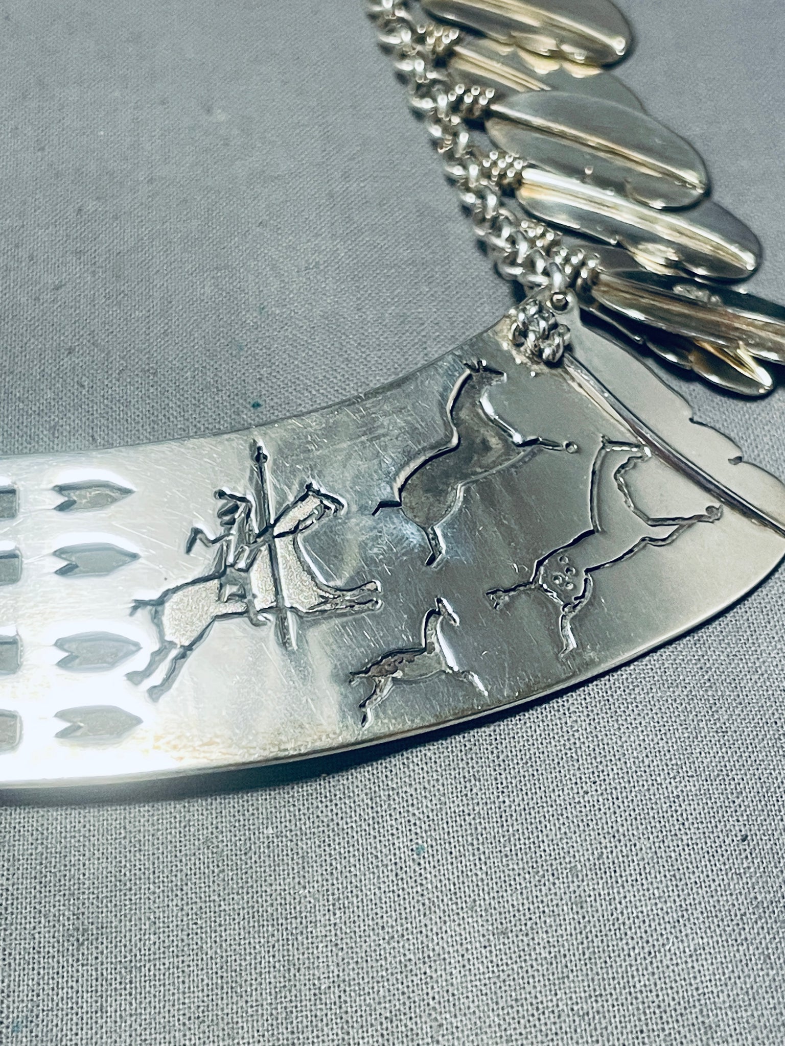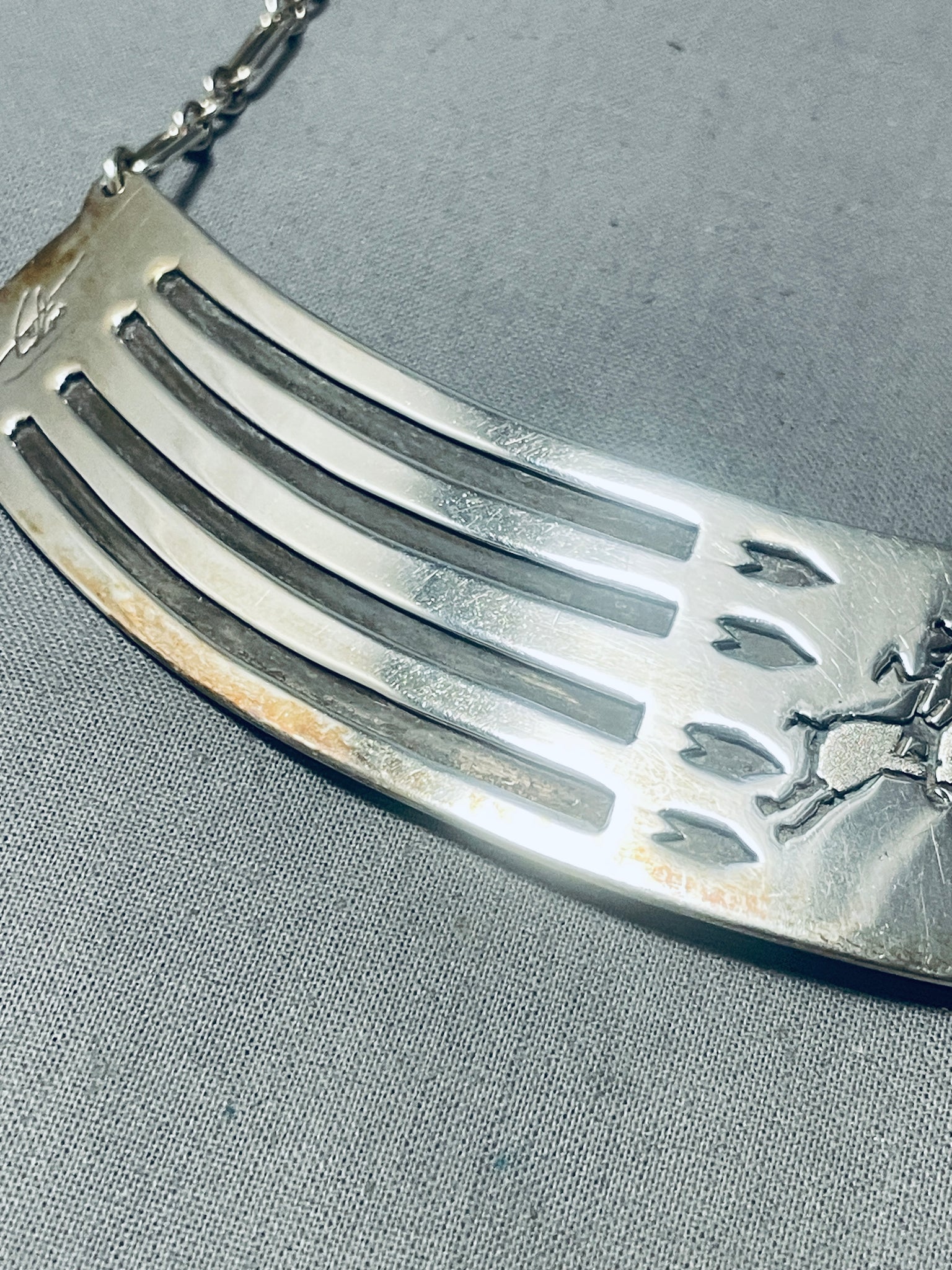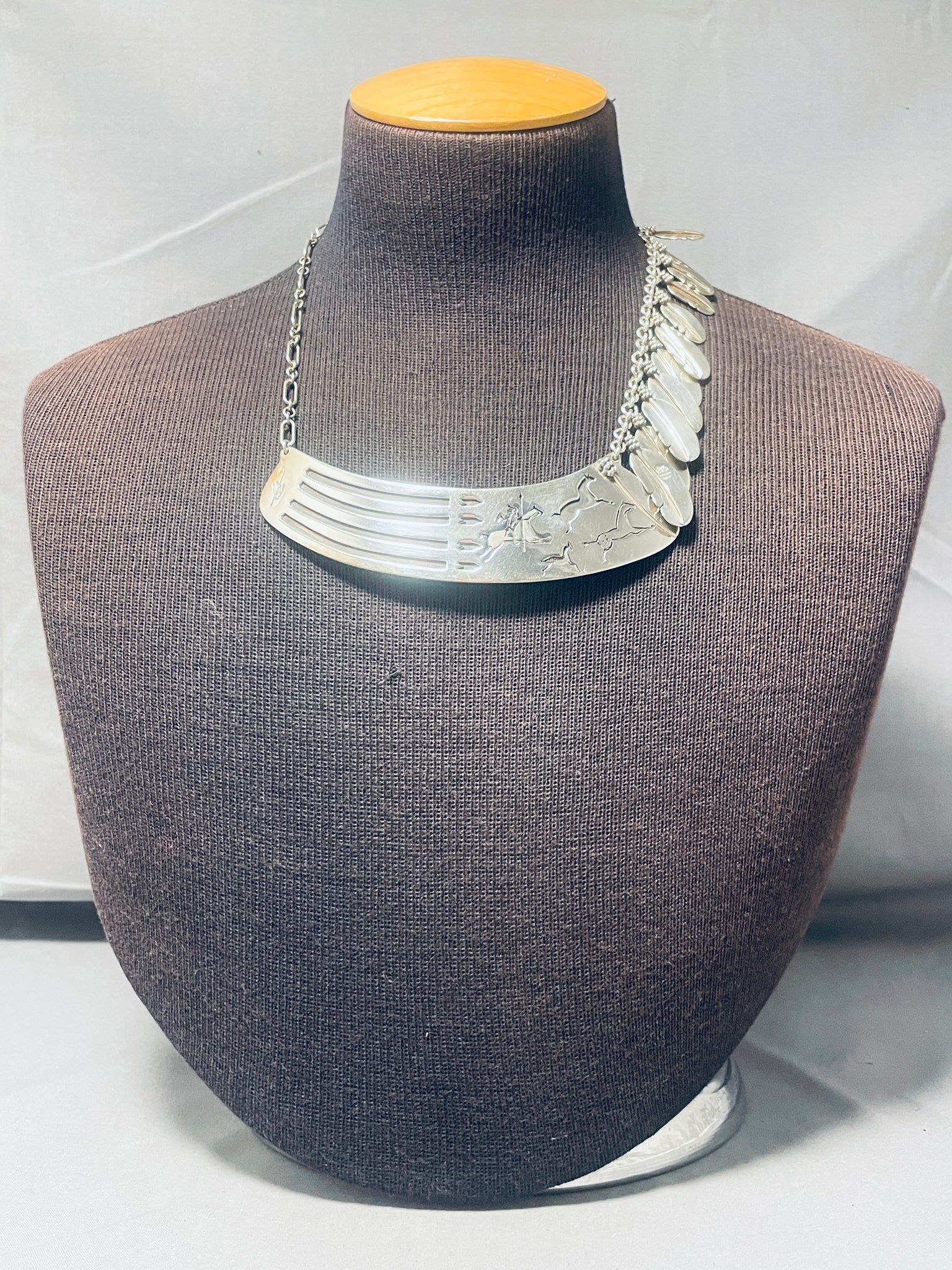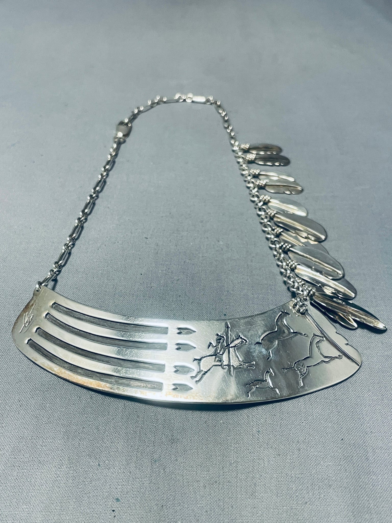 One Of The Most Unique Vintage Native American Navajo Sterling Silver Necklace