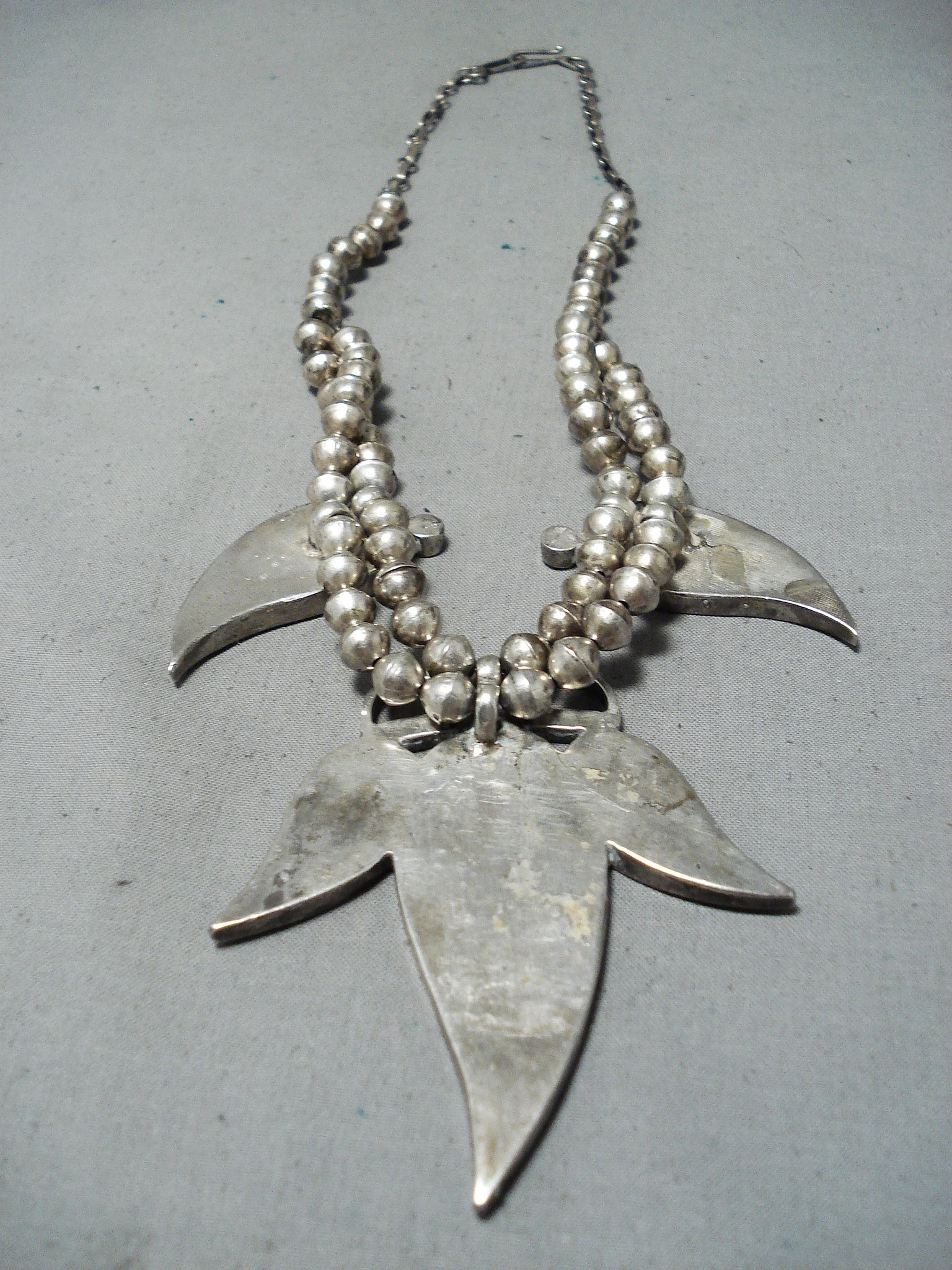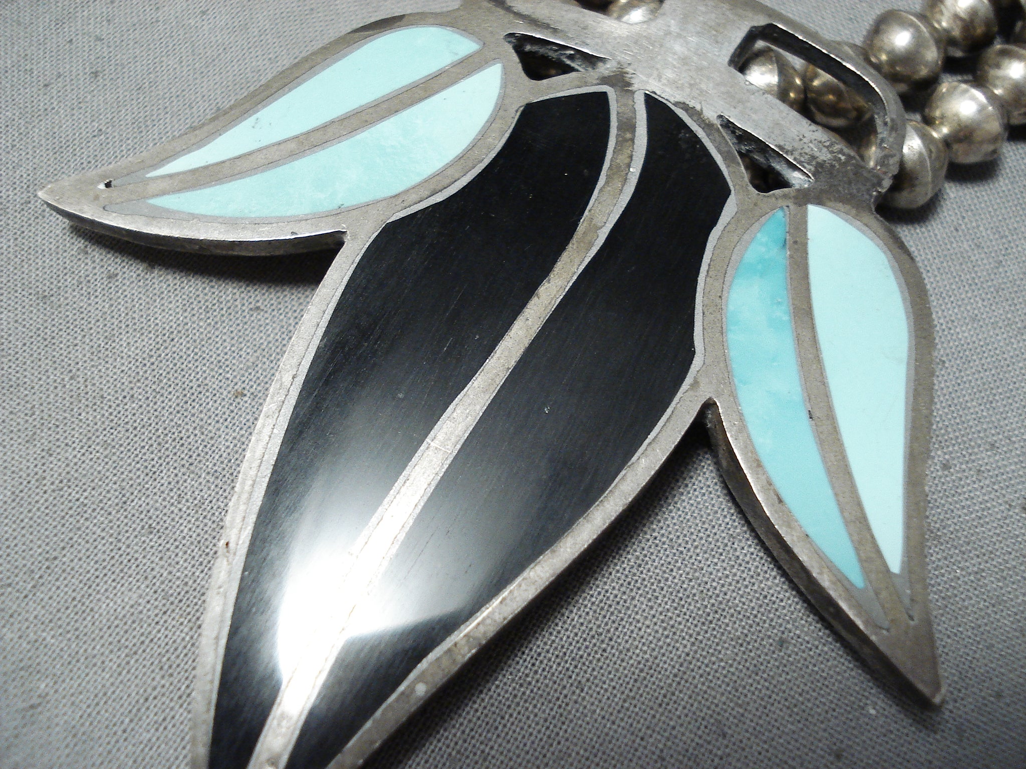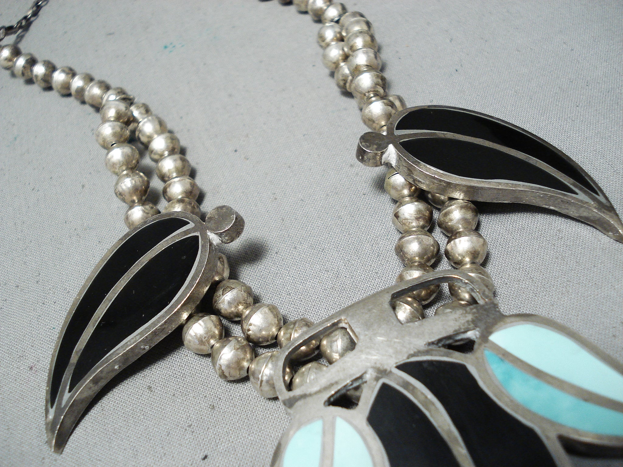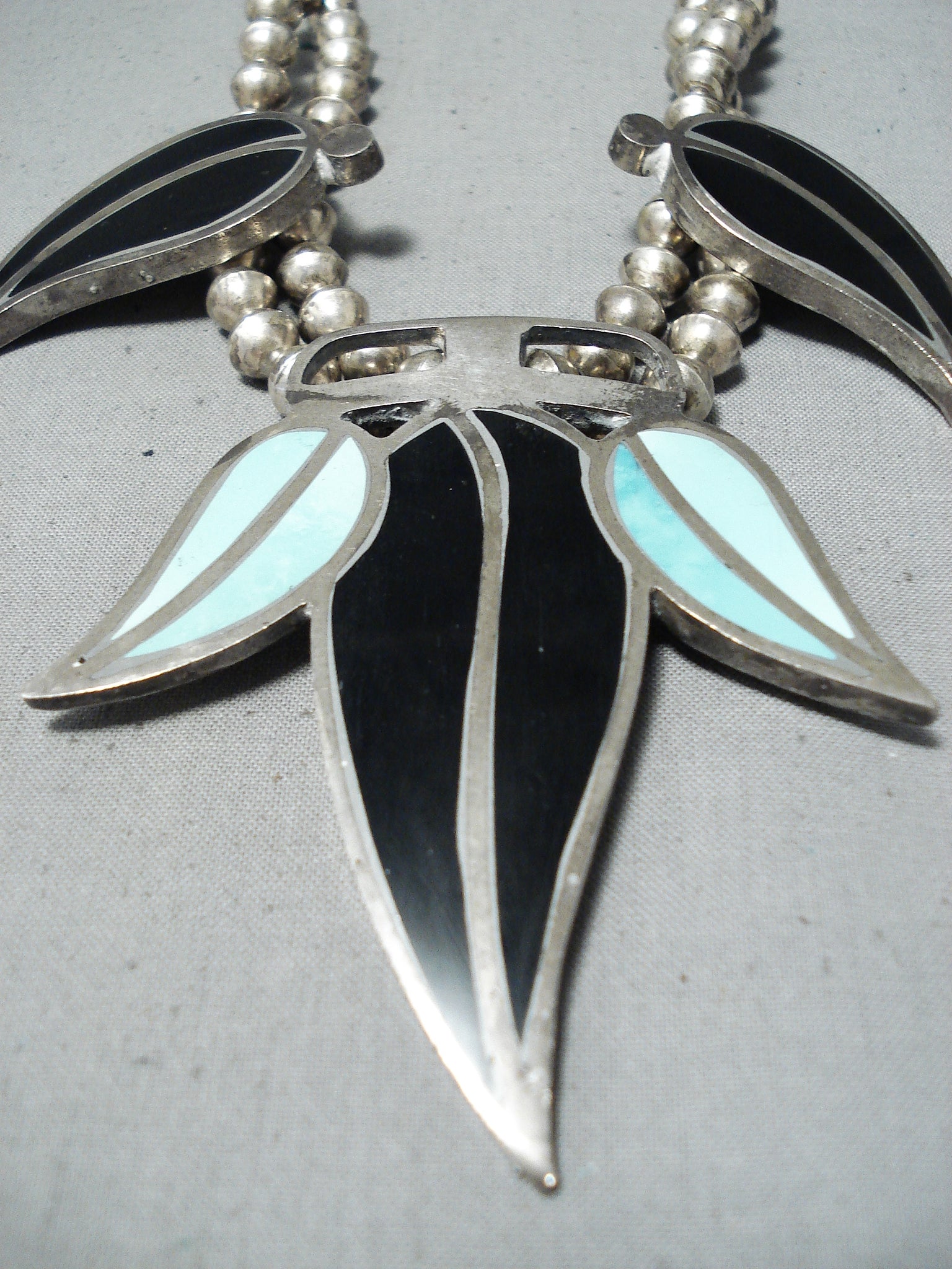 One Of The Most Unique Vintage Native American Navajo Turquoise Sterling Silver Inlay Necklace