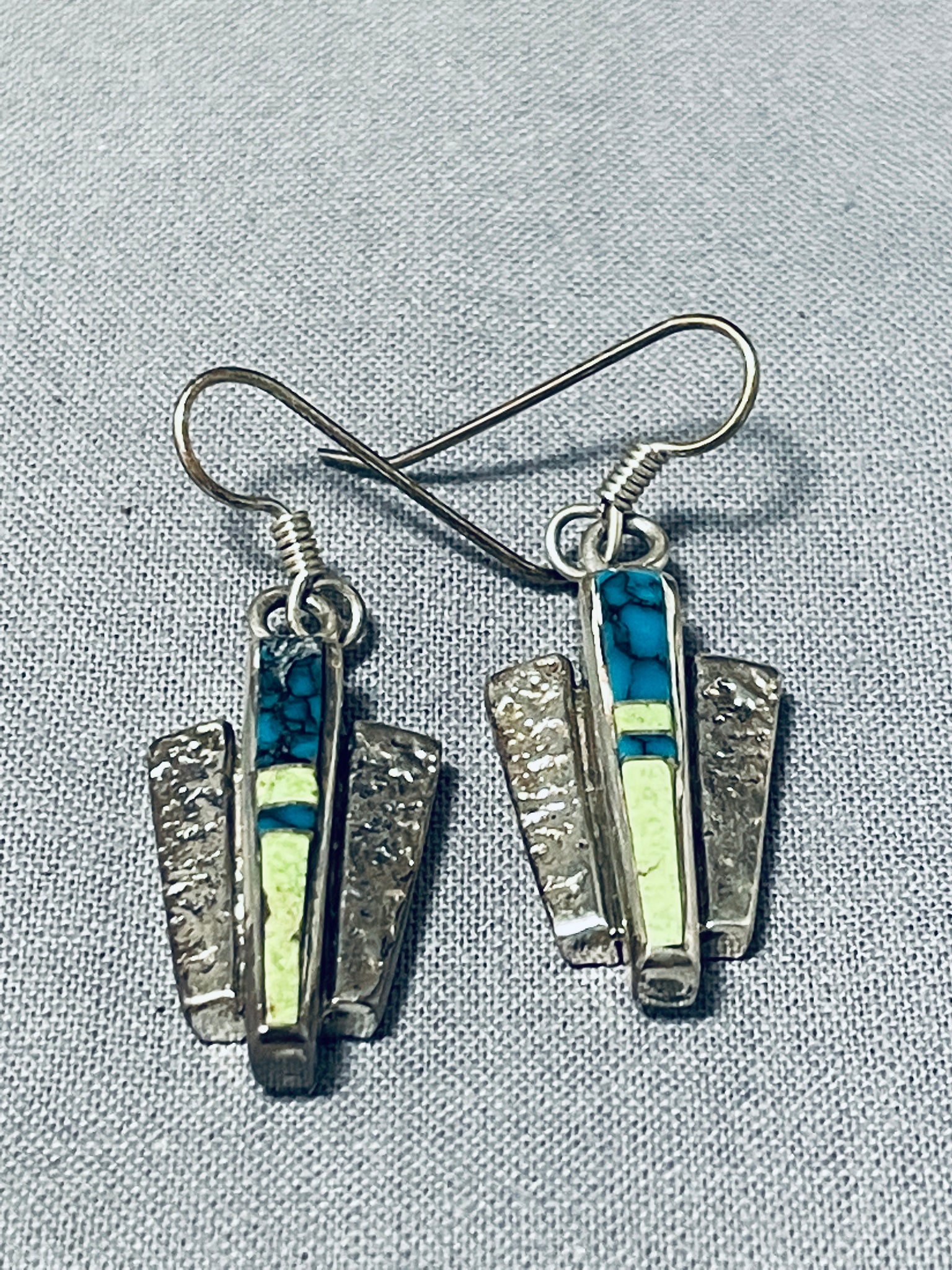 One Of The Most Unique Vintage Native American Navajo Turquoise Sterling Silver Inlay Necklace