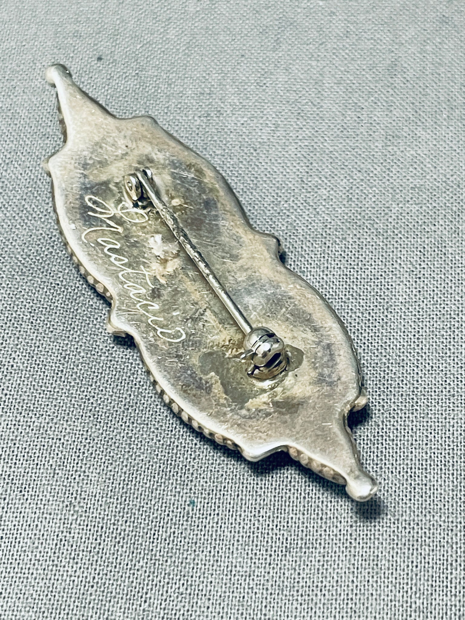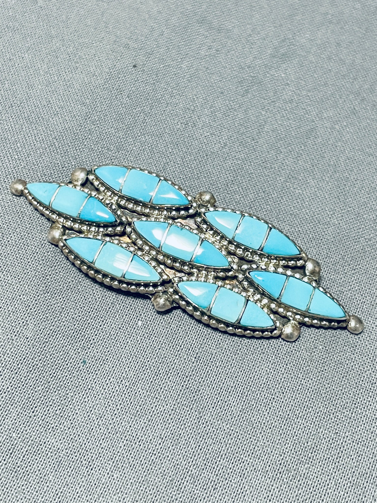 One Of The Most Unique Vintage Native American Zuni Turquoise Sterling Silver Pin