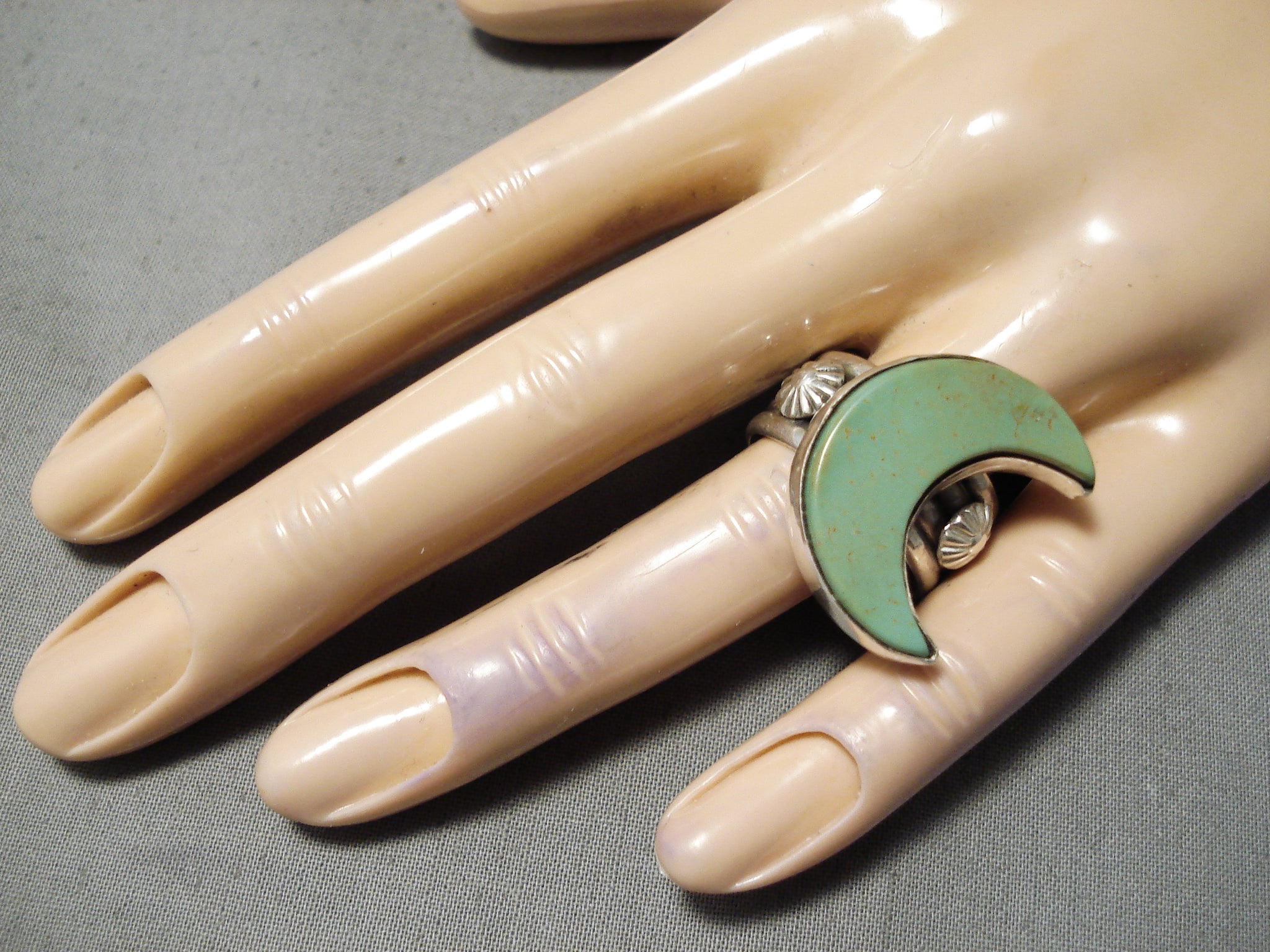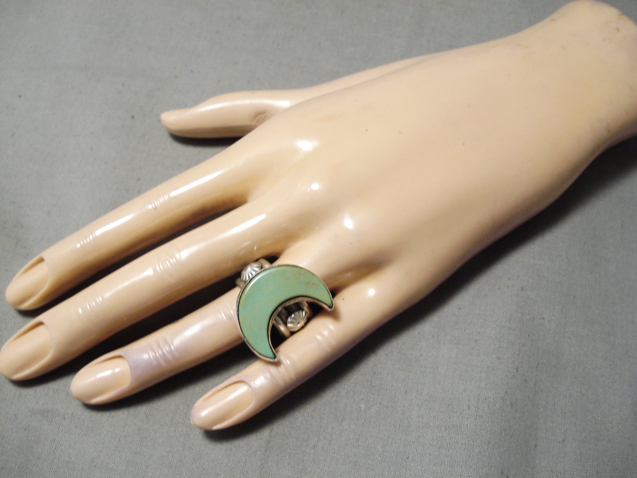 One Of The Msot Unique Vintage Native American Navajo Royston Half Moon Sterling Silver Ring