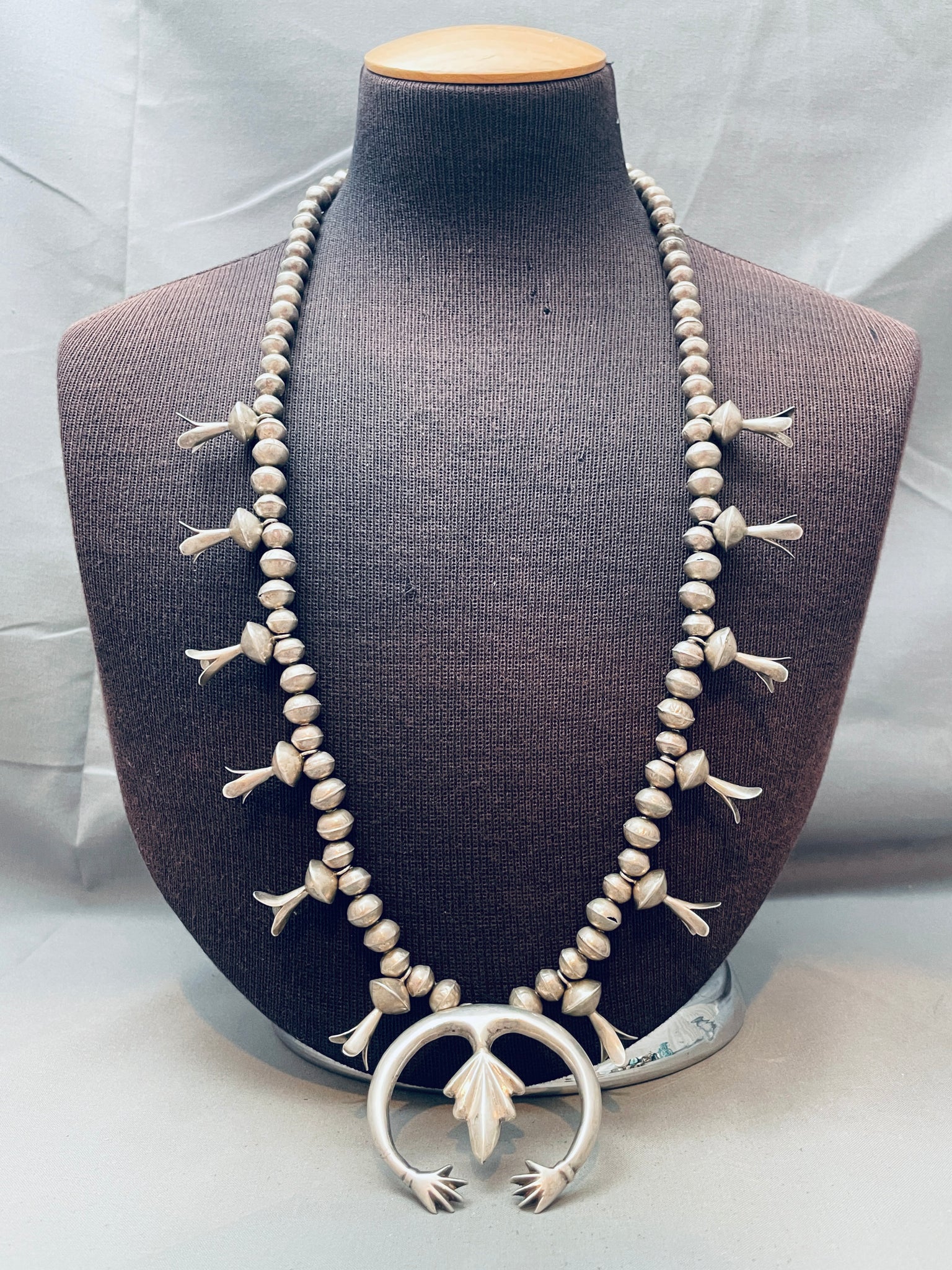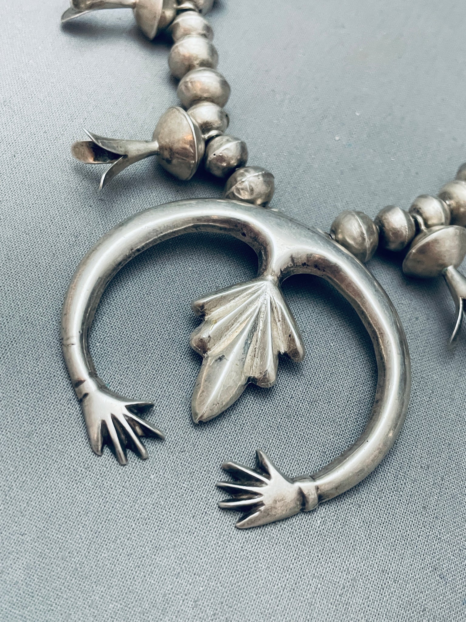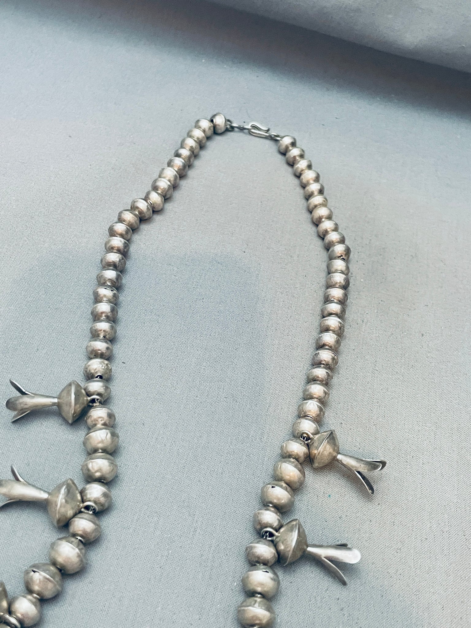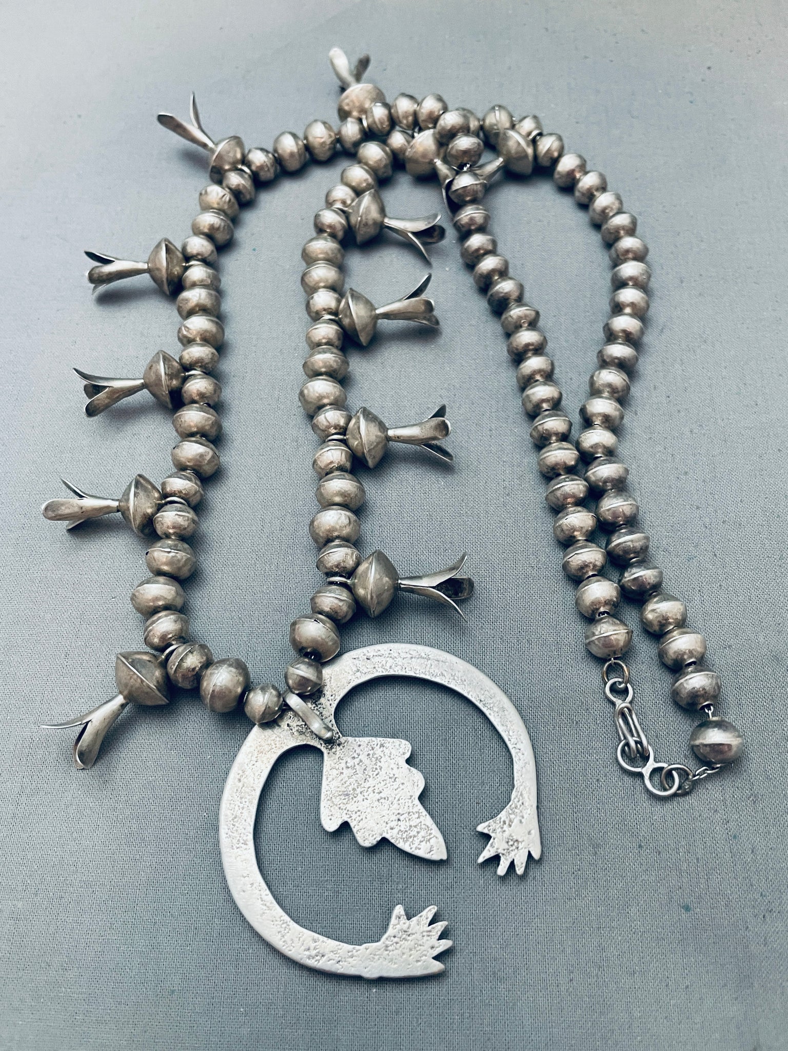 Open Arms Vintage Native American Navajo Sterling Silver Squash Blossom Necklace