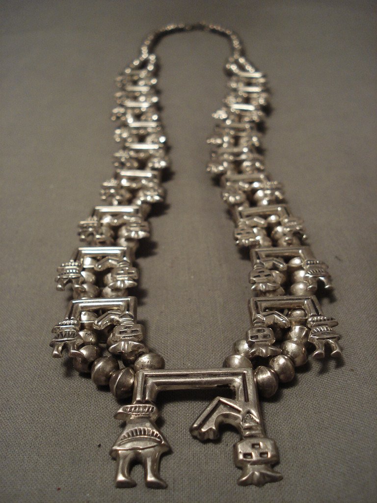 Opulent And Absolutely Incredible 'Yeibichai' Squash Blossom Native American Jewelry Silver Necklace