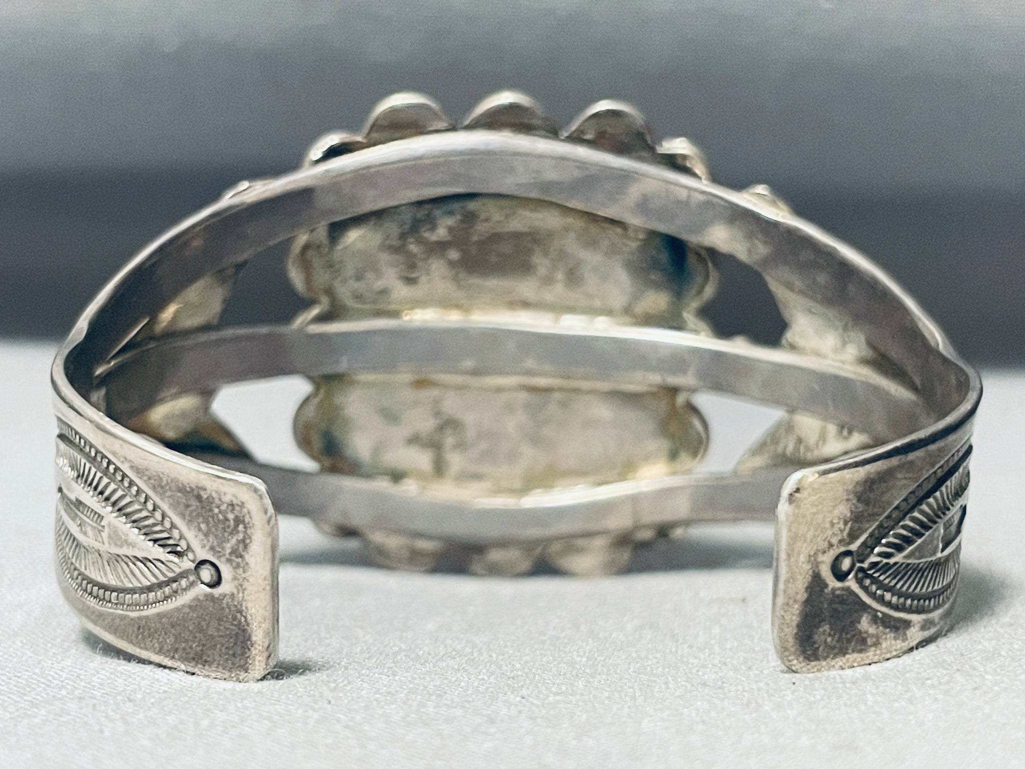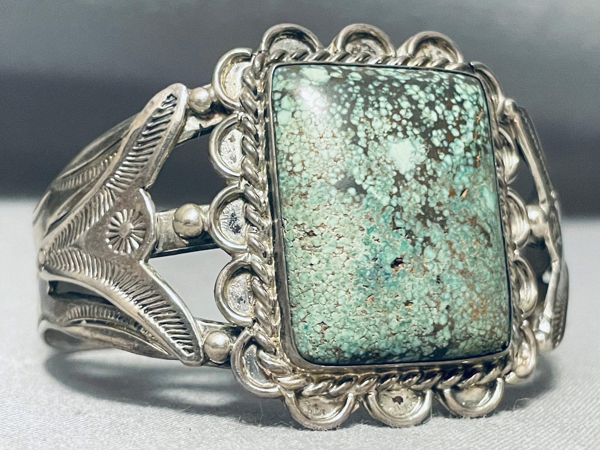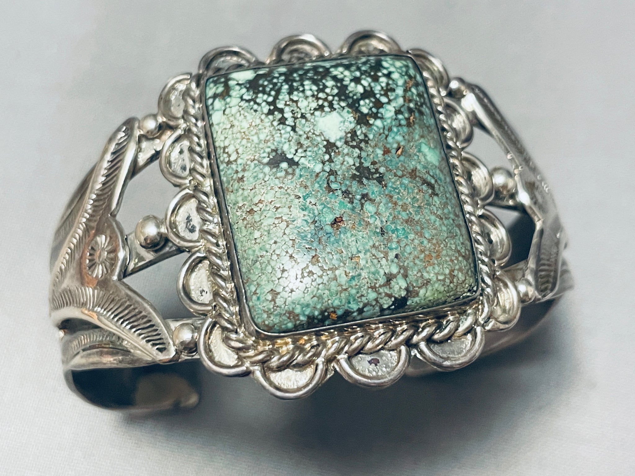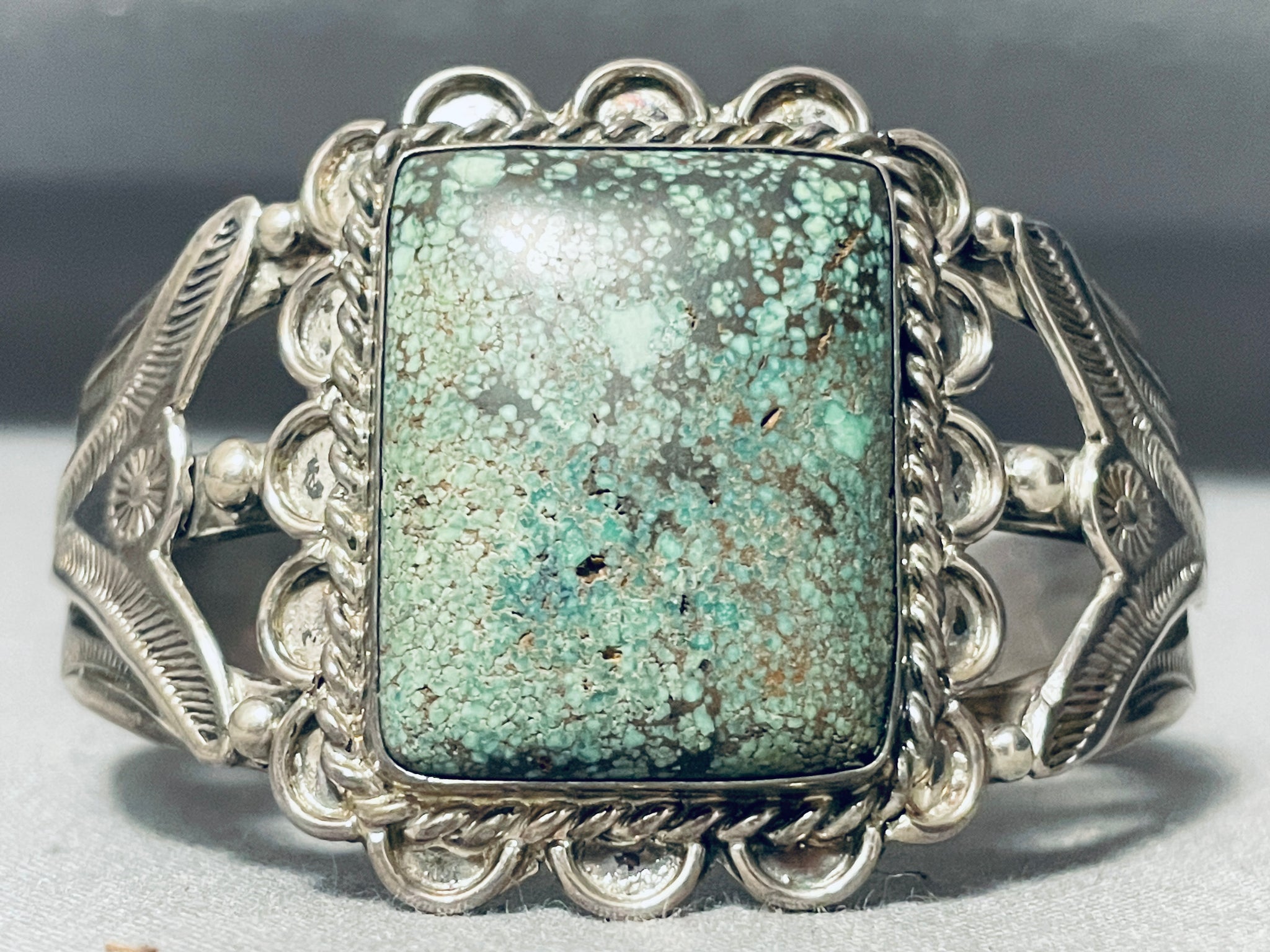 Opulent Early Vintage Native American Navajo Green Turquoise Sterling Silver Bracelet