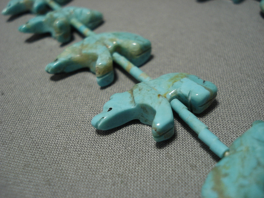 Opulent Vintage Native American Navajo Bear Turquoise Sterling Silver Fetish Necklace Old