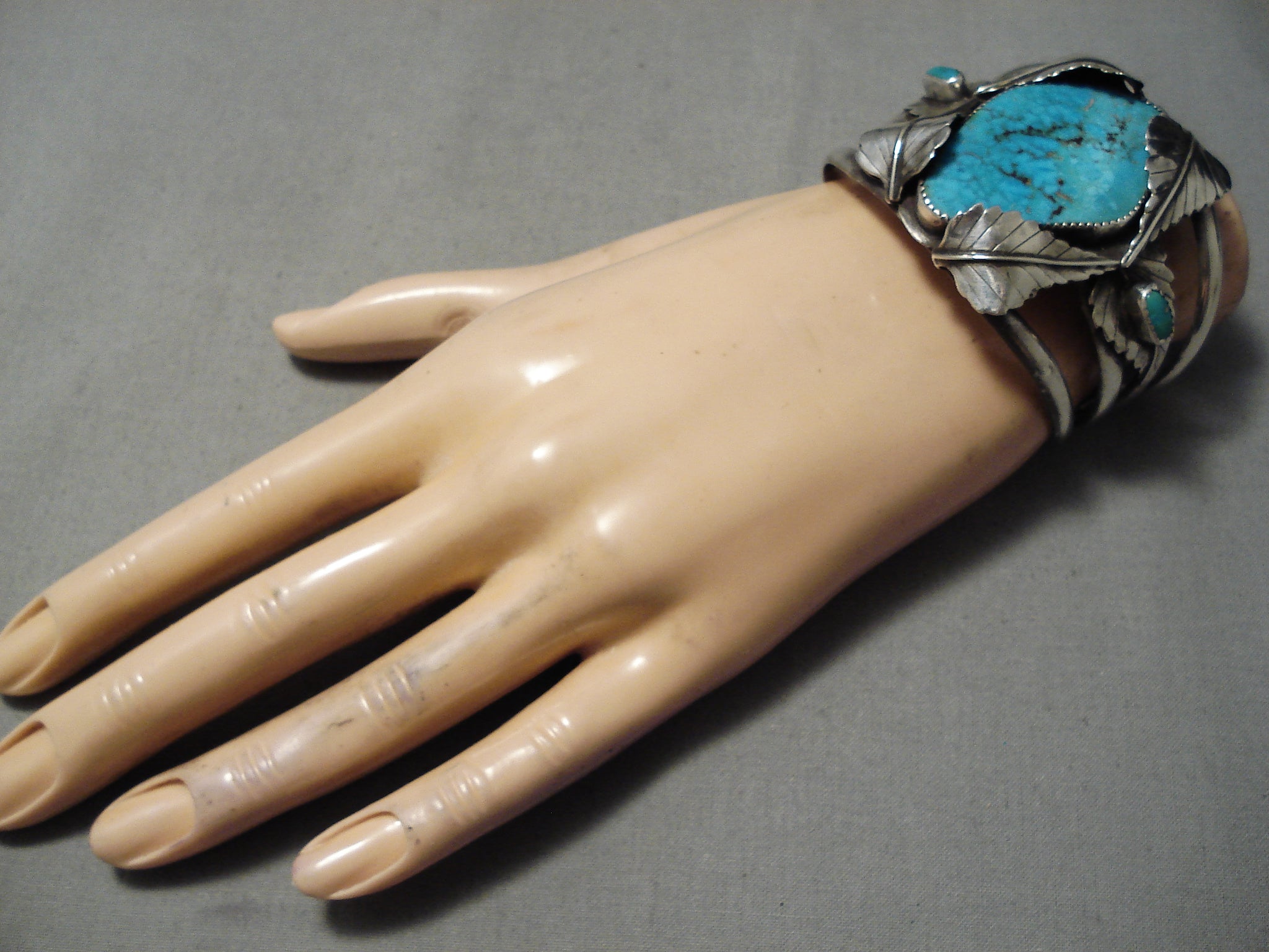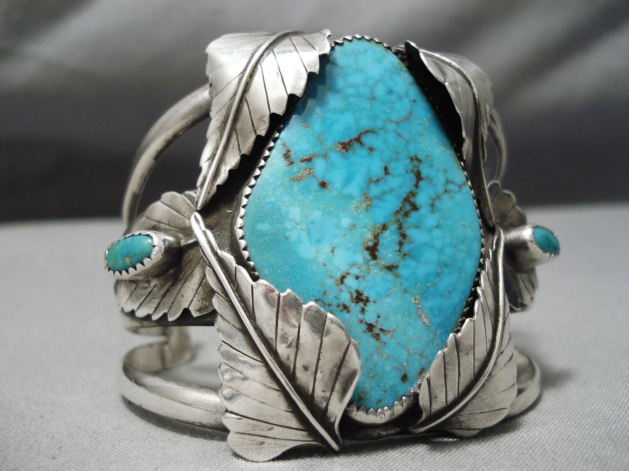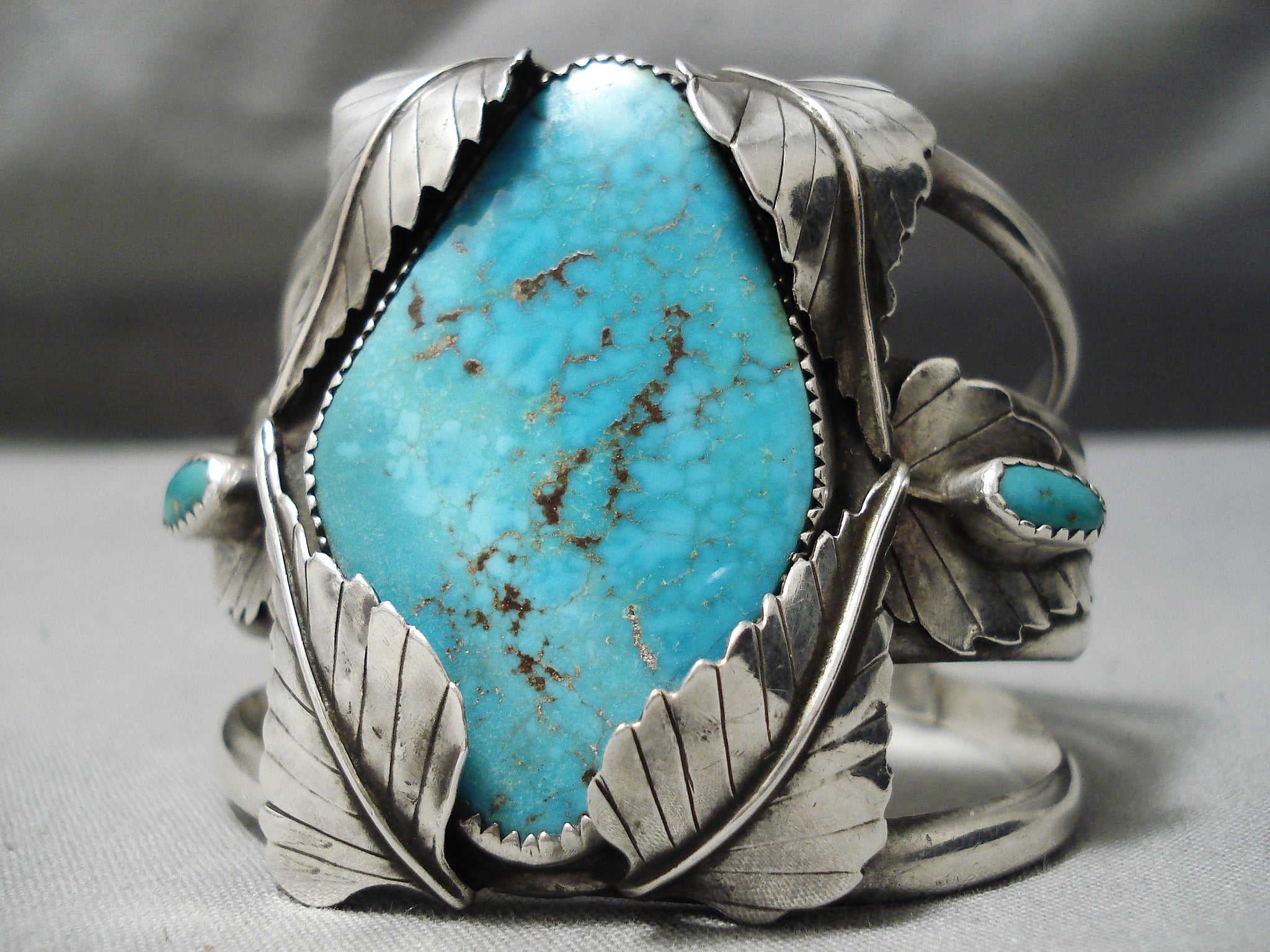 Opulent Vintage Native American Navajo Lone Mountain Turquoise Sterling Silver Bracelet Old