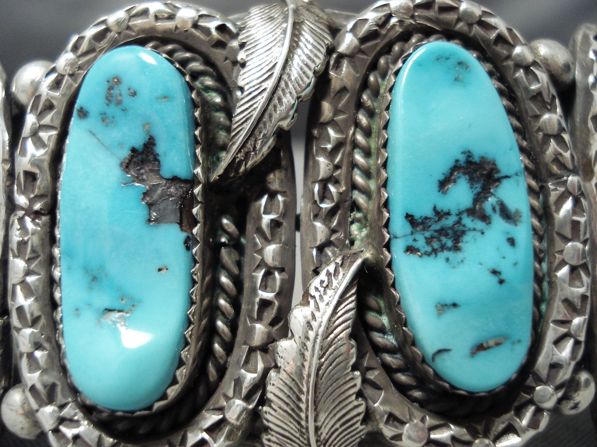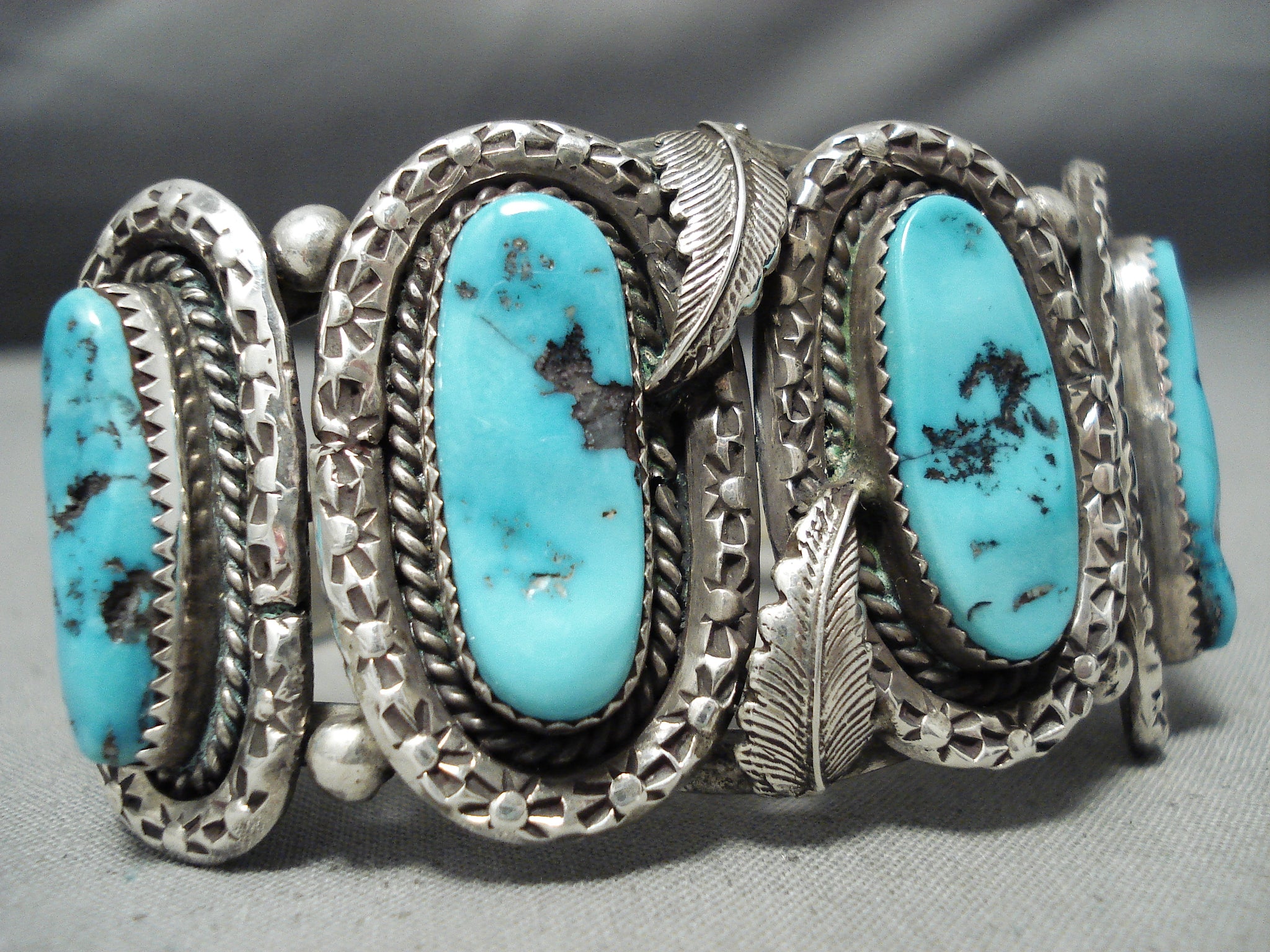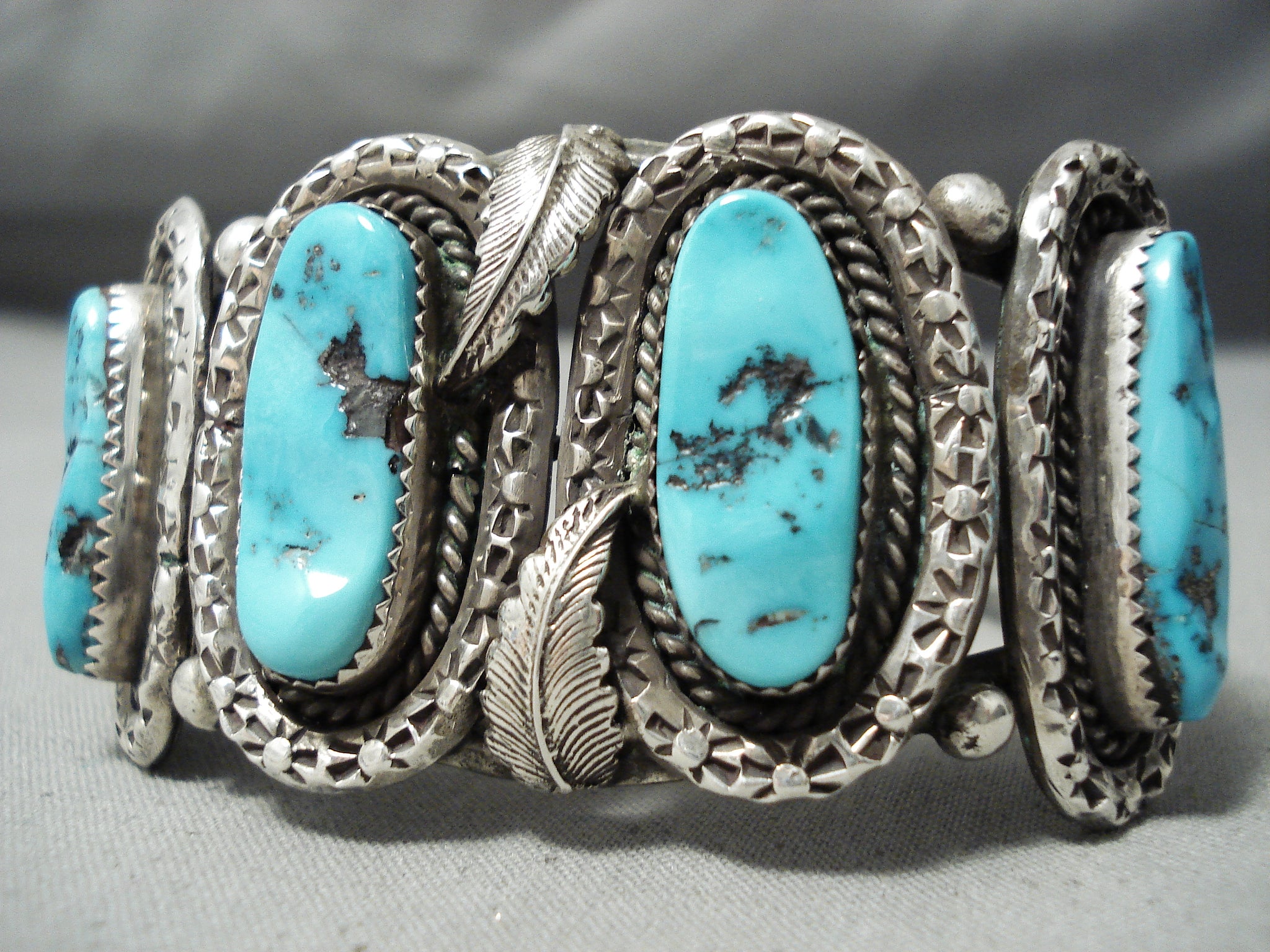 Opulent Vintage Native American Navajo Old Sleeping Beauty Turquoise Sterling Silver Bracelet