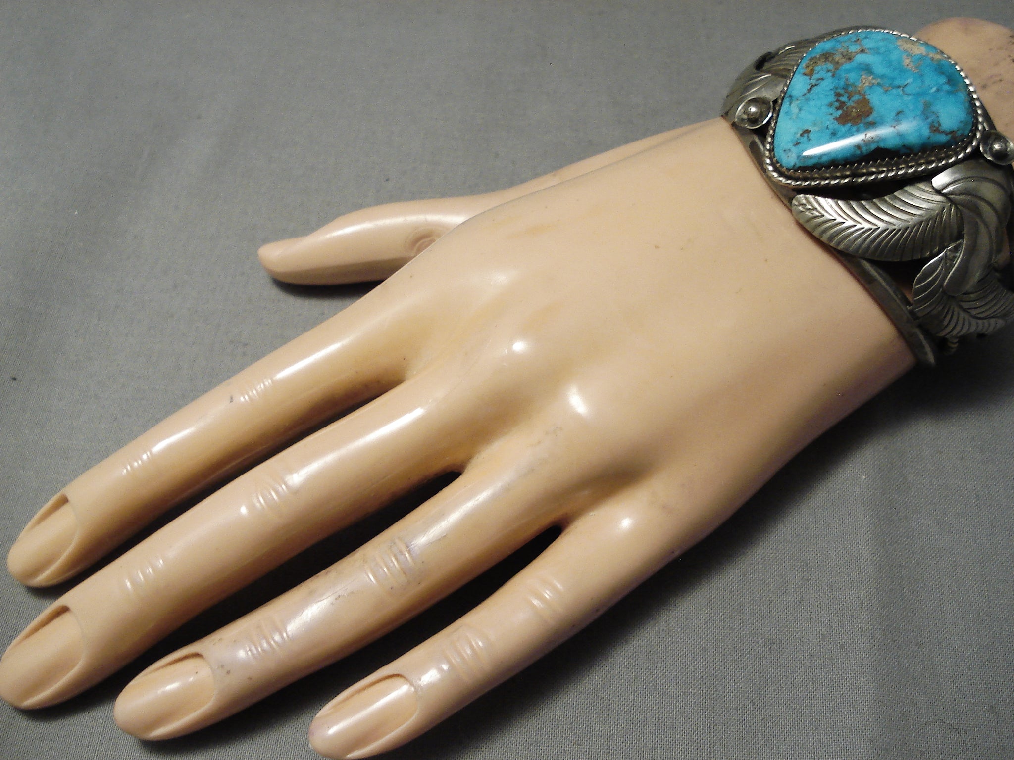 Opulent Vintage Native American Navajo Rare Early Deposit Turquoise Sterling Silver Bracelet