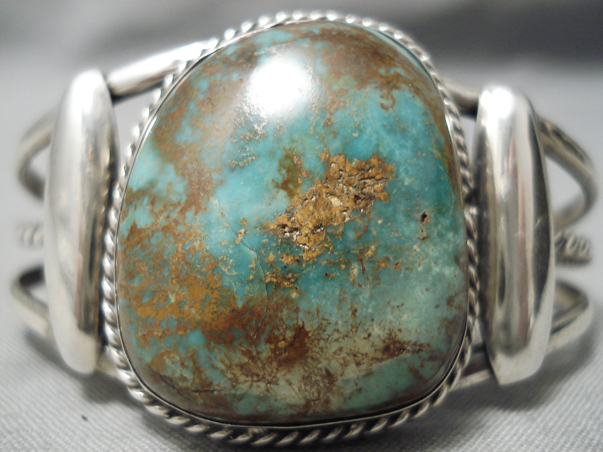 Opulent Vintage Native American Navajo Royston Turquoise Sterling Silver Bracelet Old