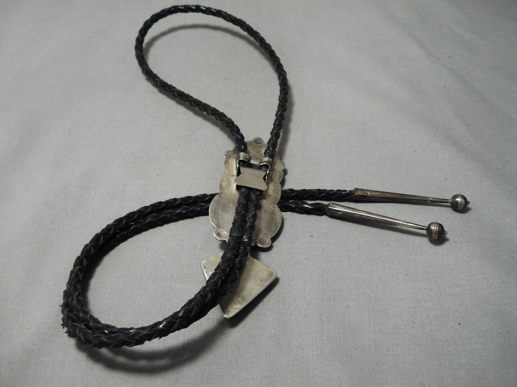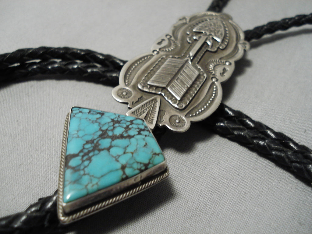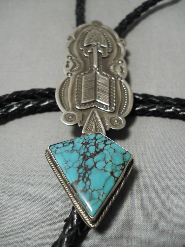 Opulent Vintage Native American Navajo Spiderweb Turquoise Sterling Silver Arrow Bolo Tie