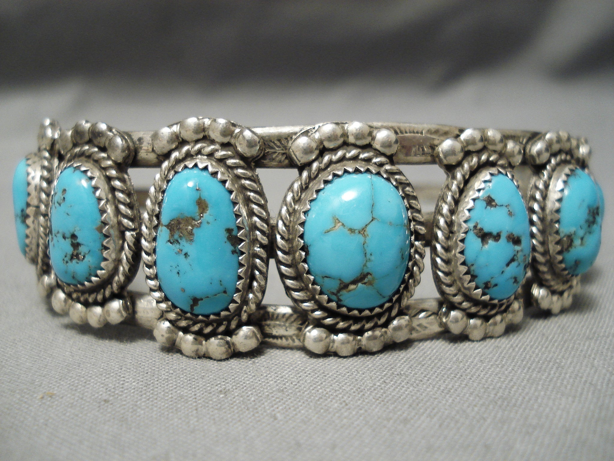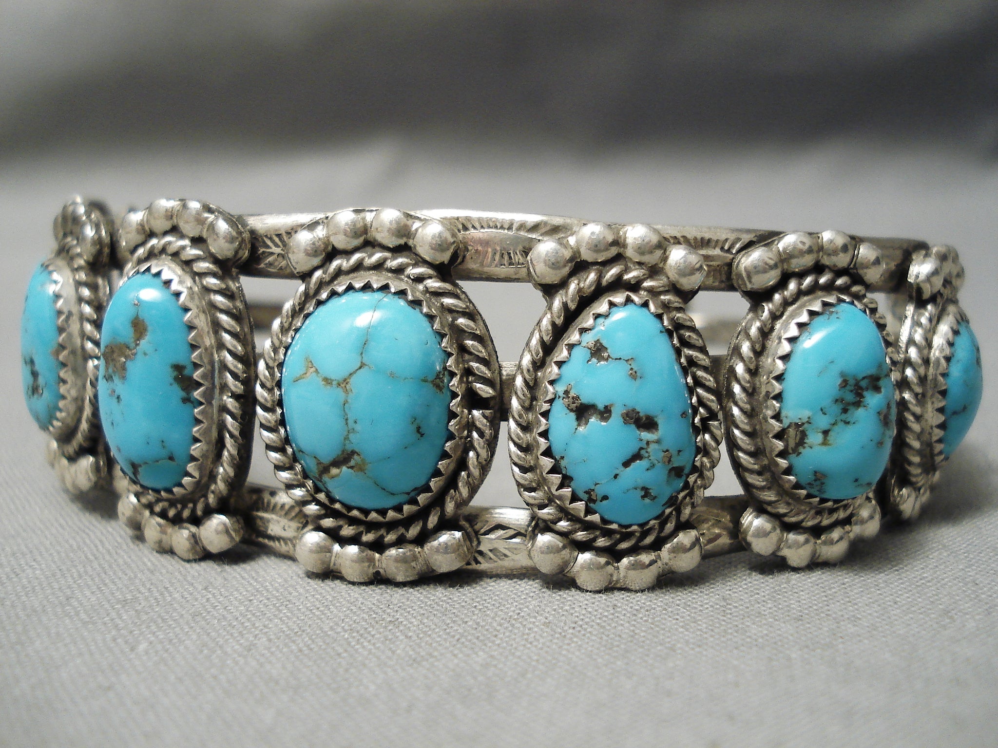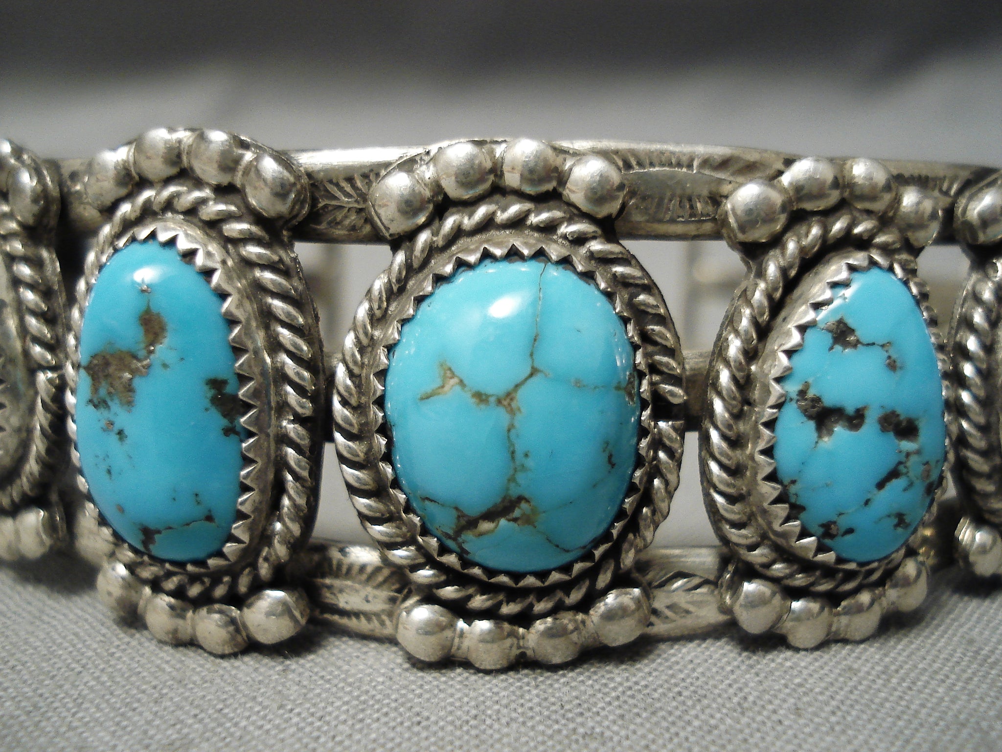 Opulent Vintage Native American Navajo Spiderweb Turquoise Sterling Silver Bracelet Old