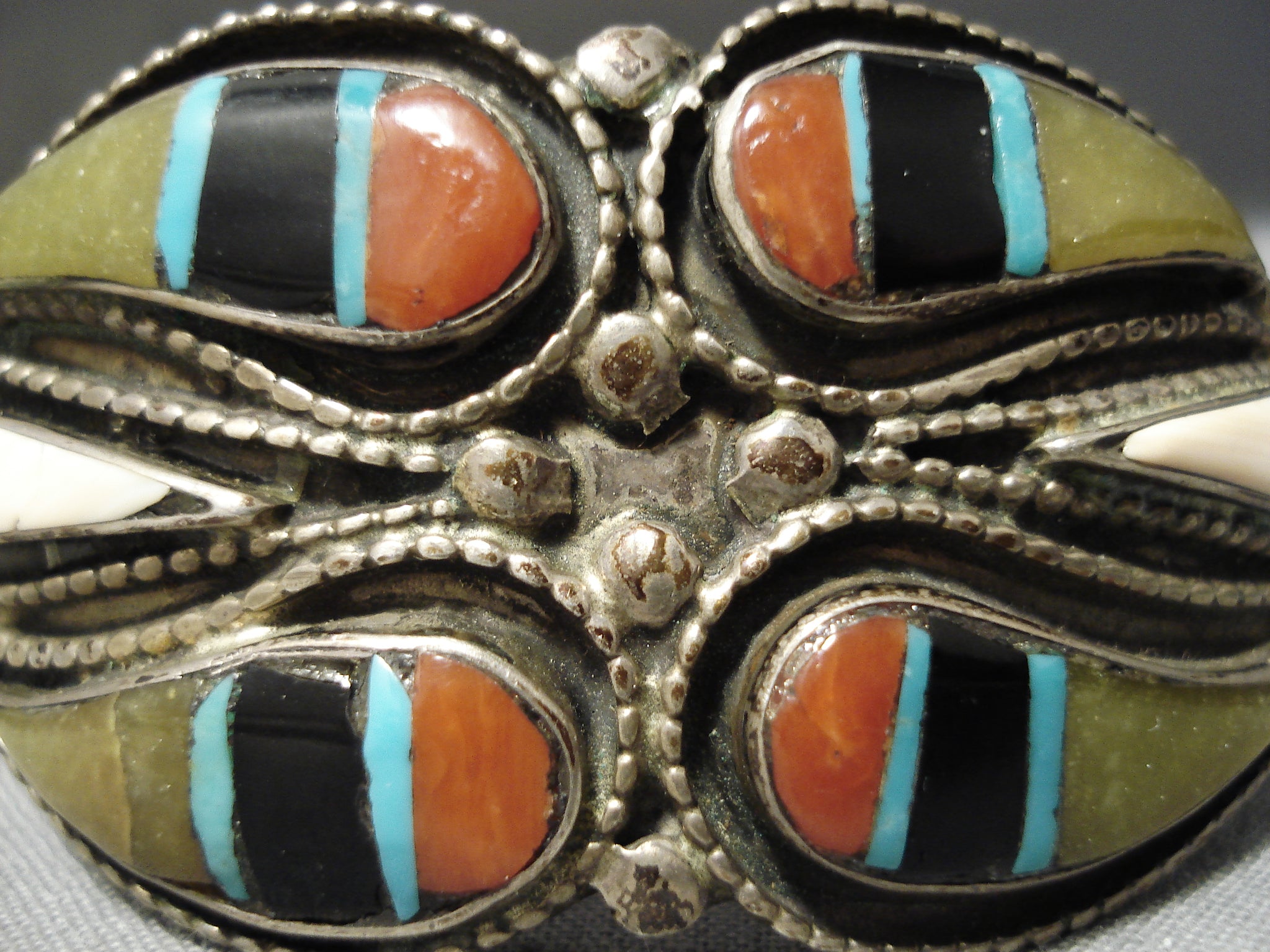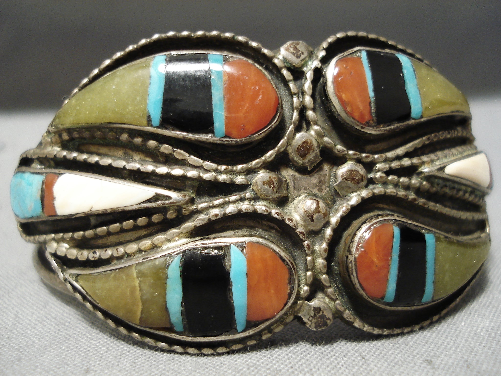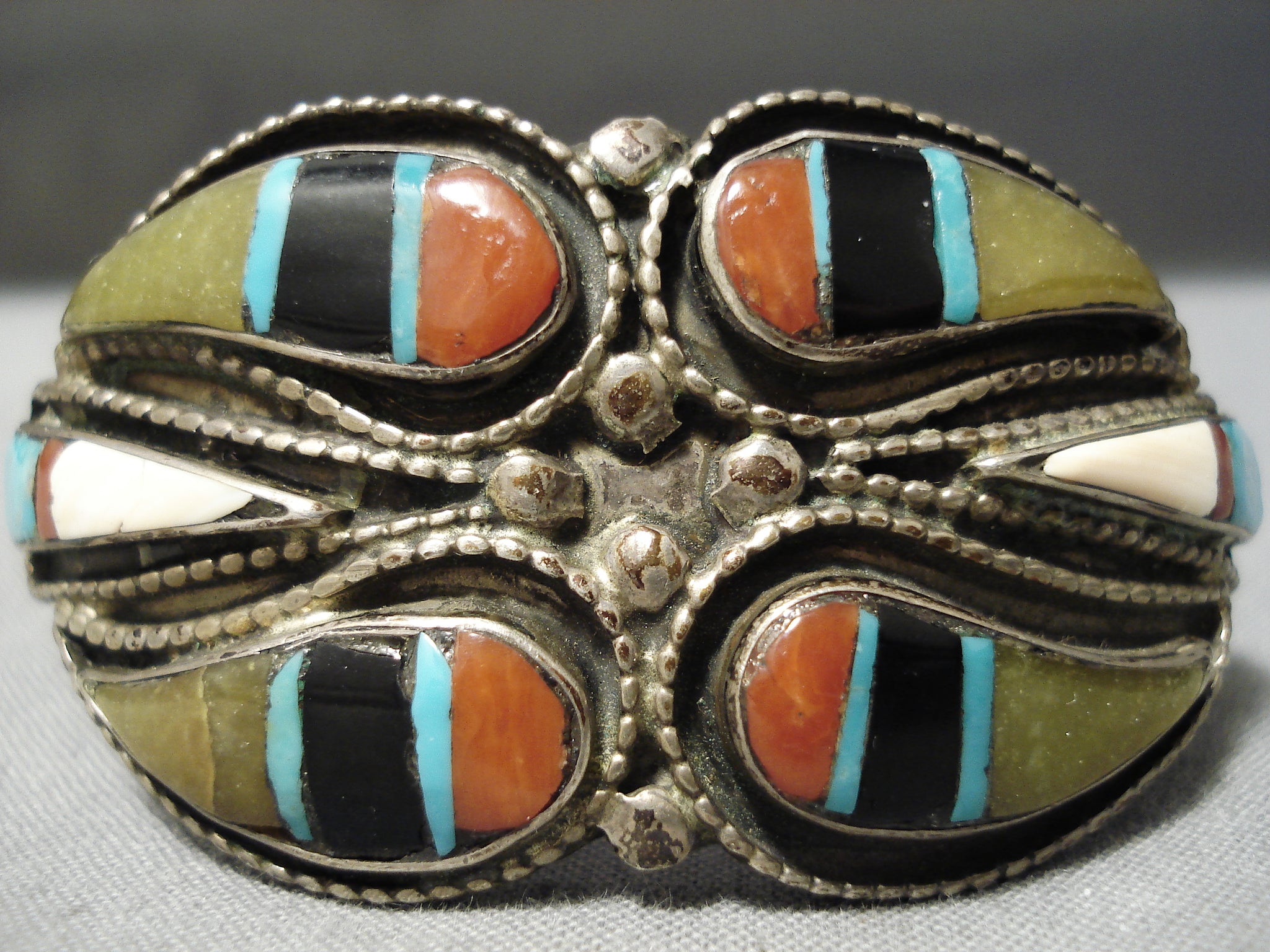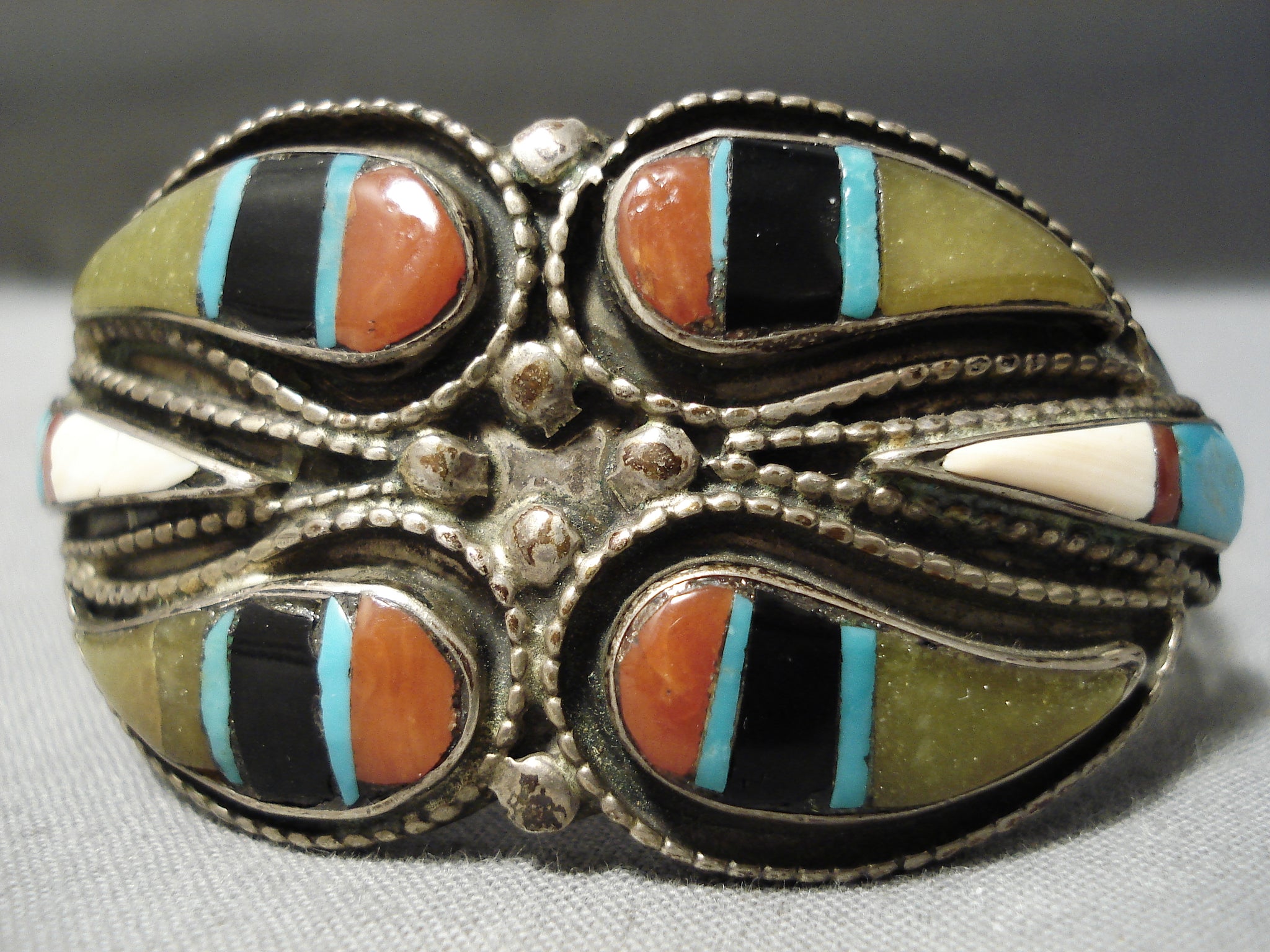 Opulent Vintage Native American Navajo Turquoise Jade Sterling Silver Bracelet Old