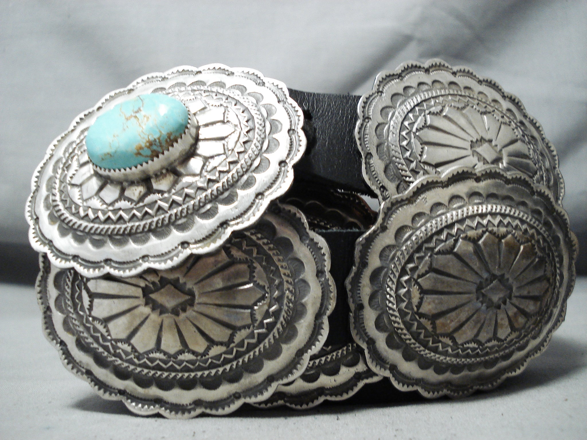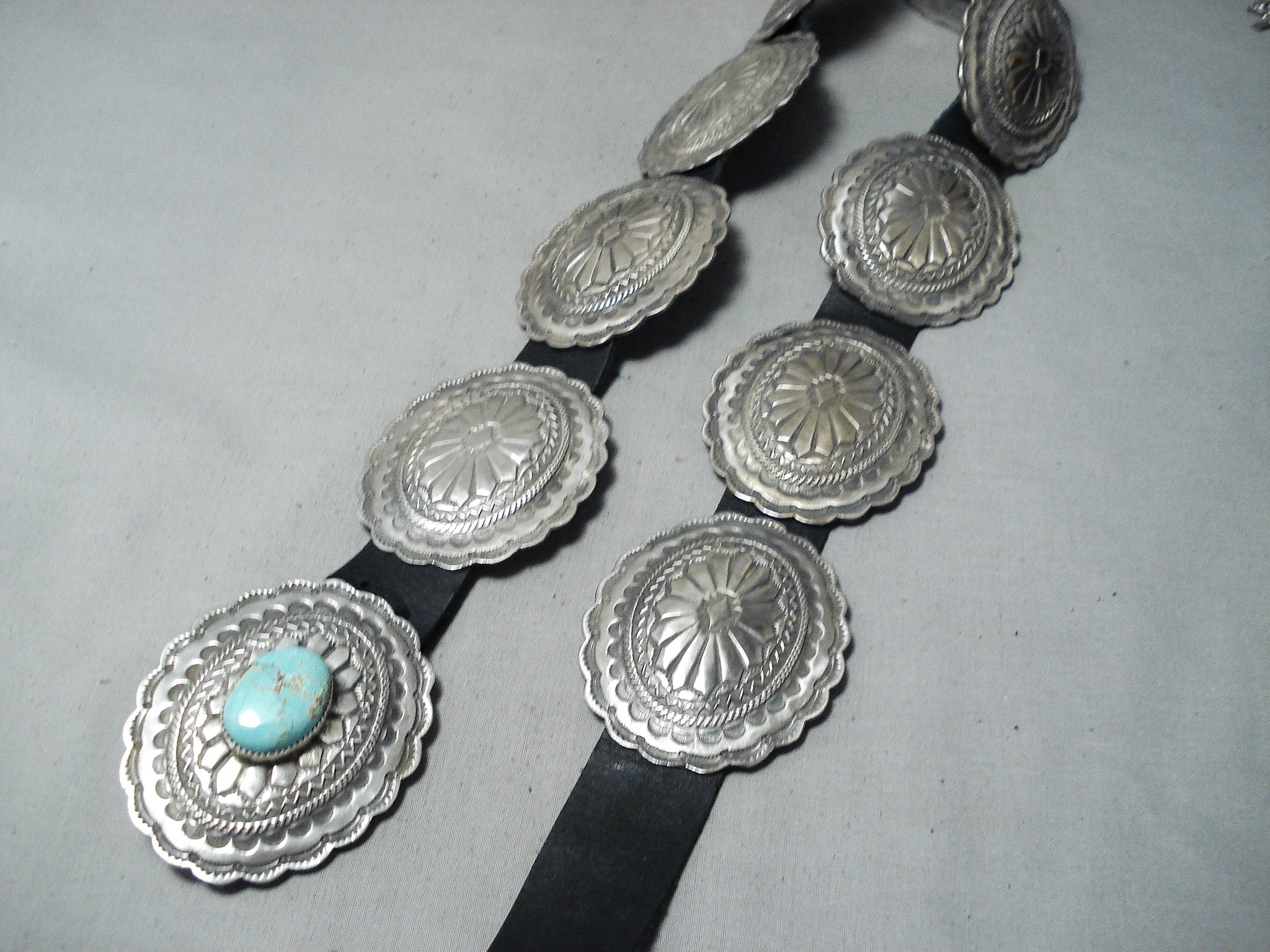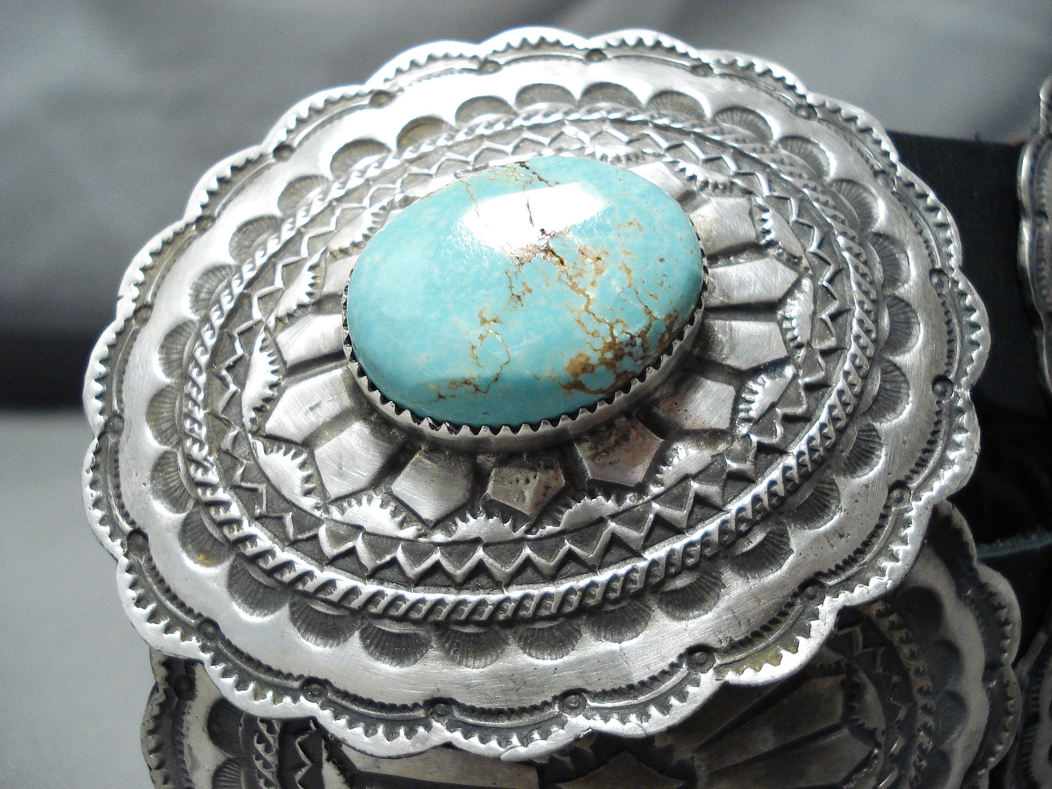 Outstanding Navajo Native American 8 Turquoise Sterling Silver Concho Belt