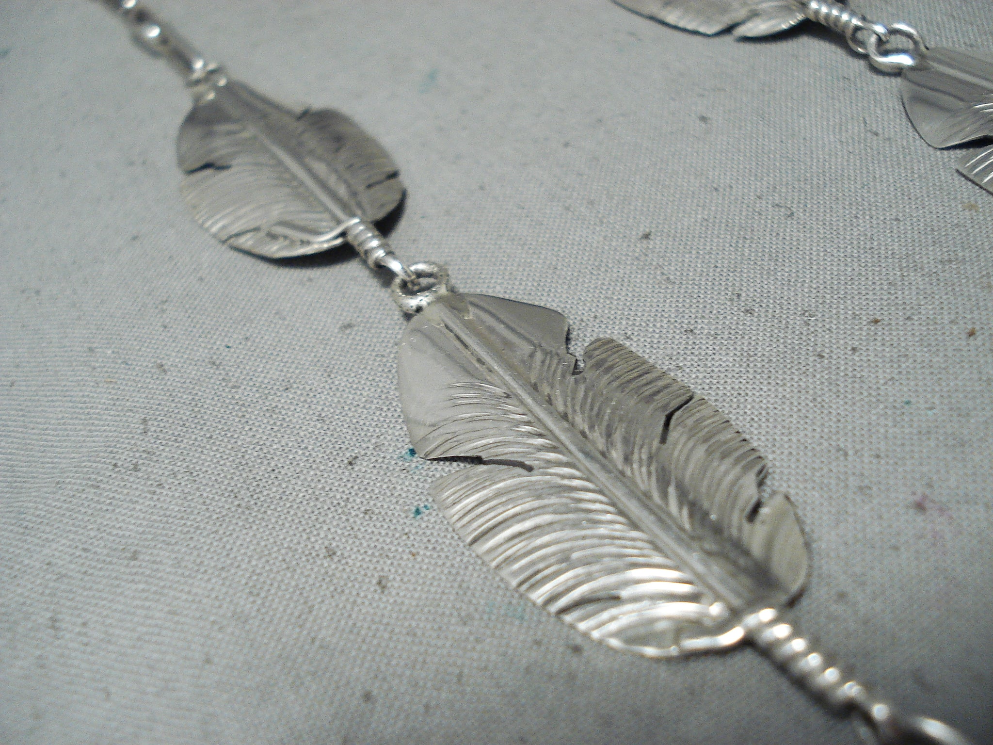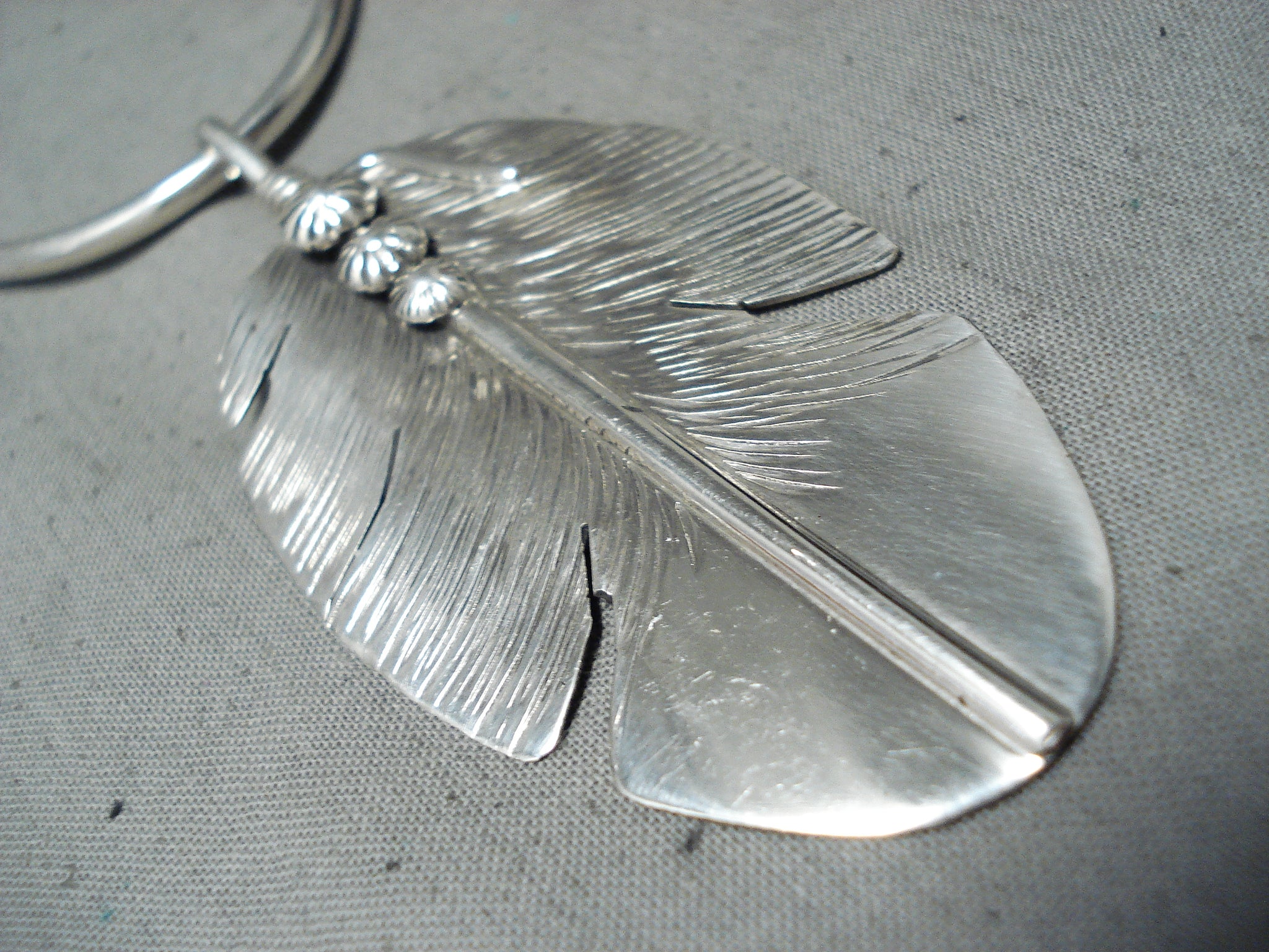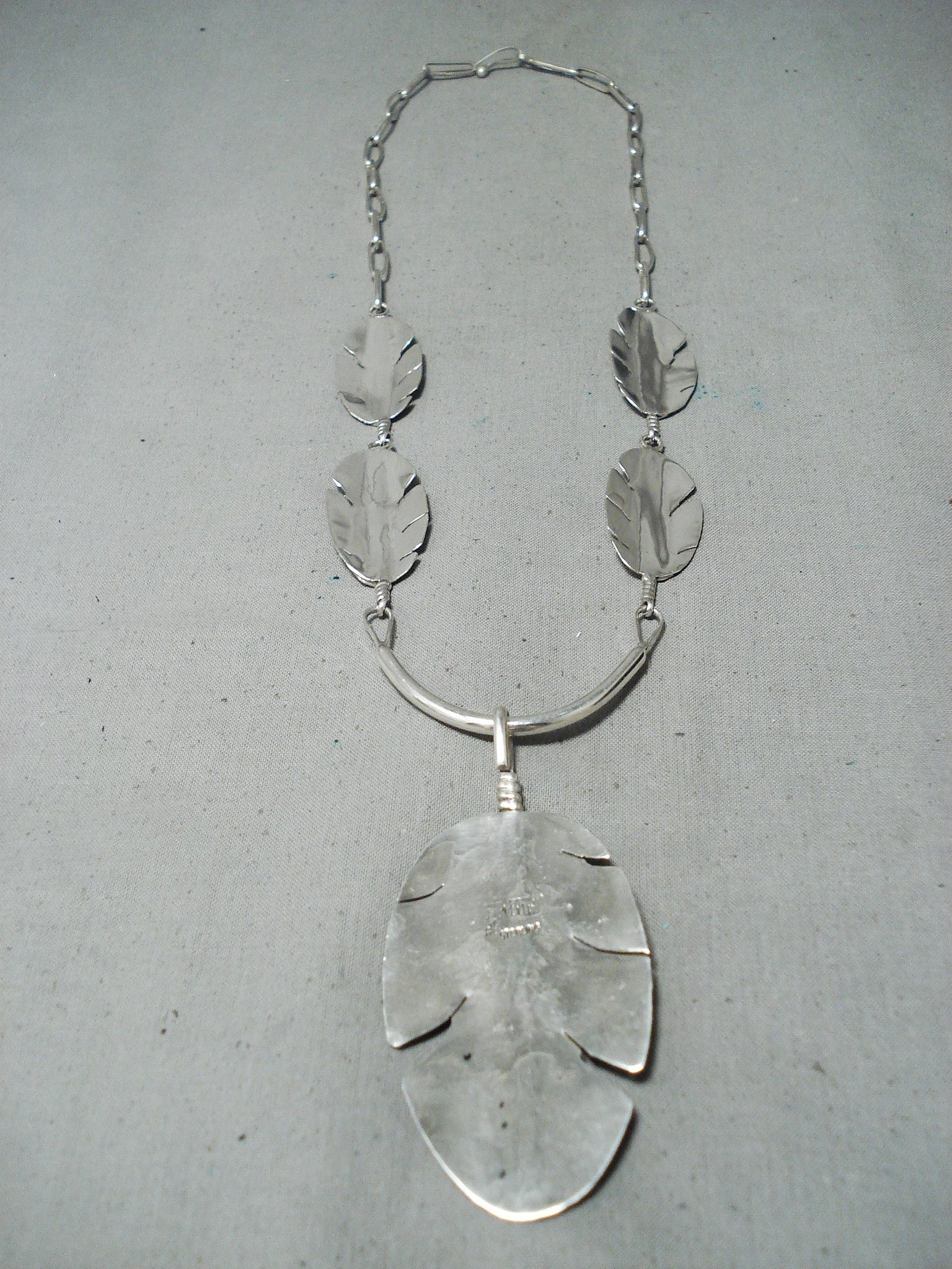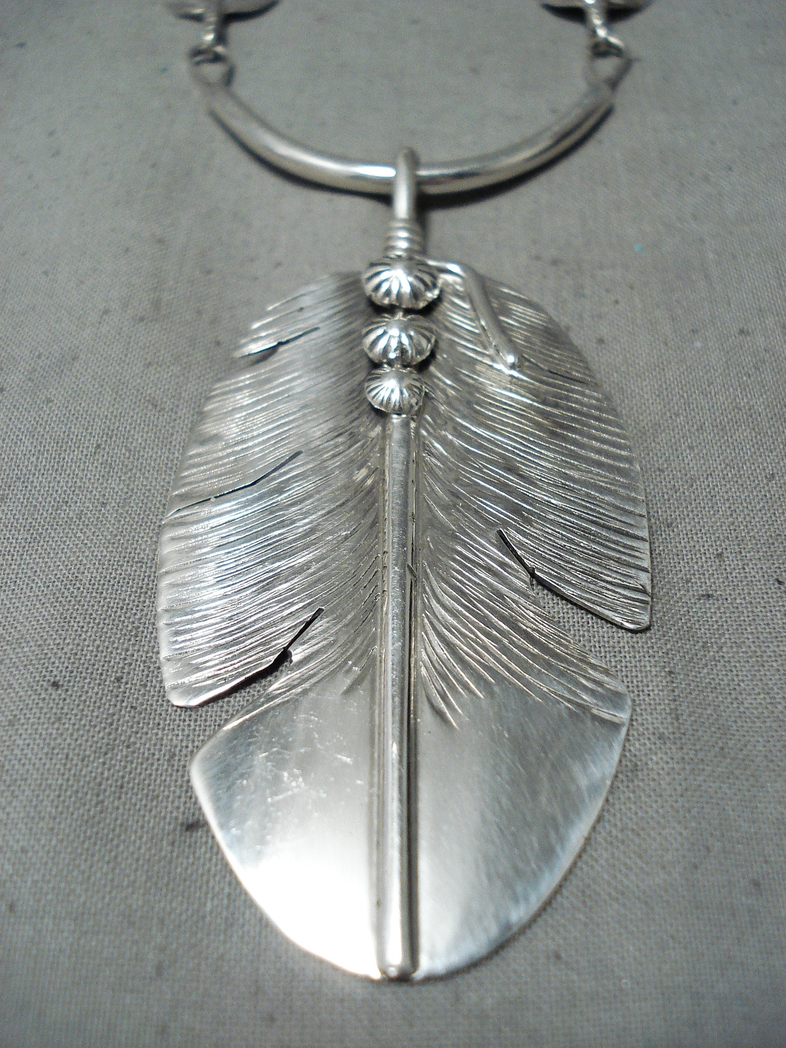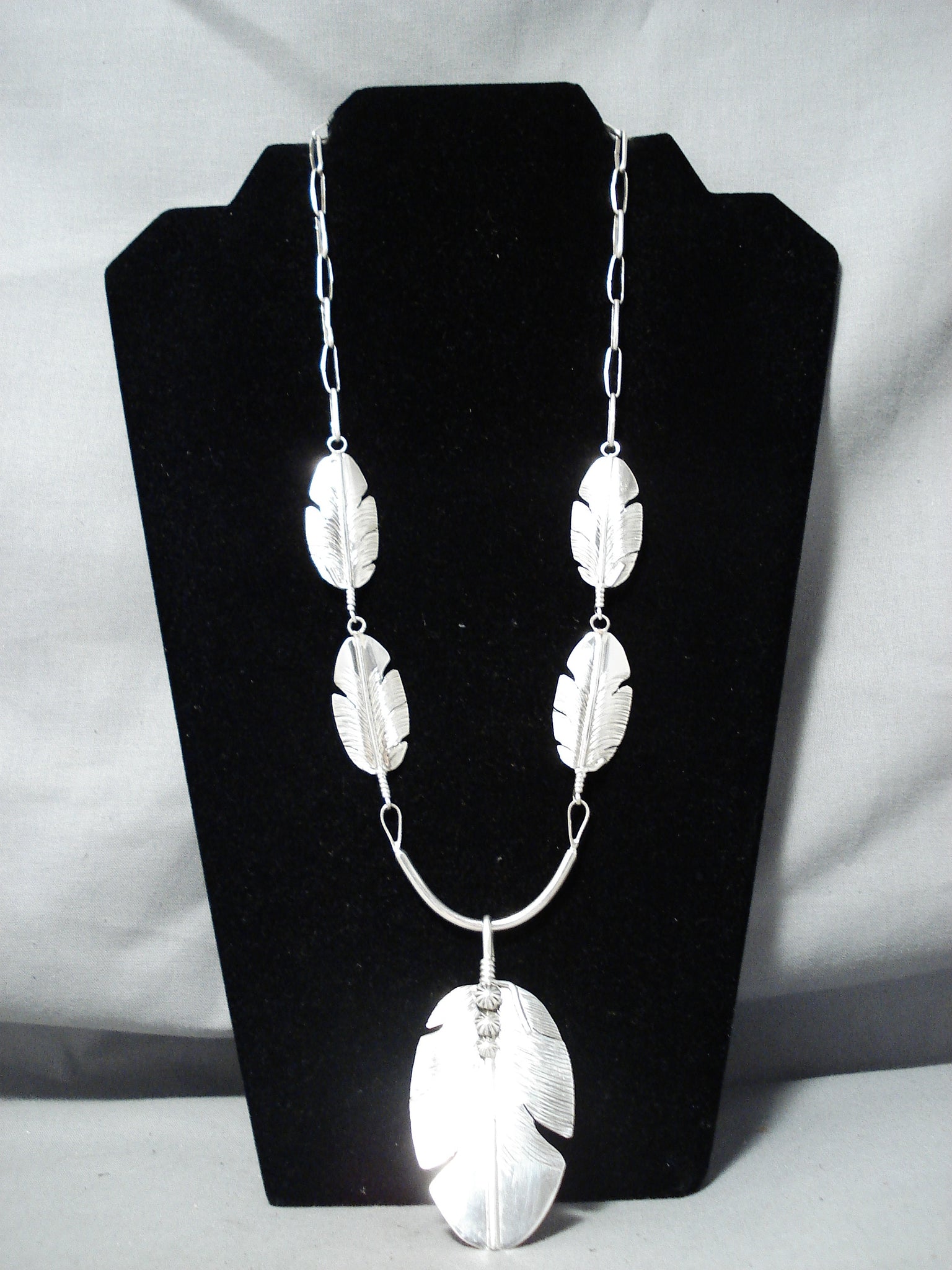 Outstanding Navajo Sterling Silver Feather Pendant Necklace Native American