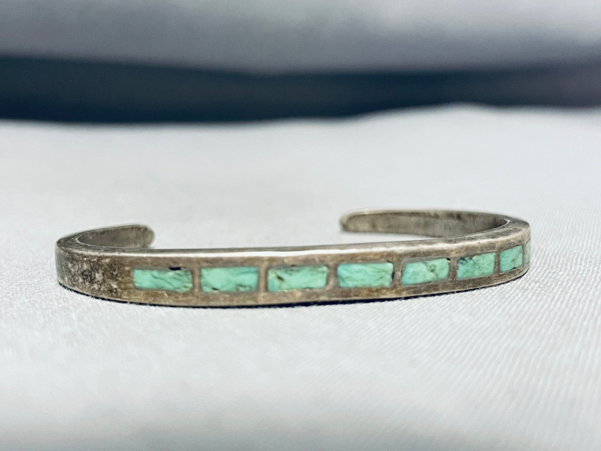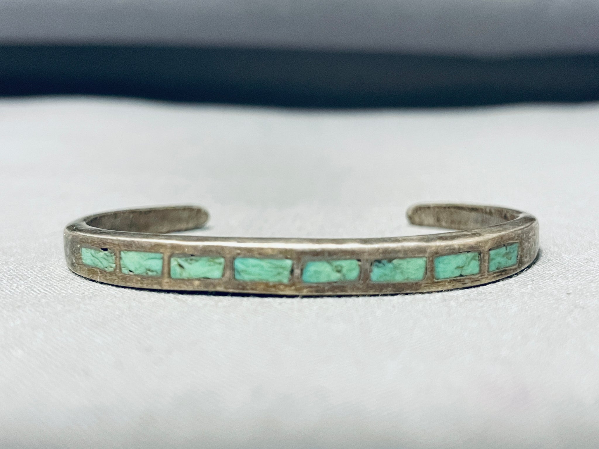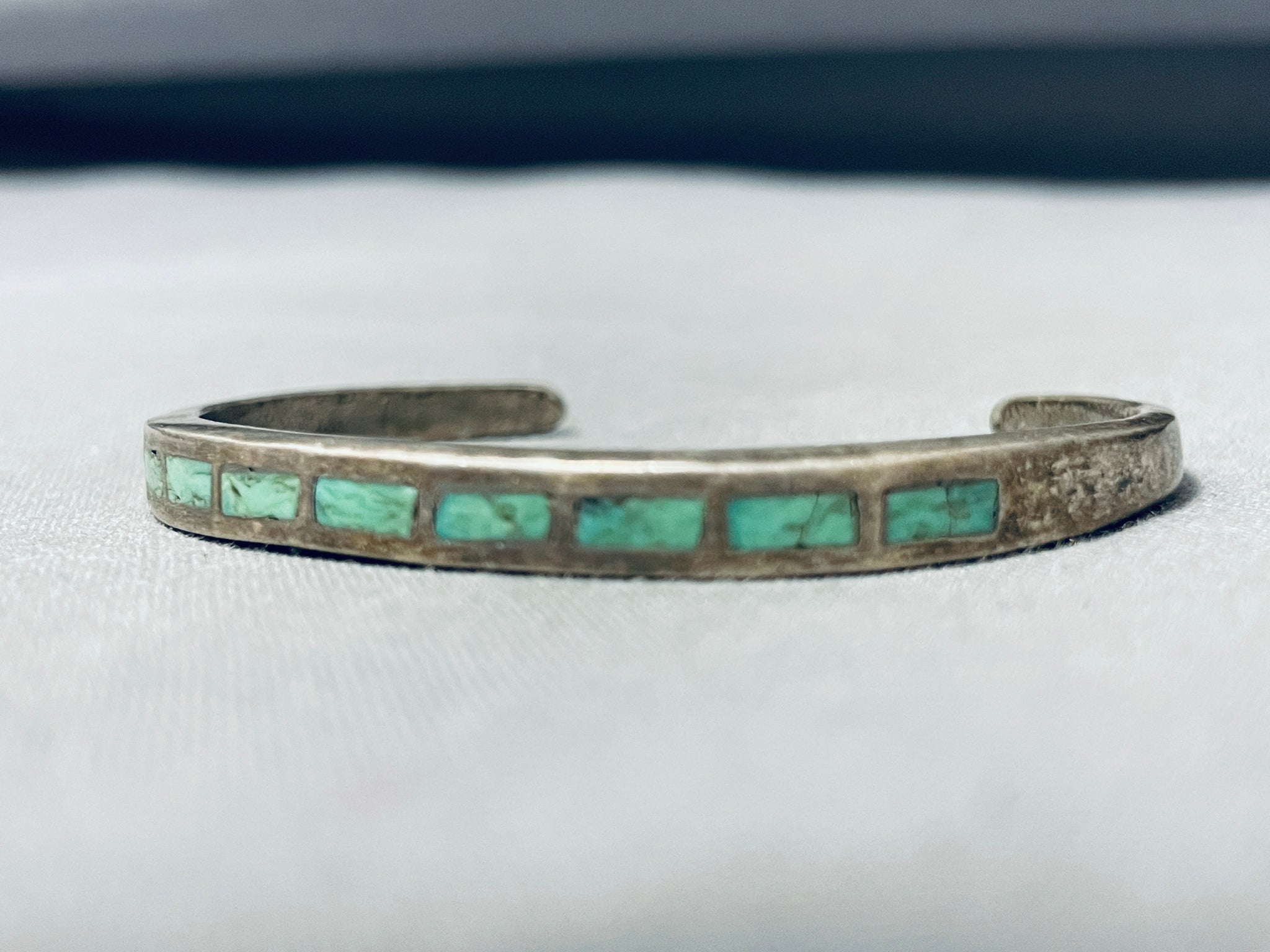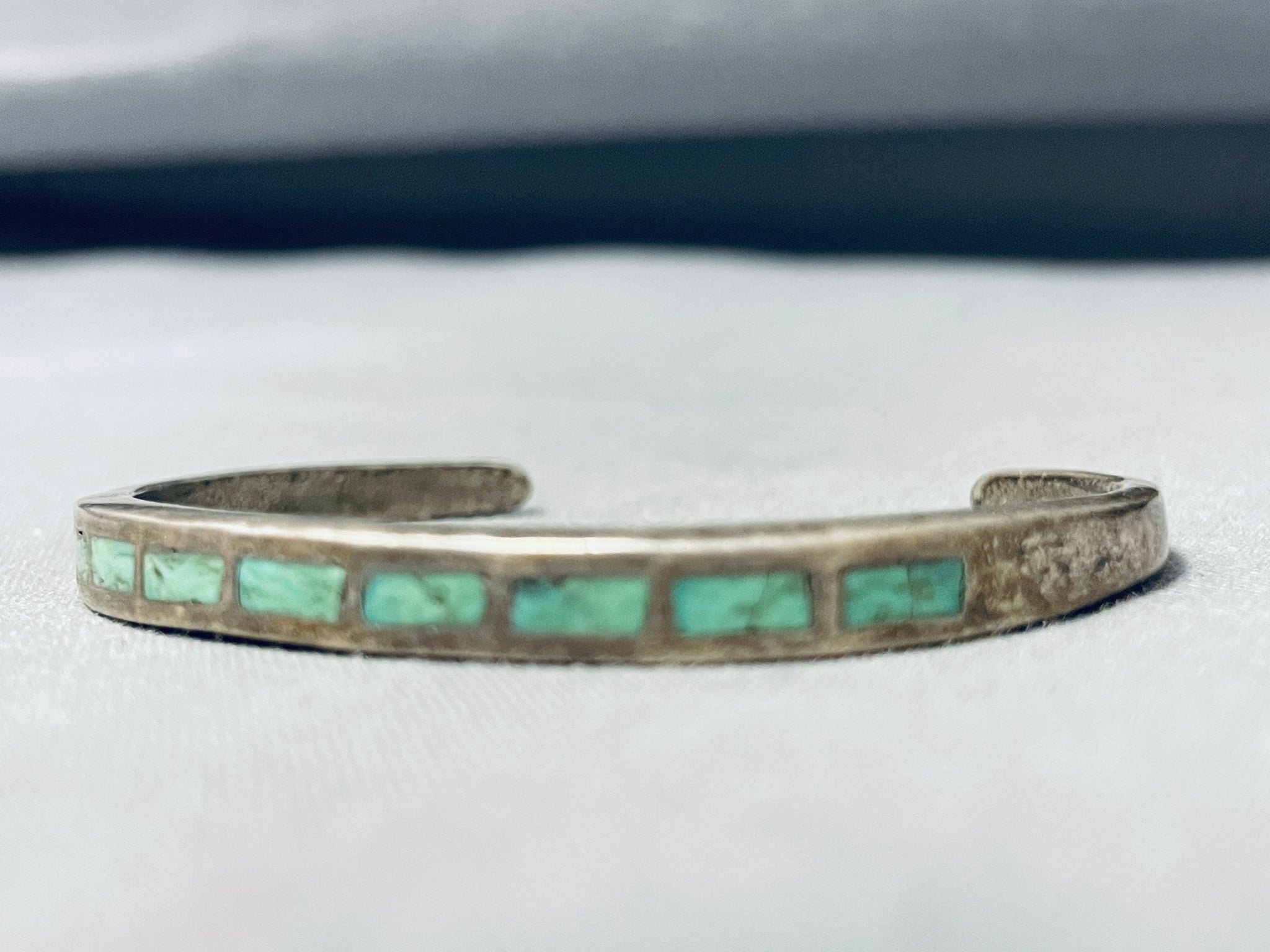 Outstanding Vintage Native American Navajo 8 Inlay Turquoise Squares Sterling Silver Cuff