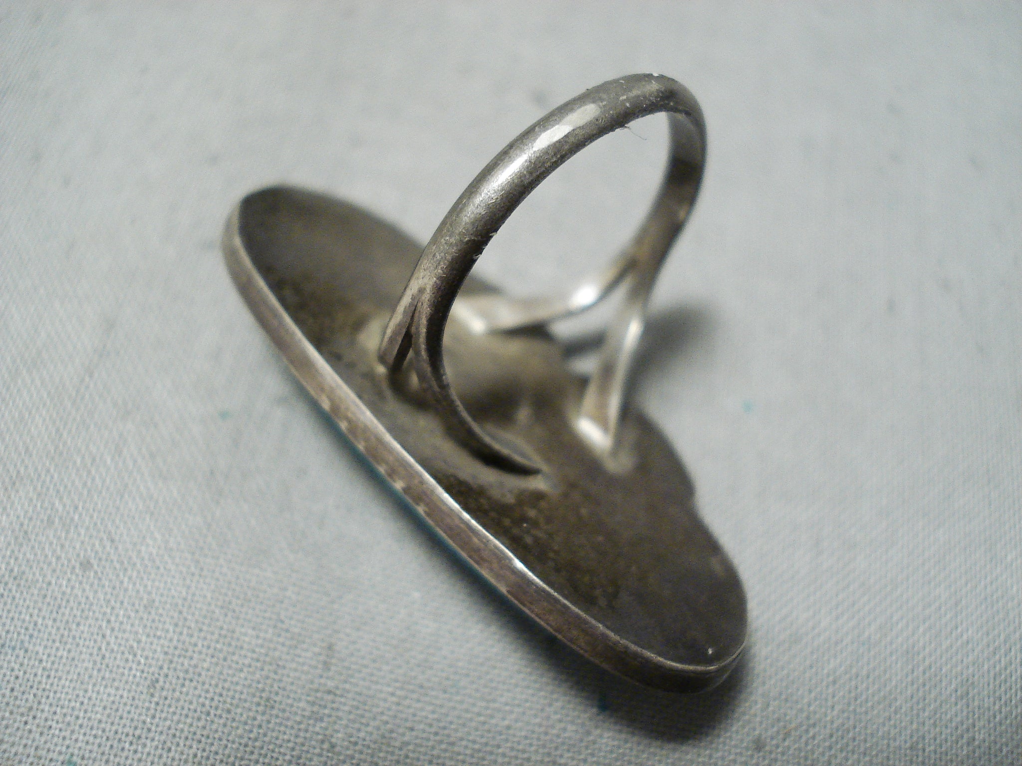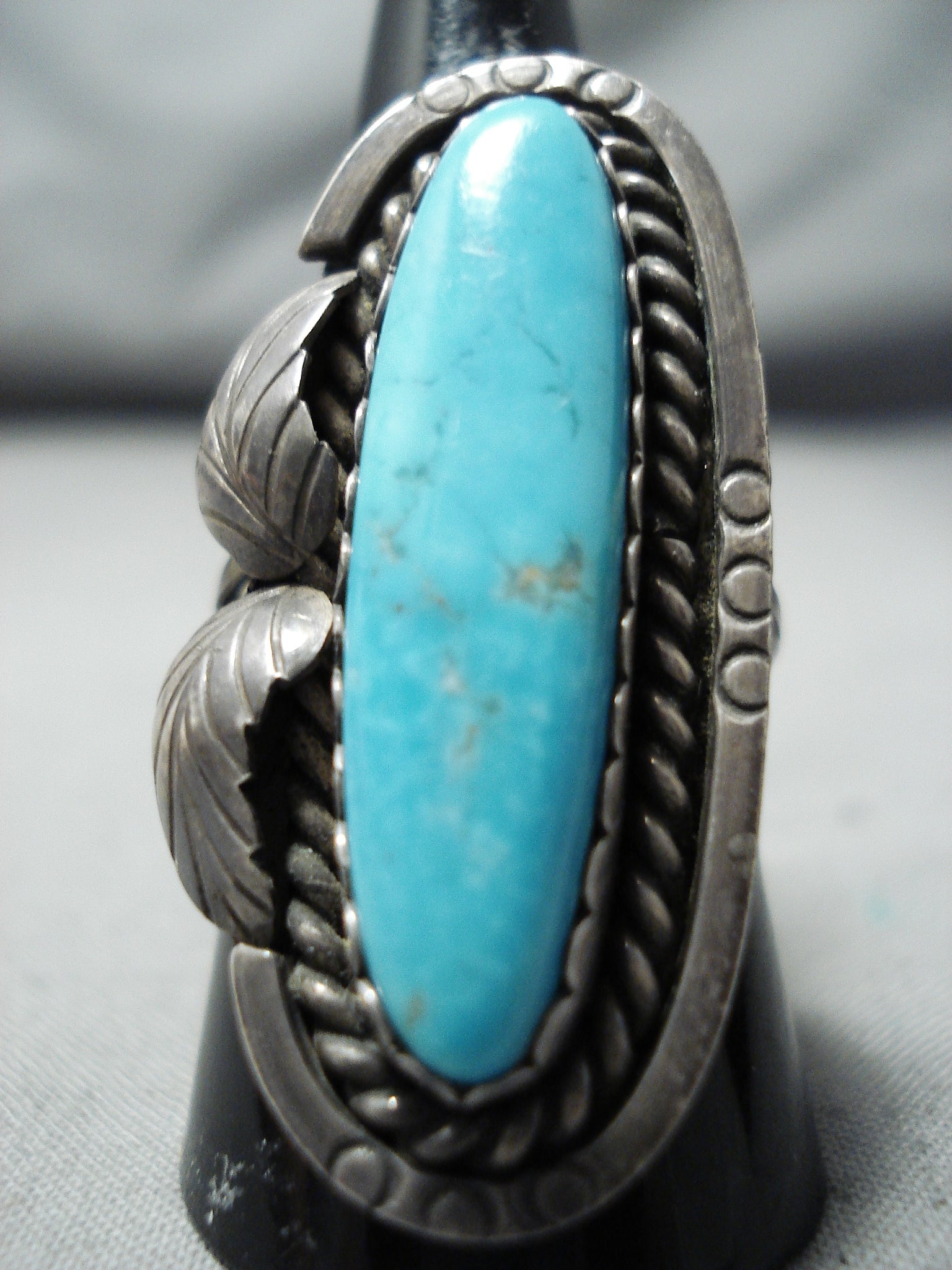 Outstanding Vintage Native American Navajo Blue Gem Turquoise Sterling Silver Ring Old