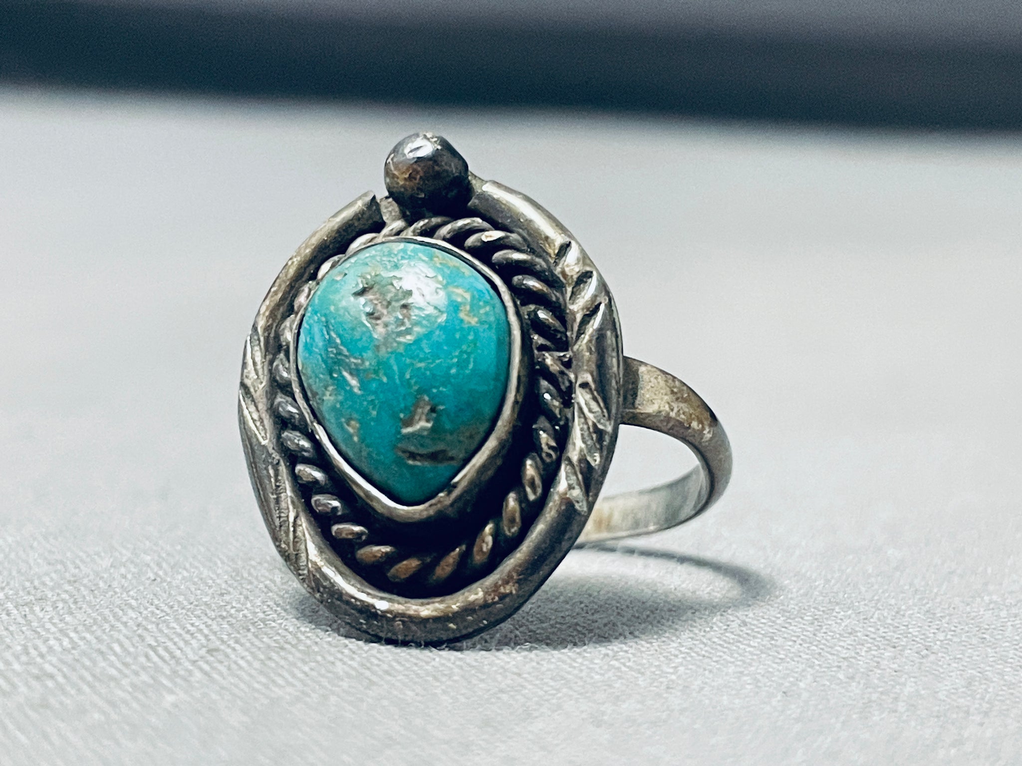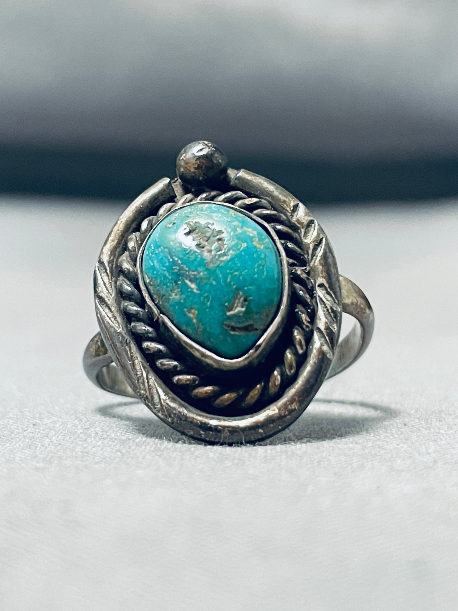 Outstanding Vintage Native American Navajo Green Kingman Turquoise Sterling Silver Ring